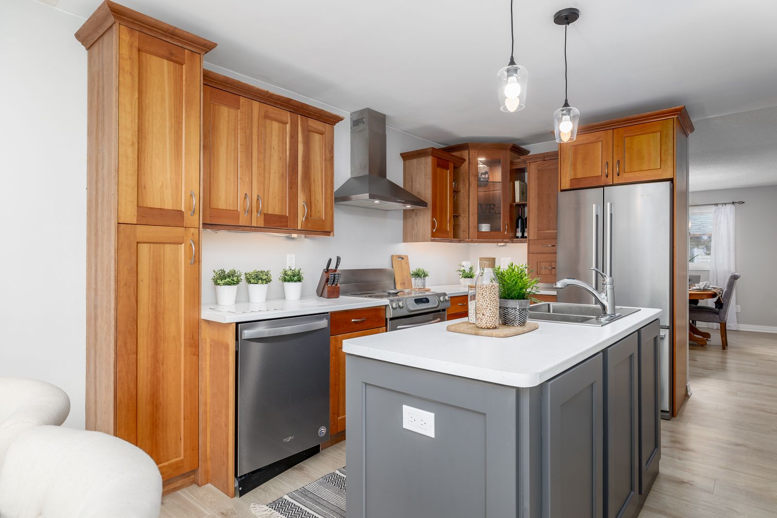 This raised 3+2 bedroom bungalow boasts a charming & welcoming exterior with a well-maintained front yard & cozy porch. In 2022, the front entry door, garage doors & windows were all replaced, giving the home a fresh & modern look, which not only adds to the curb appeal, but improves energy efficiency & security. The Eat-in kitchen has recently been updated, adding a touch of freshness & functionality. Now featuring new cabinetry, with ample storage space for all your culinary needs. The addition of an island provides extra countertop space for food preparation & creates a gathering point for family & friends. From the breakfast area the patio doors lead out to a deck in the backyard making it easy to enjoy outdoor meals, entertain guests, or simply relax while appreciating the natural surroundings. The finished lower level of this raised bungalow offers additional living space & versatility & thoughtfully designed to accommodate various needs. You'll find two extra bedrooms.