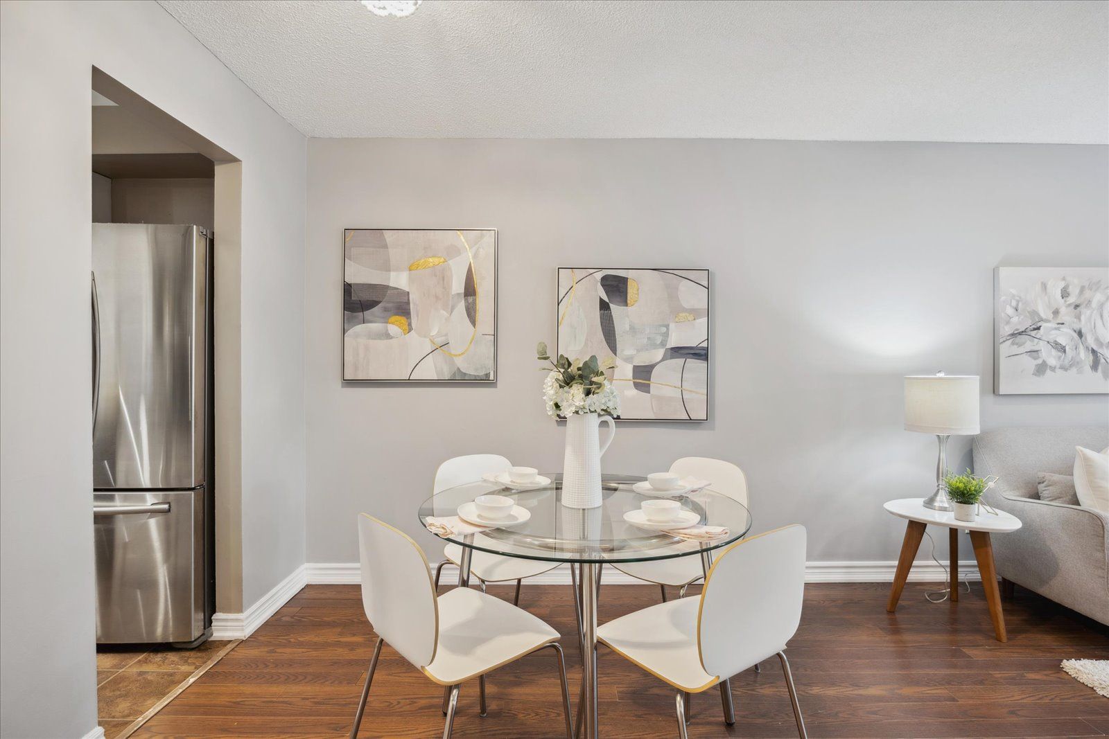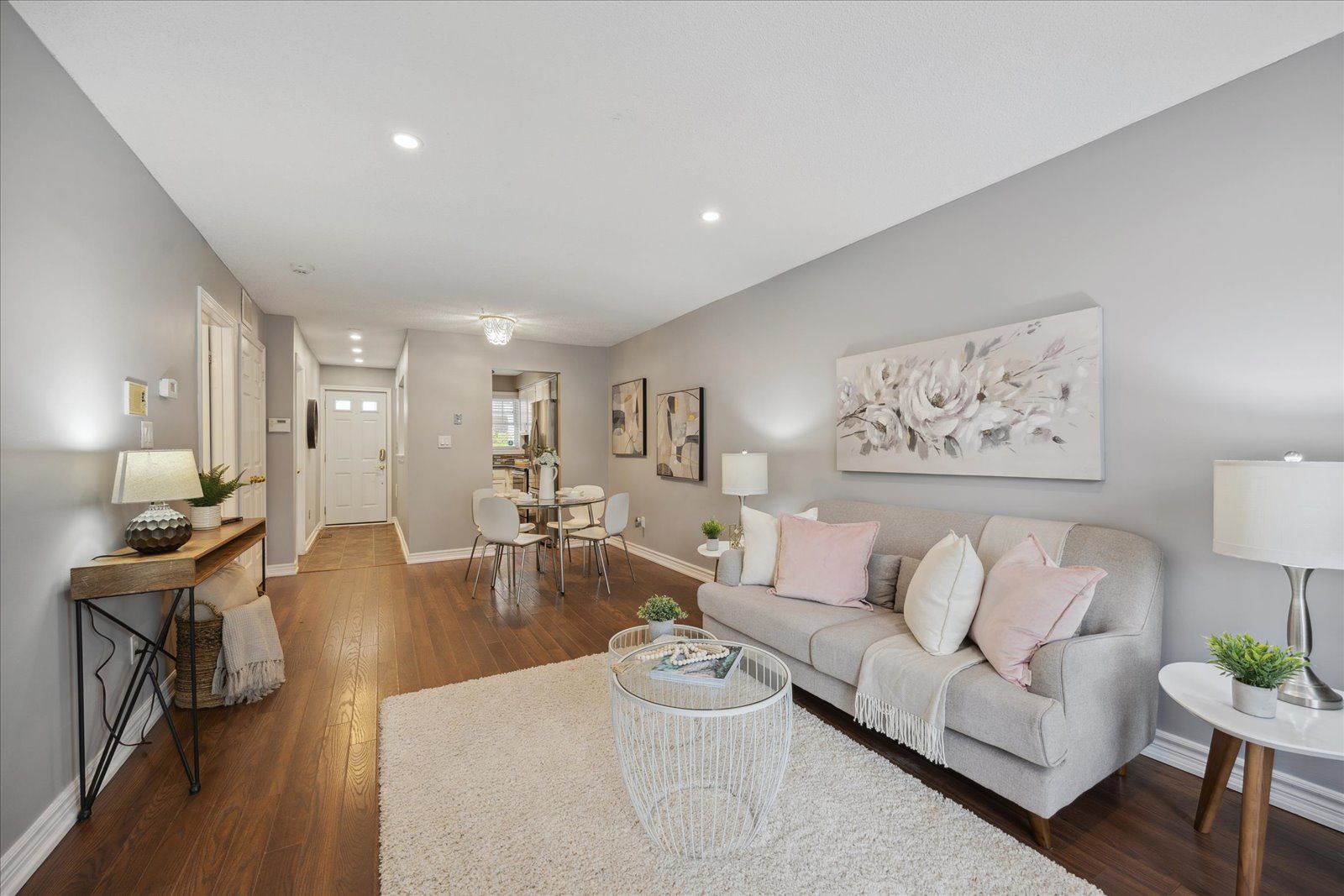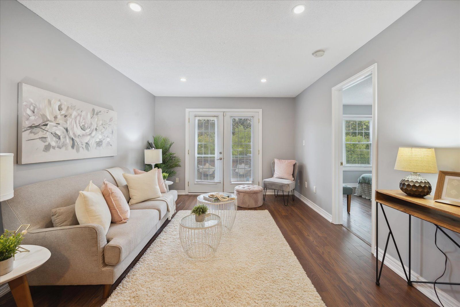 Rarely Offered Main Floor Condo In The Well-Maintained Parkwood Village. Featuring A Living and Dining Area With Pot Lights & Walkout To Terrace, Offering A Great Space For Relaxation. The Primary Bedroom Includes A Large Walk-In Closet & Semi-Ensuite Bathroom. Convenient Ensuite Laundry & Galley Kitchen Equipped With Stainless Steel Appliances. This Beautiful Unit Comes With A Locker & Parking Space, As Well As Visitor Parking For Guests. The Complex Features Amenities Such As Tennis Courts, A Car Wash, & A Party Room. Being Centrally Located While Surrounded By Greenery Makes It A Peaceful & Desirable Place To Live. Minutes From Shops, Restaurants, Community Complex & Minutes To The 401 & 407!