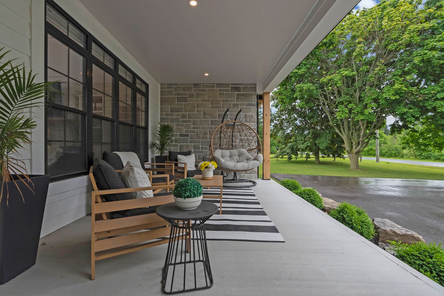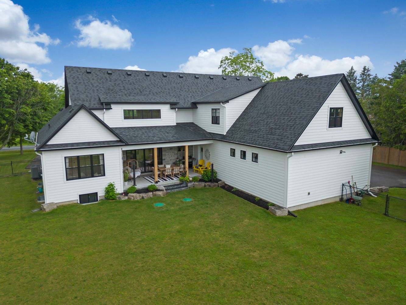 A true custom, modern farmhouse Bungaloft situated on a huge country lot with no homes behind, 2 mins to downtown Historic Newcastle and it’s quaint shops and restaurants. Beautiful traditional covered front porch leads you into a stunning great room with a soaring 16 foot waffle ceiling, feature fireplace and walkout to rear covered porch overlooking backyard with incredible views of the rolling countryside. Dream chef’s kitchen with centre island and breakfast area + servery/walk up bar. Spacious main floor primary suite with beamed cathedral ceiling, w/i closet and spa 5 pc bath with soaker tub and big glass shower. Main floor office, powder room and convenient side entry to laundry/mud room with b/I cubbies and interior entry to heated 3 car garage with separate finished loft space above ideal for studio/home office. Hardwood stairs up to 3 spacious bedrooms plus open loft space, the perfect hangout spot for the kids.Finished basement with 3pc bath, open Rec room and home gym. A magazine quality home in an incredible location close to everything and under 1hr to downtown T.O