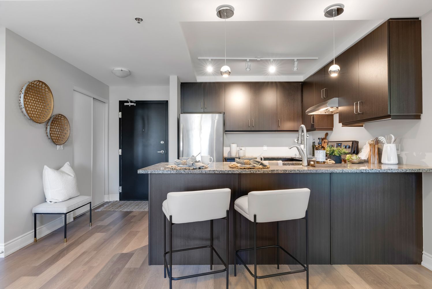 Immaculate 2, bed, 2 bath, bungalow condo in sought after Brookhouse Gate building conveniently located in downtown Newcastle, steps to all amenities. The 950 square foot Hartwell model features a bright open floorplan with modern kitchen with stainless appliances, granite counters, and breakfast bar overlooking dining and living area with walkout to east facing balcony perfect for morning sunrises. Large principal suite with 4pc ensuite, second spacious bedroom, 3pc bath and ensuite laundry. Secure building with underground parking ideal for downsizer or investor under 1 hr to downtown Toronto.