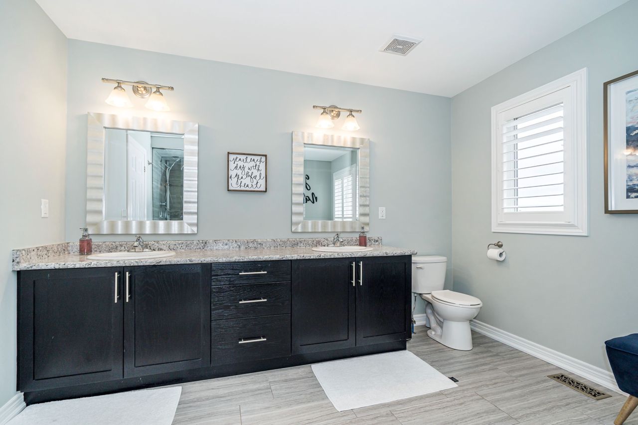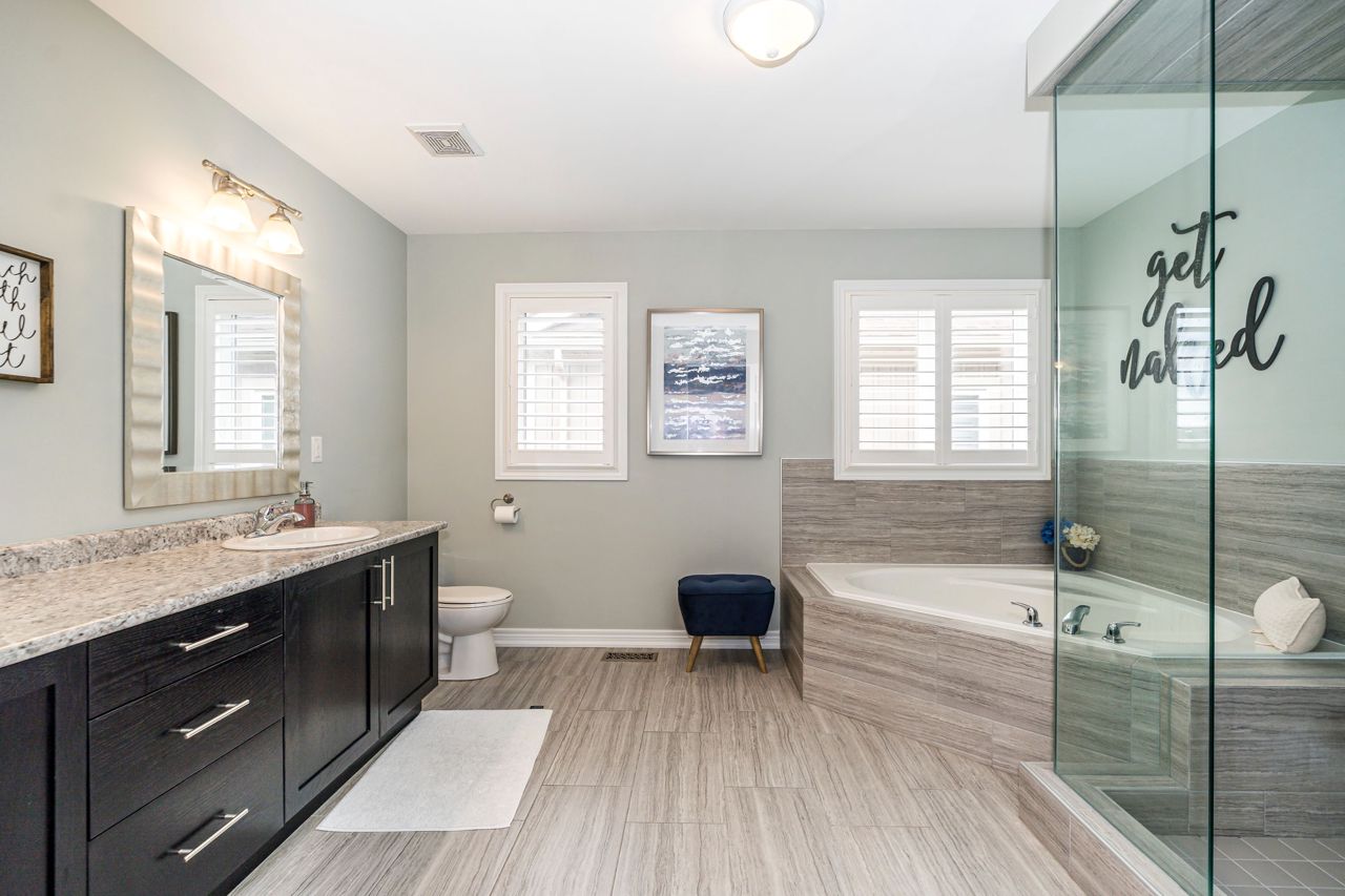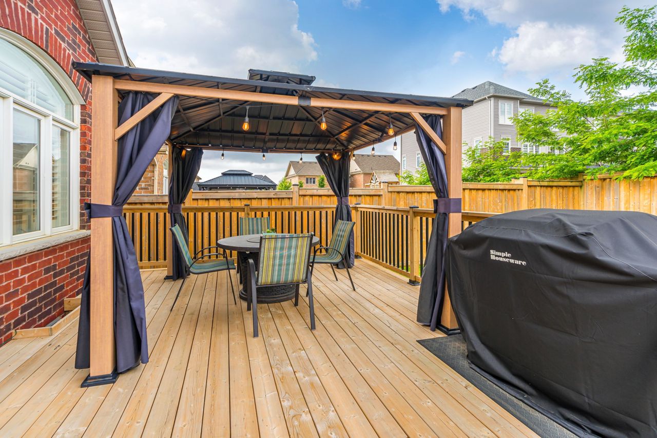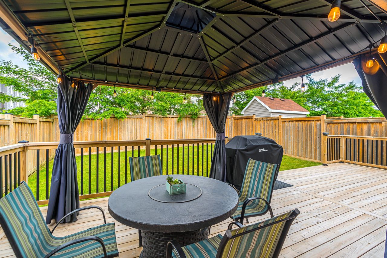 Stunning 2600 sqft home offers 4 bedrooms, perfect for a growing family. Nestled on a premium child-friendly court, this exquisite home is situated in sought-after N. Bowmanville. The kitchen is a culinary dream, w/quartz countertops, upgraded cabinets w/under cabinet lighting,& upgraded ceramic flooring, complemented by glass tile backsplash. Main level offers gorgeous hardwood flooring,9ft ceilings ,gas fireplace & pot lights throughout that create a warm & inviting ambiance. Upstairs, the primary bedroom offers a retreat of its own, boasting a W/I closet & ensuite bathroom that exudes luxury. Pamper yourself in the oversized glass shower, or soak away the day's worries in the separate soaking tub,& enjoy the convenience of double vanities that add a spa-like feel to the space. California shutters adorn all windows throughout the home, providing both elegance & privacy. Sit back & relax in your outdoor space enhanced with new deck & gazebo, creating the perfect setting for R&R.Huge porch with privacy screen; Equipped w/upgraded Nest thermostats, a doorbell, & smoke detectors, ensuring convenience & enhanced safety throughout the property. Too many upgrades to mention - See feature sheet for full list.