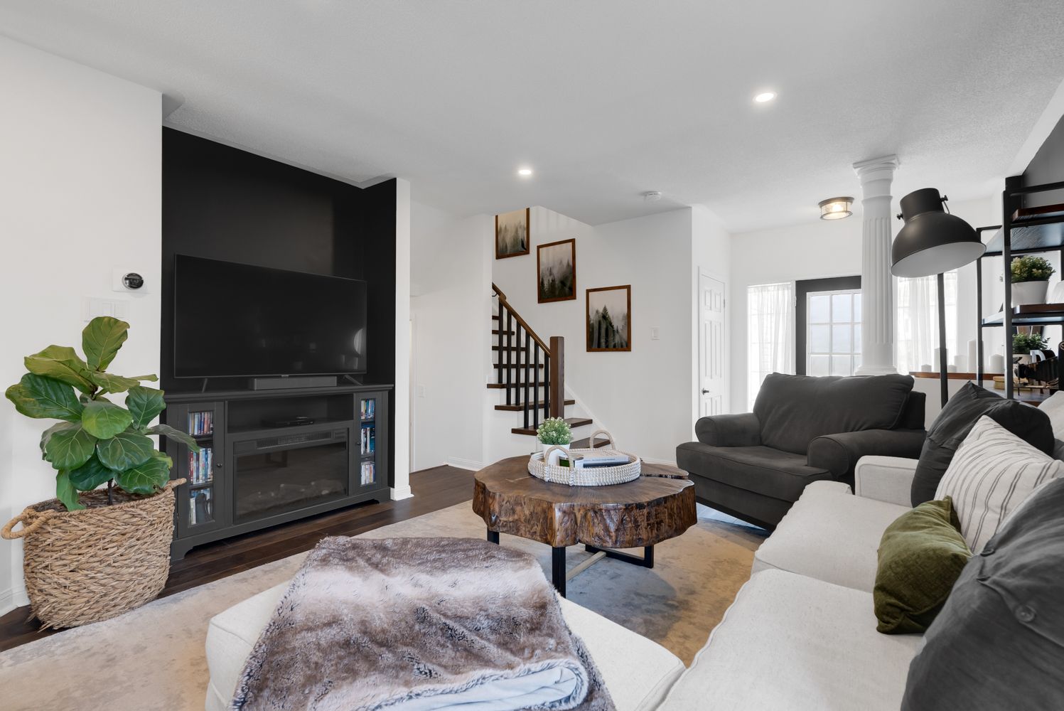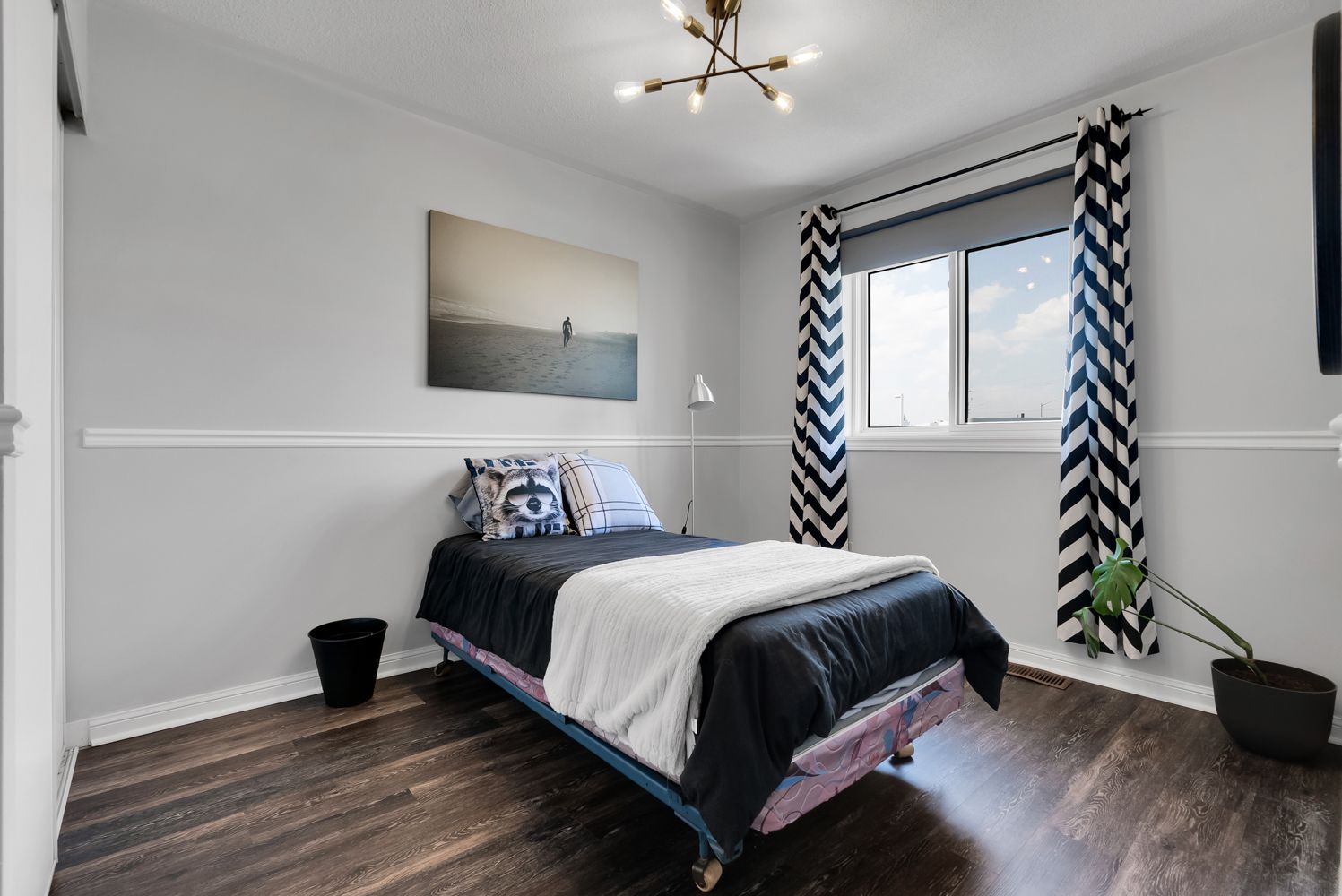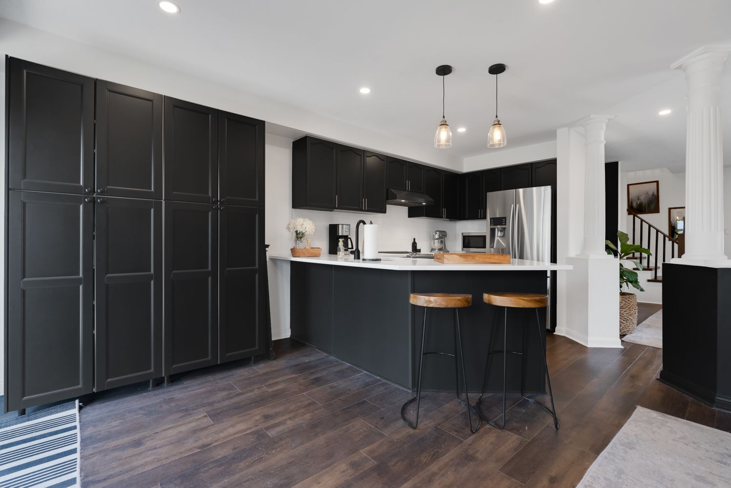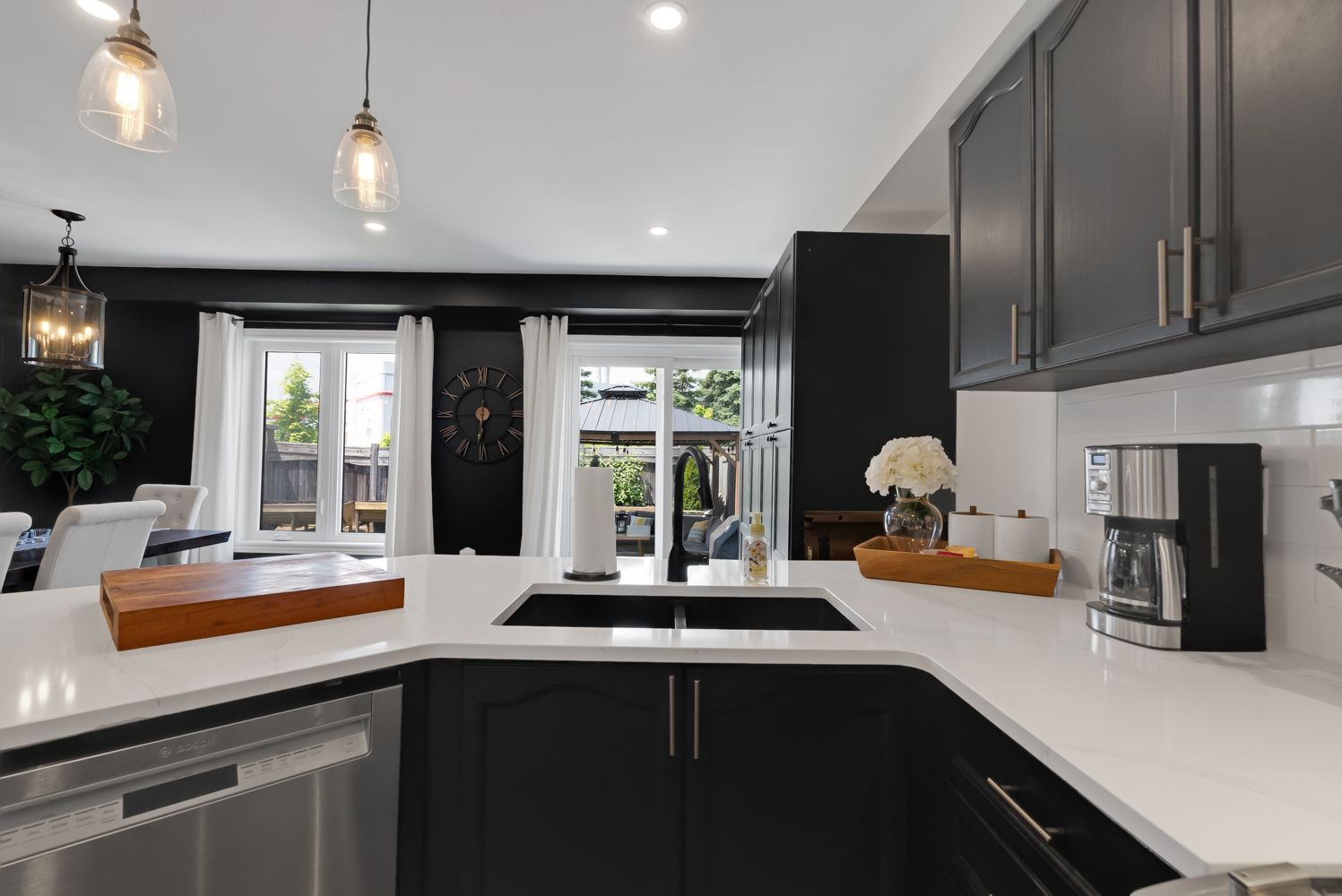 Straight out of a designer magazine this beautiful end unit townhome has everything you want!! 3 + 2 bedrooms, 3+1 Bathrooms, a loft, quartz countertops, large yard. With its prime location and modern design, this home offers both comfort and convenience for a growing family or professionals seeking a serene living space.As you enter the front door, you are greeted by a warm and inviting atmosphere. The main floor features an open-concept layout, seamlessly connecting the living room, dining area, and kitchen. Natural light floods the space, highlighting the contemporary finishes and creating a bright ambiance. The living room provides a cozy retreat, perfect for relaxation or entertaining guests. On the 2nd floor, you will find 3 generously sized bedrooms and a loft, each providing a comfortable sanctuary. The master bedroom boasts a large window that fills the room with natural light, also offers a stunning en-suite bathroom, ensuring privacy and convenience.You'll have easy access to a range of amenities. Excellent schools, parks, shopping centres, & restaurants are just a short distance away. Commuting is a breeze with quick access to 401 & 407, & public transportation options.