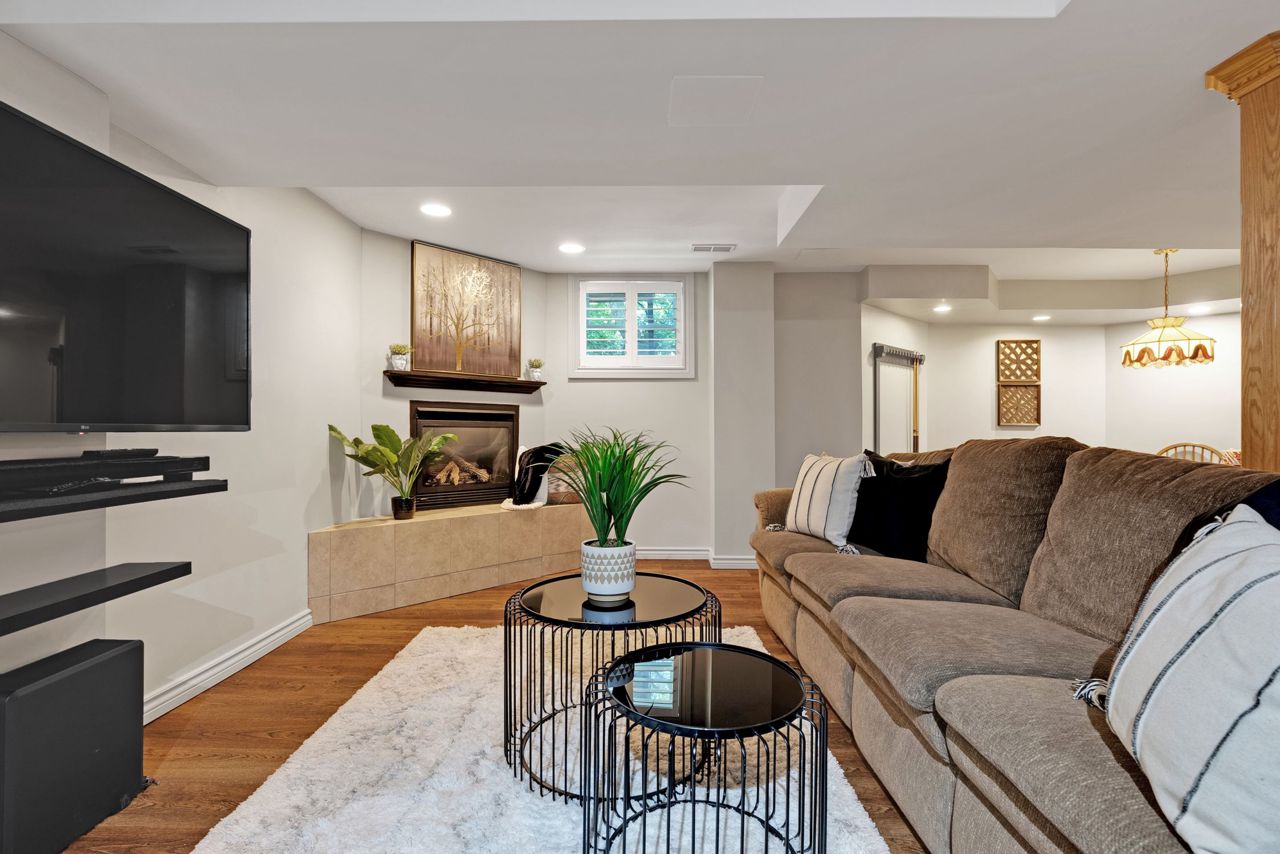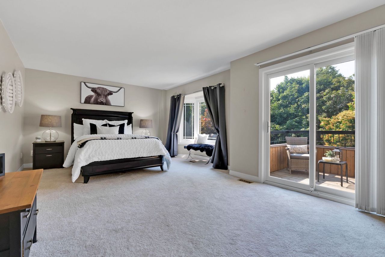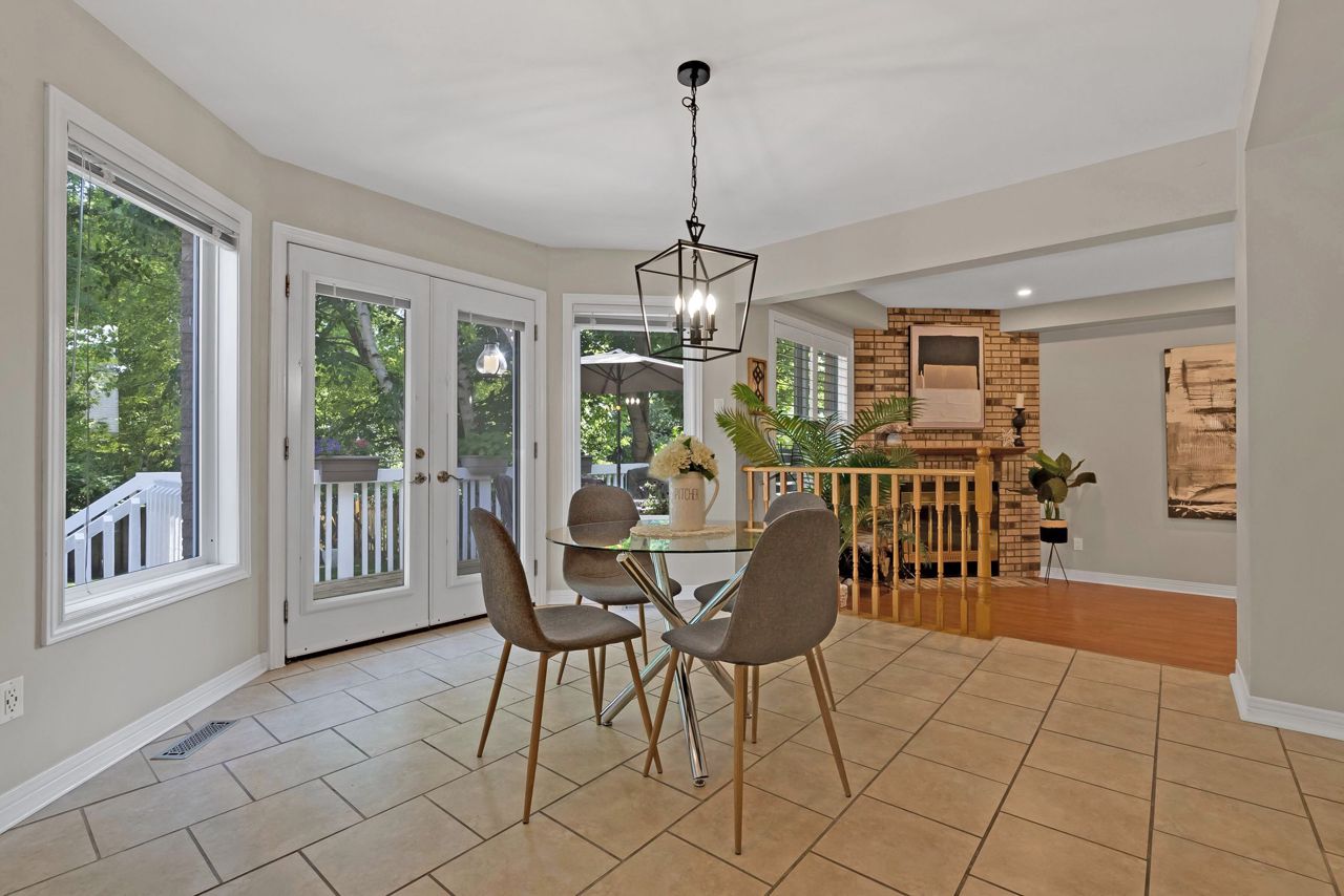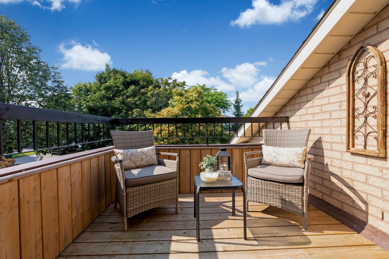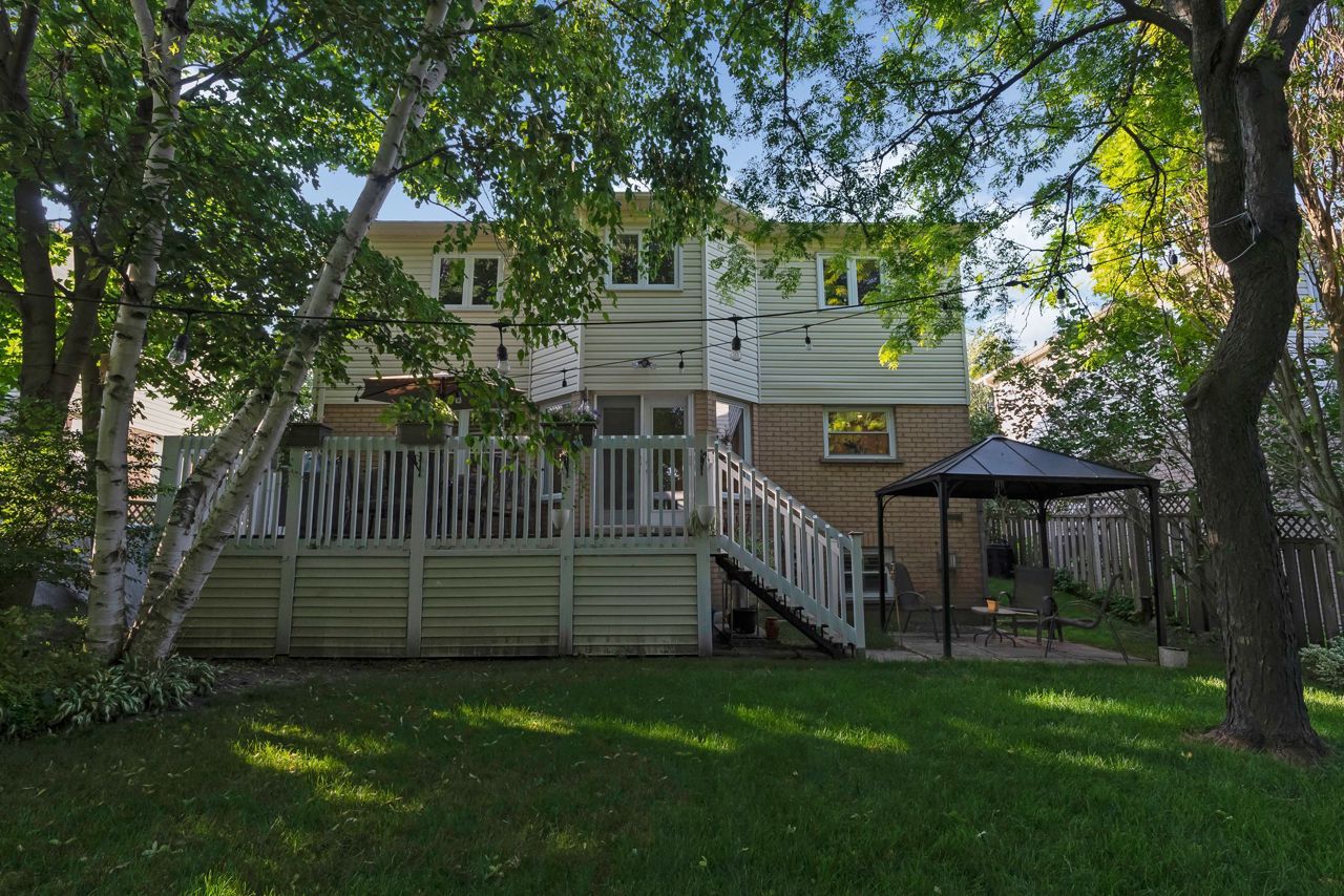 A bright an updated kitchen with quartz countertops overlooks a formal dining room and spills over into a lovely sunken family room with cozy fireplace. The walkout from the eat-in breakfast area walks out to a large deck ready for your next bbq! The basement is fully finished and includes a 3pc bathroom and expansive rec room/games area. The primary bedroom is the jewel of this home, with not only a dedicated sitting area, but a private balcony to enjoy your morning coffee! Complete with a walk-in closet and private ensuite bath with corner soaker tub, you’ll never want to leave this lovely oasis of relaxation!Owned on demand hot water heater, new roof shingles '22. Luxury vinyl flooring in bsmt 2019, Mnflr pot lights '20, 200amp upgrade '21, Kitchen cabinet doors '23. Light fixtures & door hardware thruout '23.