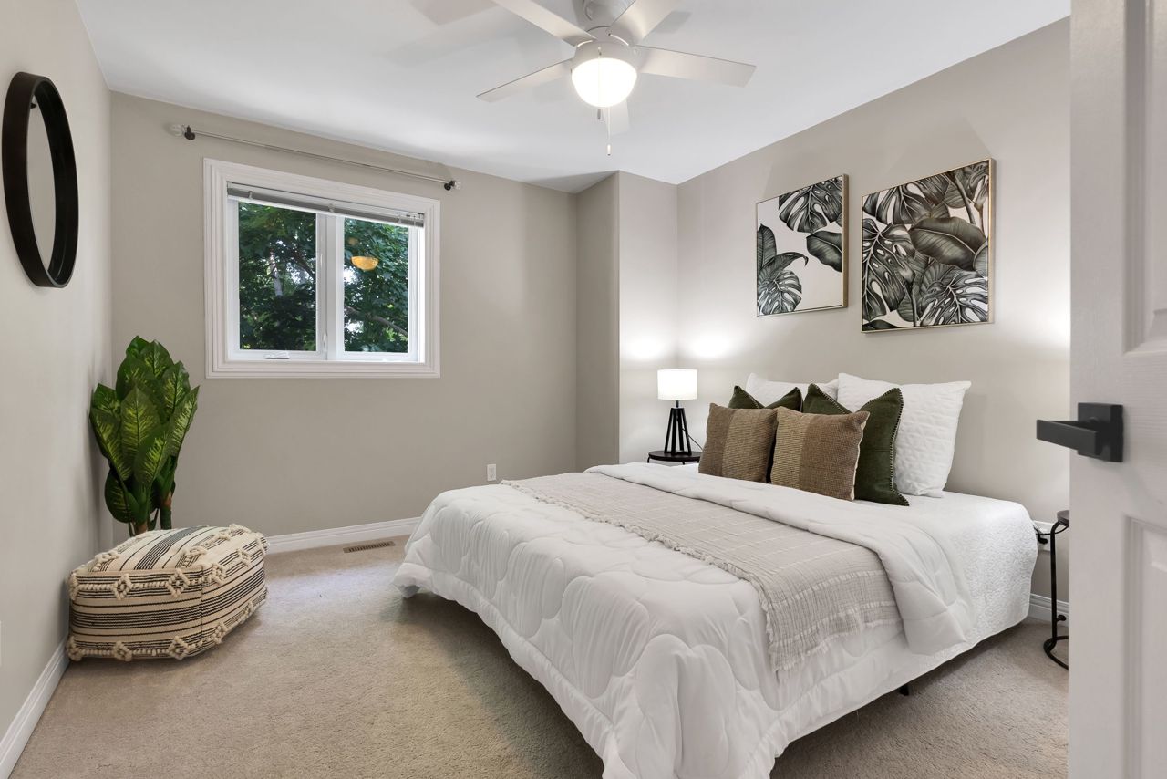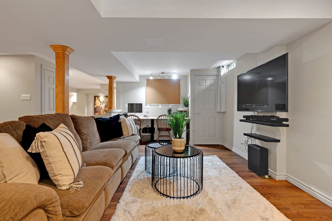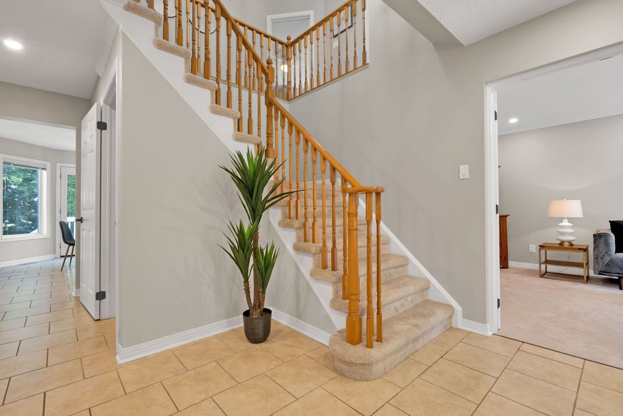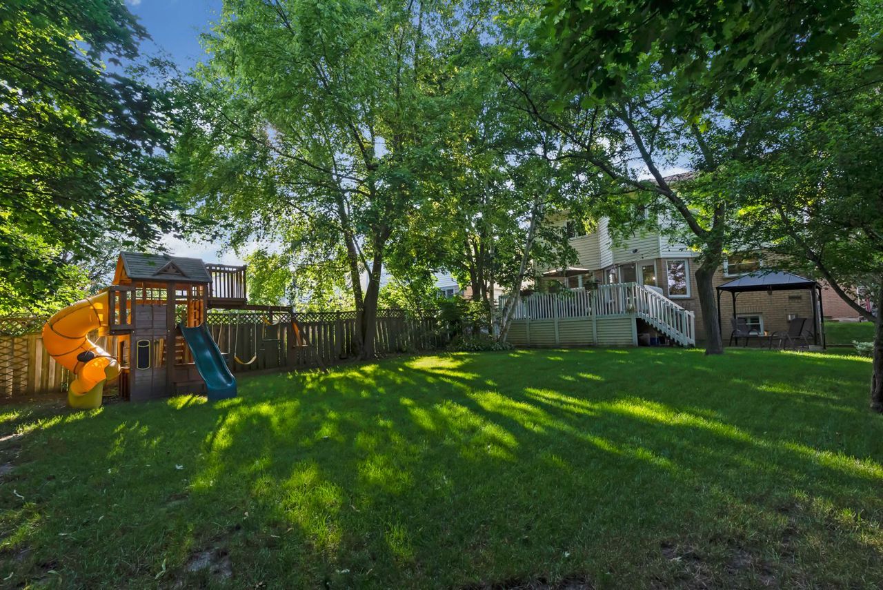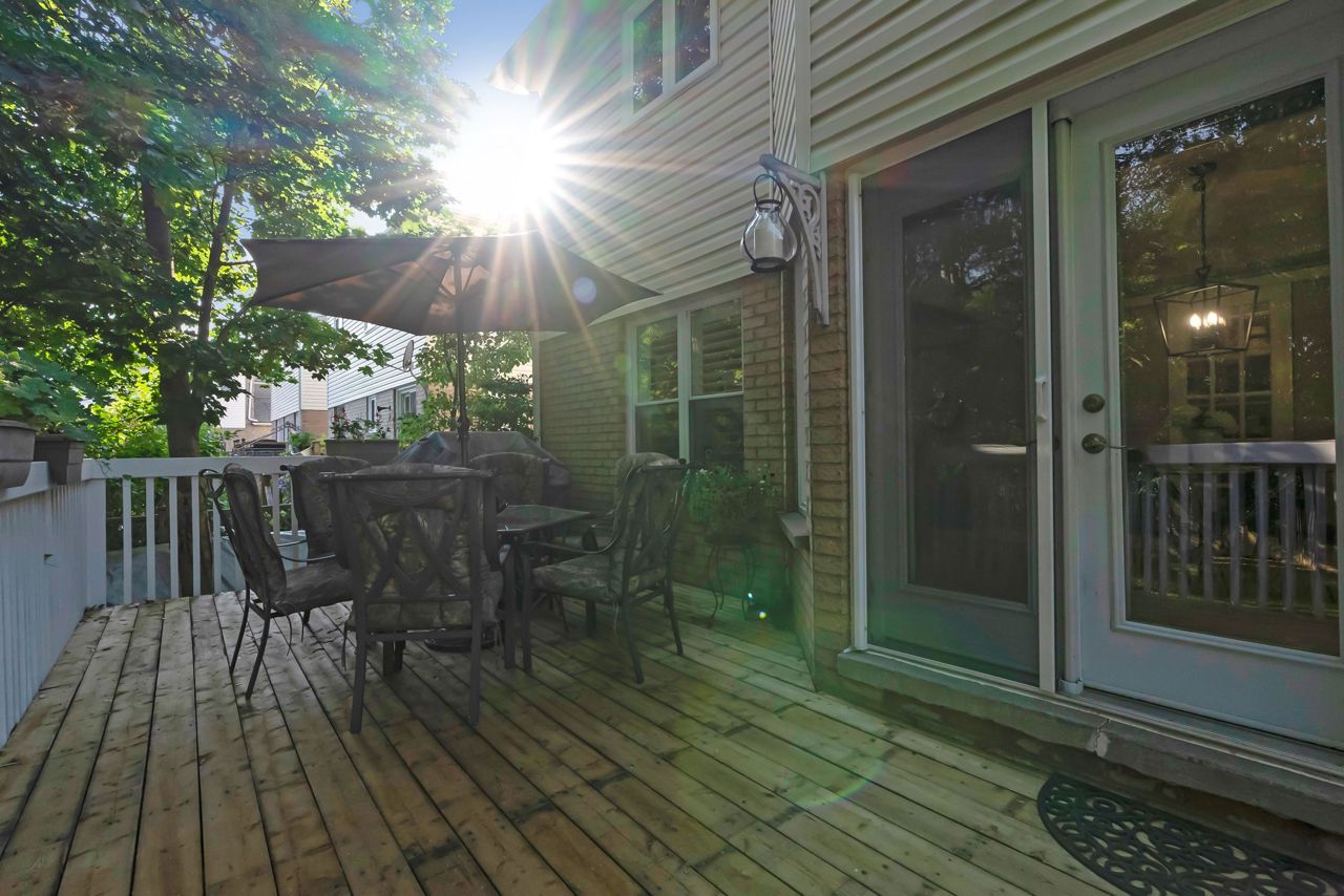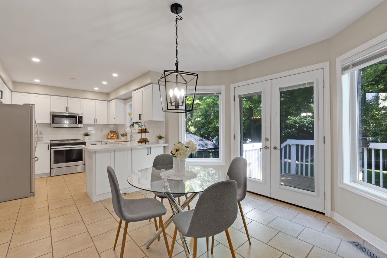 A bright an updated kitchen with quartz countertops overlooks a formal dining room and spills over into a lovely sunken family room with cozy fireplace. The walkout from the eat-in breakfast area walks out to a large deck ready for your next bbq! The basement is fully finished and includes a 3pc bathroom and expansive rec room/games area. The primary bedroom is the jewel of this home, with not only a dedicated sitting area, but a private balcony to enjoy your morning coffee! Complete with a walk-in closet and private ensuite bath with corner soaker tub, you’ll never want to leave this lovely oasis of relaxation!Owned on demand hot water heater, new roof shingles '22. Luxury vinyl flooring in bsmt 2019, Mnflr pot lights '20, 200amp upgrade '21, Kitchen cabinet doors '23. Light fixtures & door hardware thruout '23.