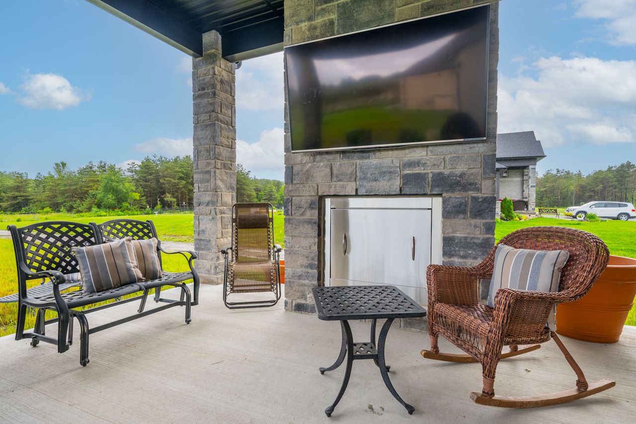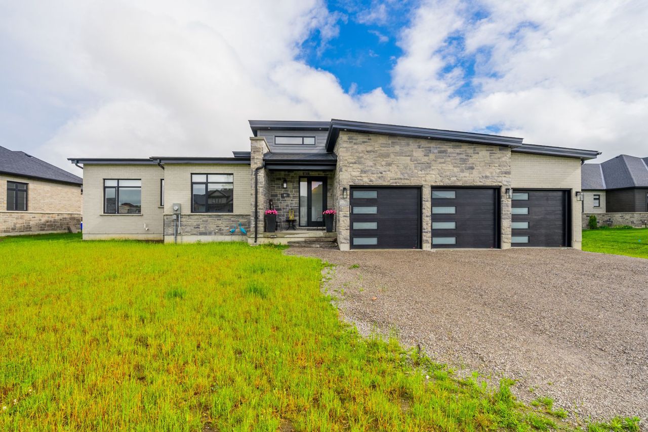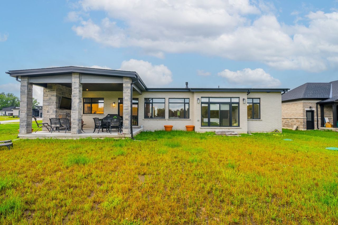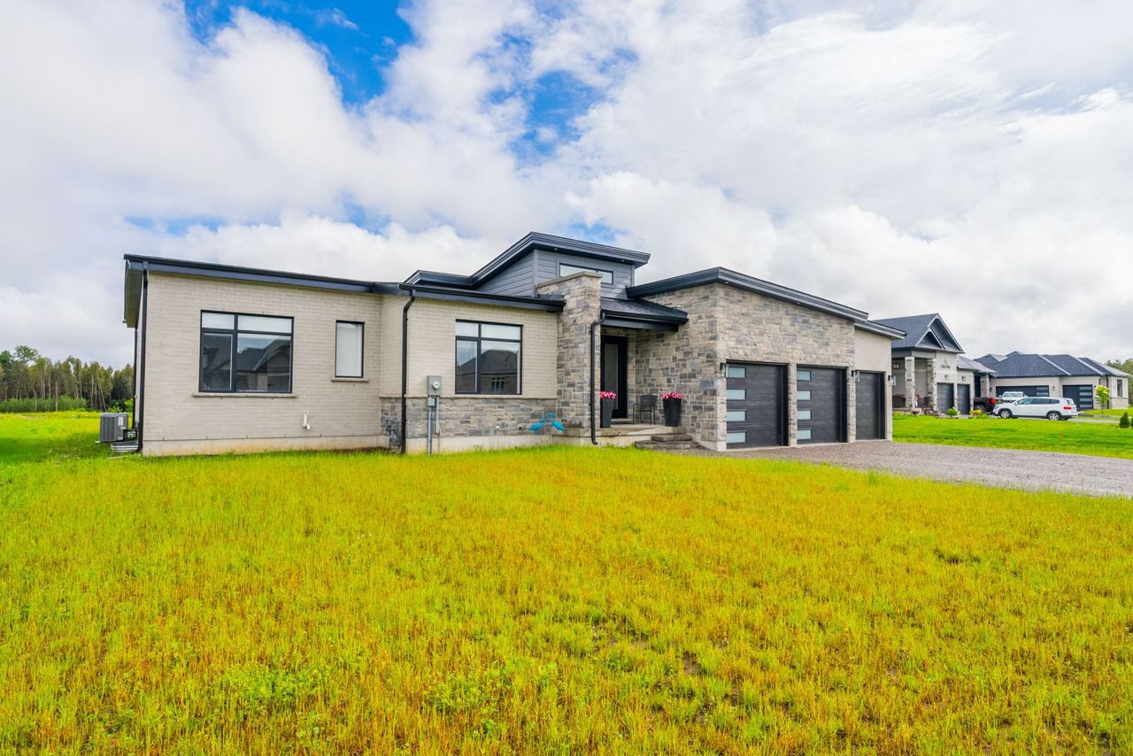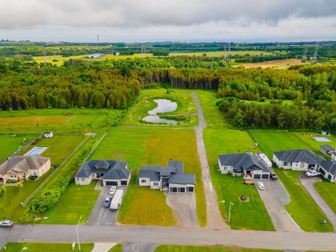 This Amazing custom 3 bed 3 bath bungalow, built by award winning "Fourteen Estates" shows quality & luxury throughout, located in the most sought after enclave of Newtonville! The exterior starts with the incredible & best lot in the neighbourhood, at 0.6 acres & backing onto the pond w/views of the woods. Astounding curb appeal w/modern black & gray themed brick, stone & timber exterior, w/soffit lighting, framing the 3 car garage & large triple wide driveway. Inside features 9' ceilings, pot lighting, hardwood flooring & O/concept design with modern finishes. Bright great room with feature wall, gas f/place & W/O to the covered outdoor living space w/2nd gas f/place & looks out over pond! Chef inspired kitchen w/quartz counters & large centre island, wall oven & high end appliances. Primary bed with W/O to yard, W/I closet & 5pc quartz ensuite w/soaker tub & seamless W/I shower. Huge Lower with high ceilings, oversized windows & R/I for 2 future baths & wet bar!See feature sheet, O/sized windows in great rm & lower, O/sized garage drs, 21'x16' covered outdoor living space, upgraded faucets & finishes in baths, upgraded tiling/lights/cabinetry thru-out, 9' smoothed ceilings & taller drs. Shows 10+