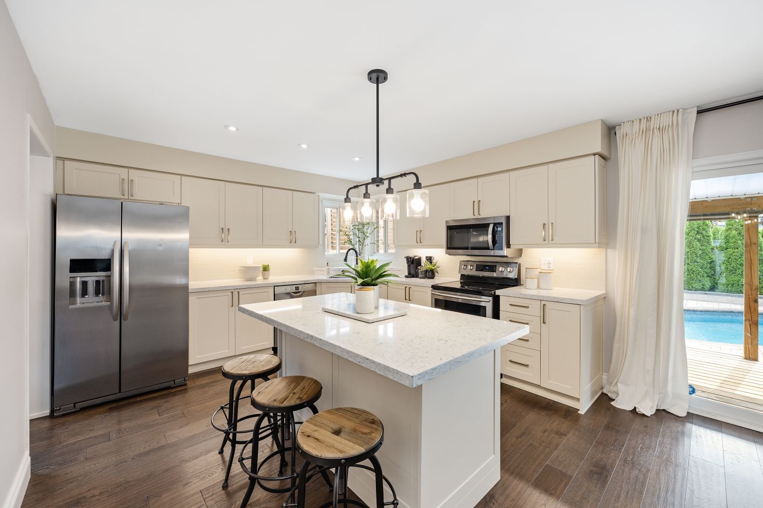 Spacious & Impressive, 5 Bedroom, 4.5 Bath Home Boasting Approx 4050 Sq Ft & Saltwater, Inground Pool. The Generous-Sized Eat-In Kitchen Features Quartz Counters, A Sizeable Island With Breakfast Bar, Stainless Steel Appliances, Backsplash, Walk-Out To Deck & Is Open To The Inviting Family Room. Family Rm Contains Hardwood Flooring & Gas Fireplace. Huge Formal Dining Rm With Hardwood Floors Provides Plenty Of Room For Hosting Gatherings. Separate Living Rm With Soaring Ceiling, Hardwood Flooring & Large Windows For Substantial Natural Light. Main Floor Also Contains A Good-Sized Bdrm, 2 Pc Bath & Laundry Rm. Up The Updated Hardwood Staircase Are 4 Great-Sized Bedrooms. Primary Bdrm Contains Large W/I Closet And Has Massive 5 Pc Ensuite With Tiled Shower, Soaker Tub, Make-Up Station And A Water Closet. Second Bdrm Also Contains 4 Pc Ensuite. Even More Space On The Third Floor Featuring Huge Loft Area Ideal As A Games Room Area, Watching Tv Or Where The Teenagers Hang Out.Retreat To The Fabulous Backyard In Rain Or Shine On The Extra Large Covered Deck. Enjoy Hot Summer Days In The Refreshing Pool! Interior Garage Access. Plenty Of Storage Space Throughout Home. Plenty Of Room For Everyone!