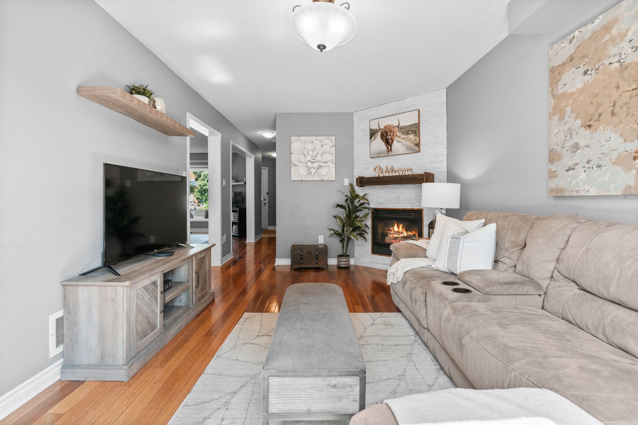 Don’t miss this larger than it looks family home in Bowmanville. The welcoming main level includes a living room/dining room, family room with gas fireplace and a bright eat-in kitchen with walk-out to the private 2 level deck, and landscaped fenced backyard. On the upper level you will find 3 bedrooms including the spacious primary with a 4pc ensuite and large walk-in closet; and an additional 4pc washroom. The finished basement is the perfect spot for movie night with the family or game day with the boys. Perfectly located in a family friendly neighbourhood, minutes from schools, shopping & the 401.Gas BBQ hookup, Furnace 2022