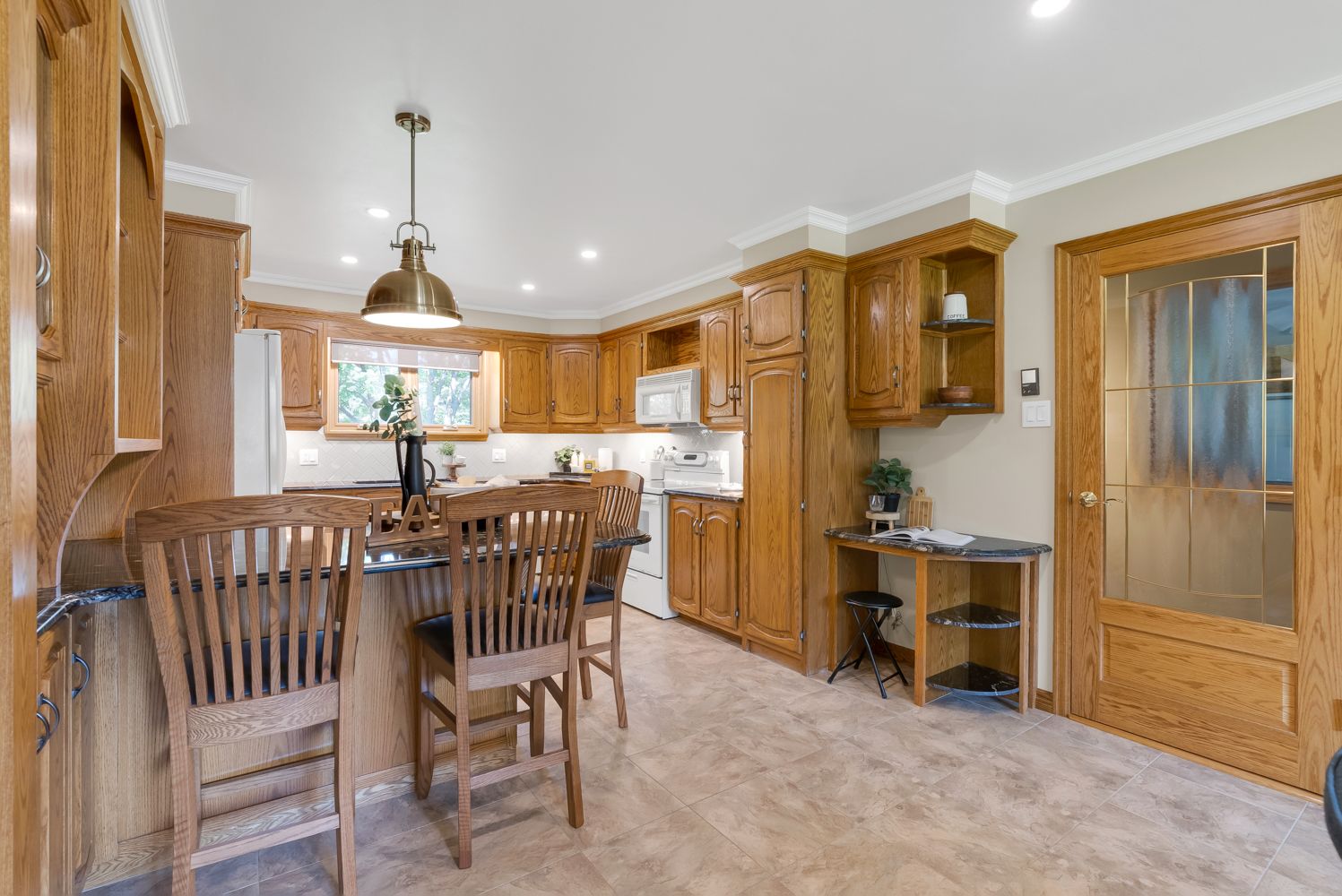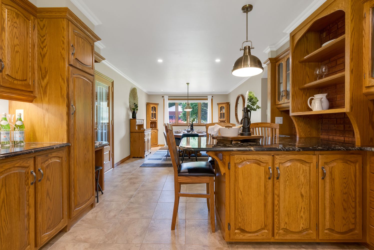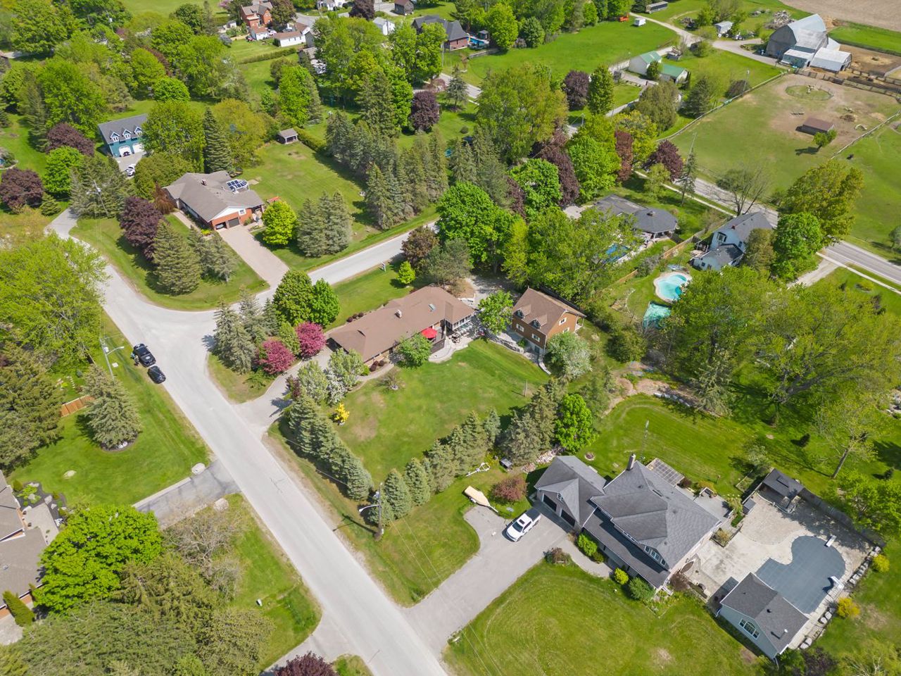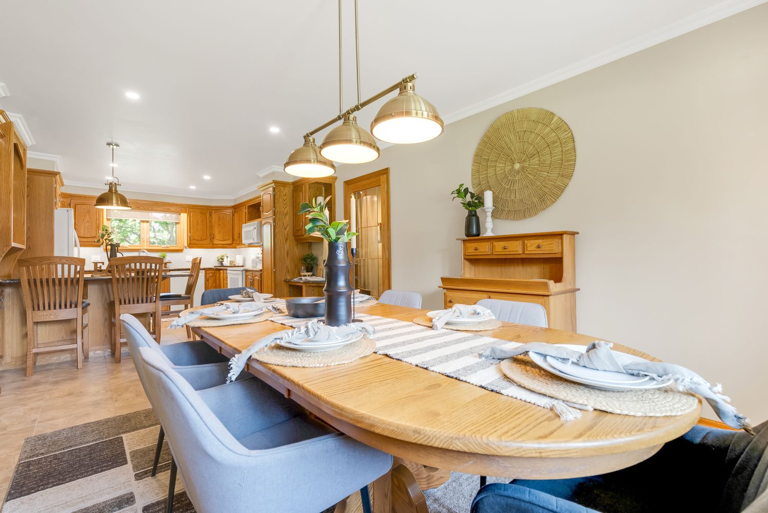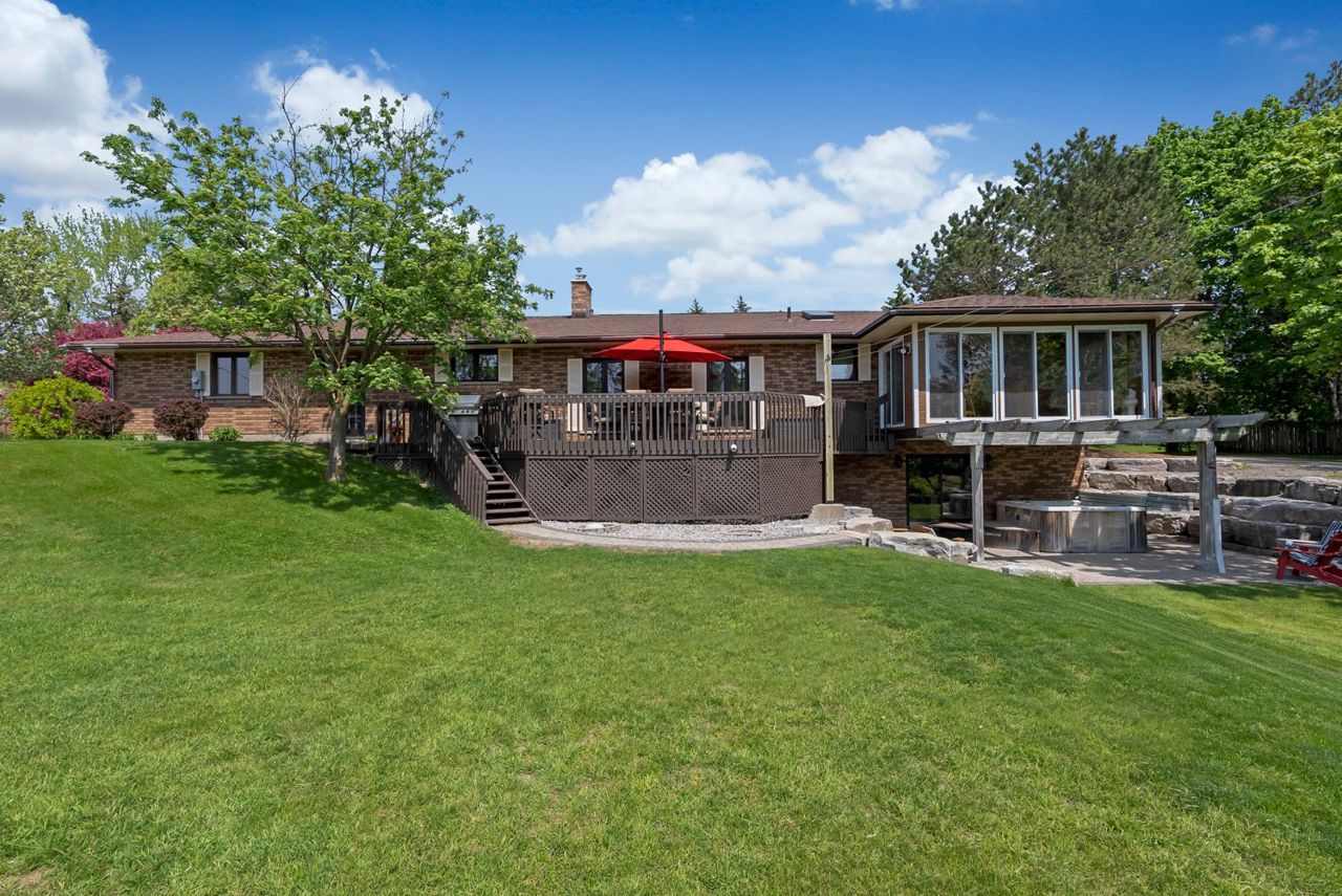 Nestled in the quaint Village of Solina, this sprawling ranch bungalow sits on a 3/4 acre lot, has a 3-car garage & a detached 2-storey workshop with its own office space! The great room with vaulted ceiling, complemented by a floor-to-ceiling gas fireplace exudes warmth & coziness. The kitchen features granite counters, seamlessly blending style & functionality. The spacious dining area is perfect for hosting large gatherings. The master bedroom offers a 2-piece ensuite & a walkout to sunroom that overlooks the backyard, providing a serene retreat. The fully finished basement features a 4th bedroom & an expansive recreation room, offering abundant space for various activities & convenient access to the patio, where a hot tub awaits. Impressive detached two-story workshop provides ample space to cater to all your needs. Whether you are a hobbyist, an entrepreneur, or simply in need of extra storage, this workshop is a game-changer, offering endless possibilities.Please see attached feature sheet for more details. Roof, furnace, central air & windows all done at various times over last 12 years.