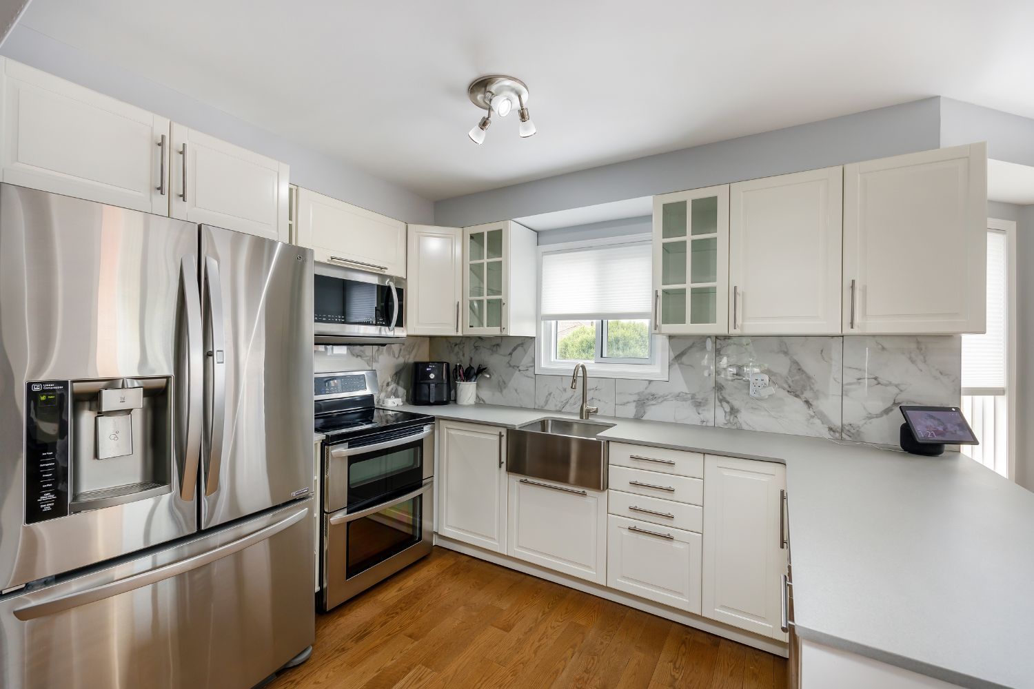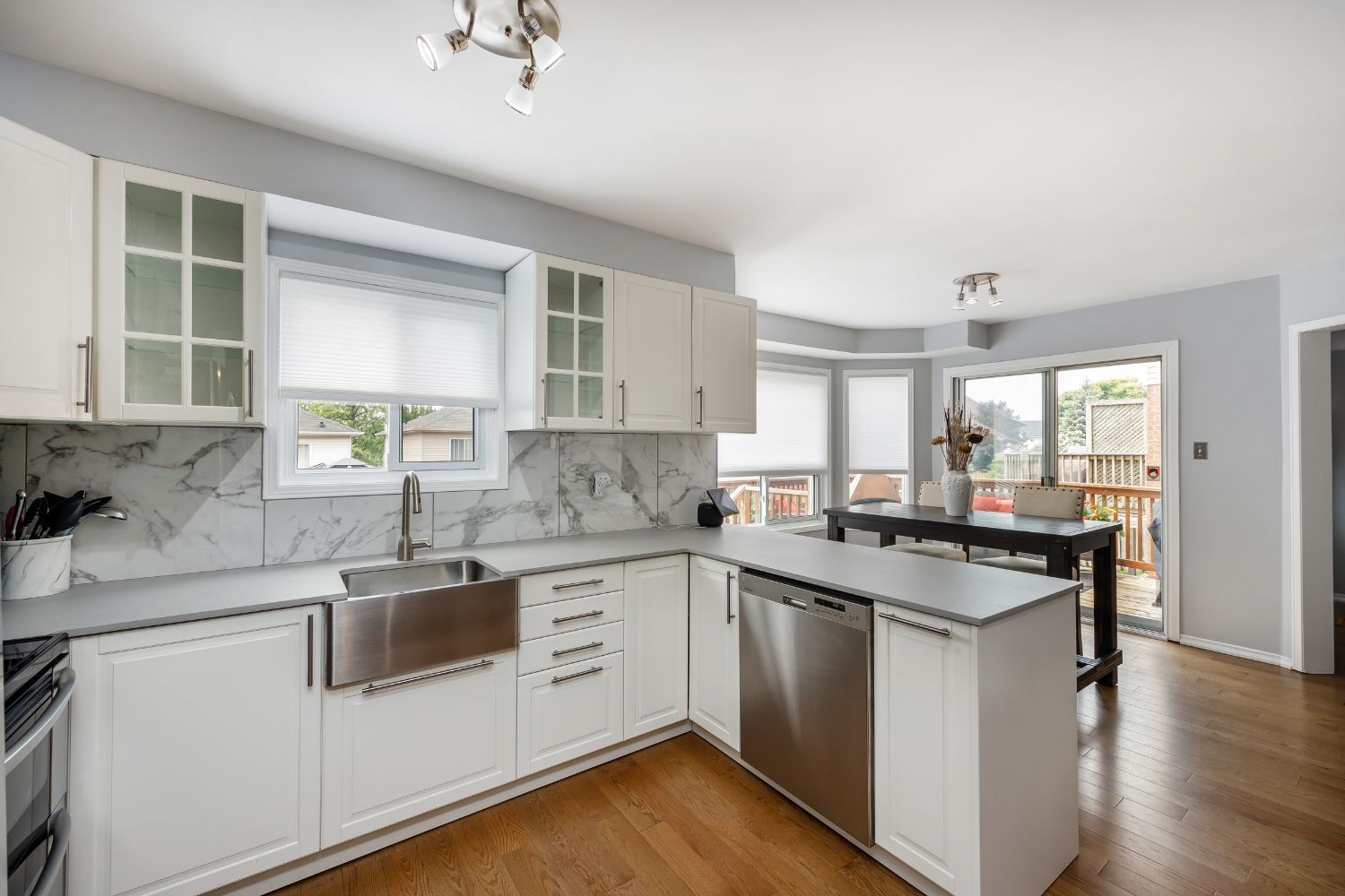 Wonderful 4 + 2 bedroom, 3.5 bath family home located in desirable Aspen Springs Neighbourhood. Minutes to Hwy 401 and steps to great schools, parks and shopping. Rare 2 bedroom basement in law suite with private walk out to patio, full 4pc bathroom, large kitchen with bright above grade windows. Spacious main level with new hardwood flooring throughout, beautiful modern kitchen with high end dekton quartz counter tops, new cabinets & new s/s appliances! Eat-in breakfast nook with walk out to sun filled 2 tier deck with jacuzzi tub & gazebo. Large opened up dining/living room! Cozy main floor family room with wood burning fireplace! All main floor renovations completed in 2021!Upper level with 4 spacious bedrooms & full 4pc main bathroom! Large primary bedroom with walk-in closet and full 4pc ensuite! Main floor laundry and direct entry from double garage! Great opportunity in great family neighbourhood!