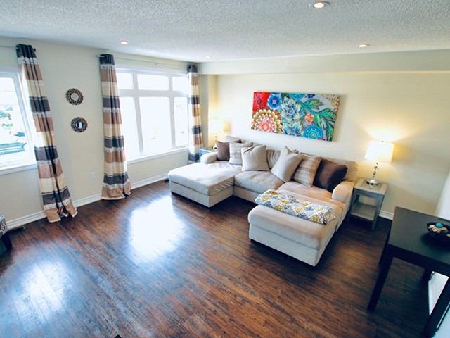 Spacious Freehold Townhome In The Heart Of Bowmanville. Minutes To The 401, Schools And Shopping. Low Monthly Maint Fee $70. Open Concept Layout With Lots Of Upgrades! Neutral Colours, All Bathrooms With Upgraded Finishes. Pot Lights In Kitchen And Livingroom. Very Large Kitchen To Add A Farm Tabel Or Island. Granite Countertops. Garage Access From Ground Level. Upgraded Underpad With Broadloom. Pet Free Home. Great Community, Pride Of Ownserhip Shows Here! S/S Fridge, S/S Stove, S/S B/I Dishwasher, Washer, Dryer, All Elf's, All Window Coverings.