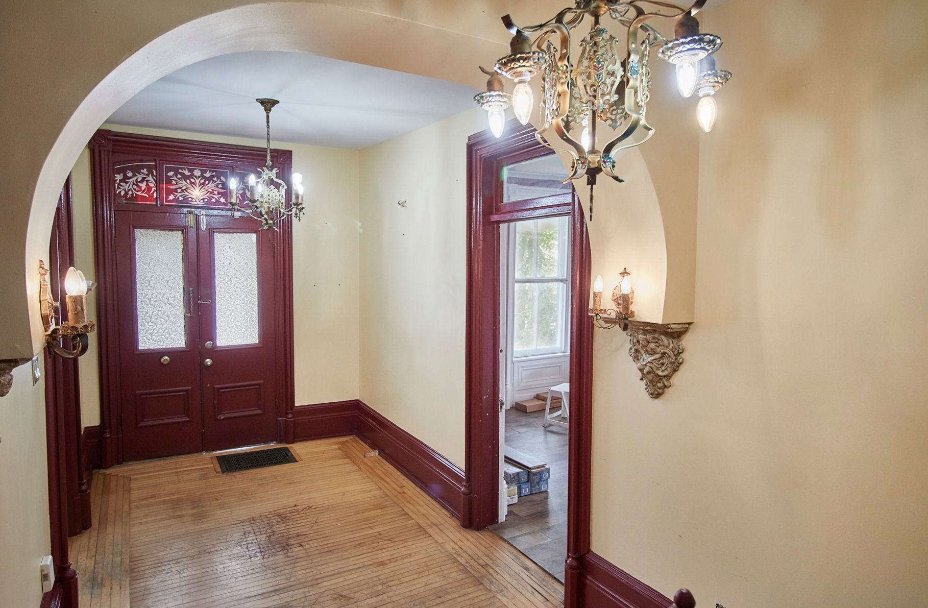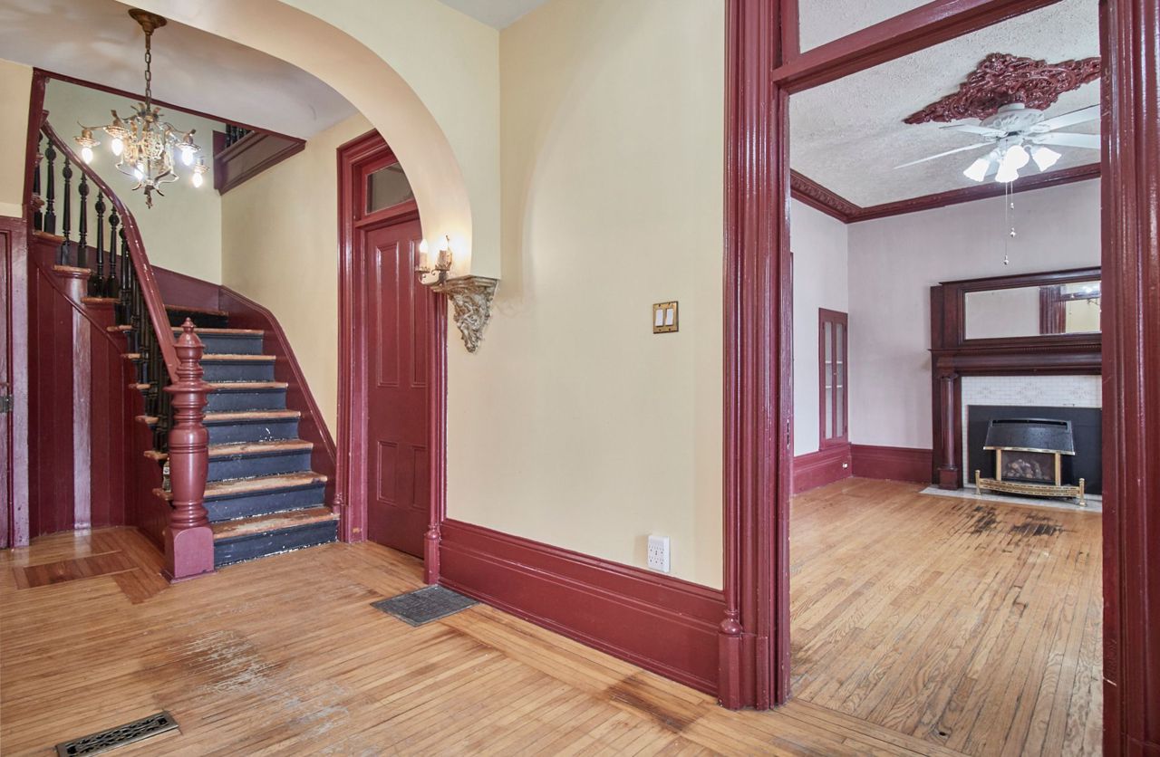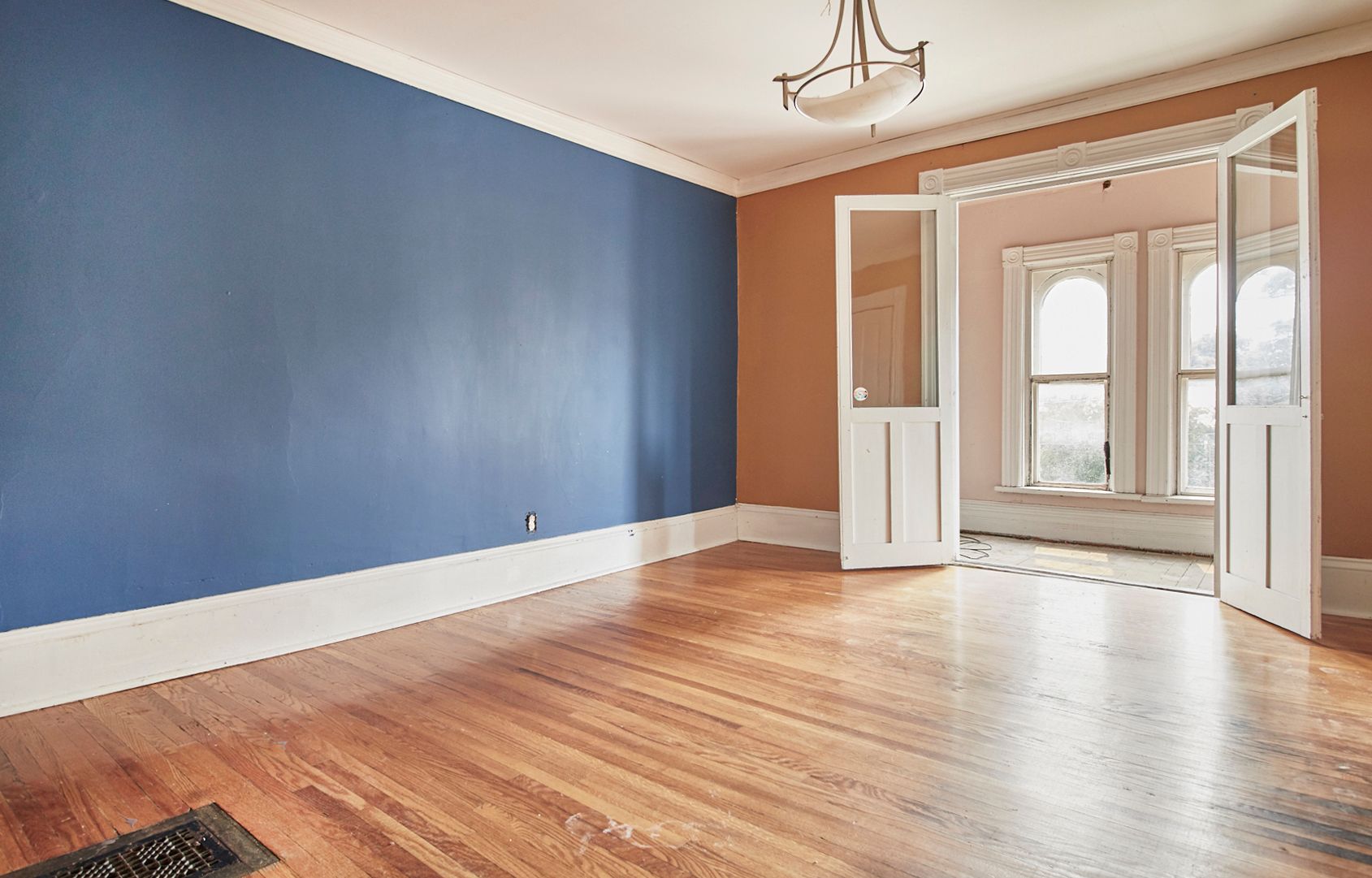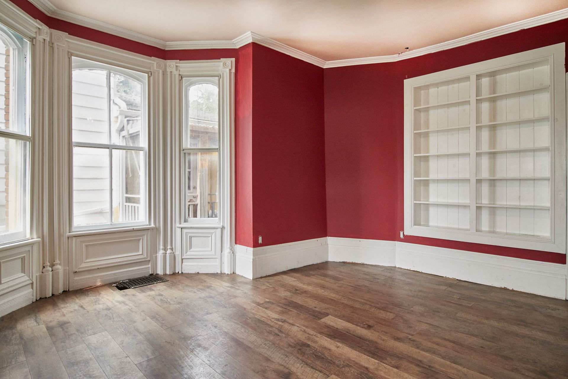 Hardwood Floor Large Window Crown Moulding