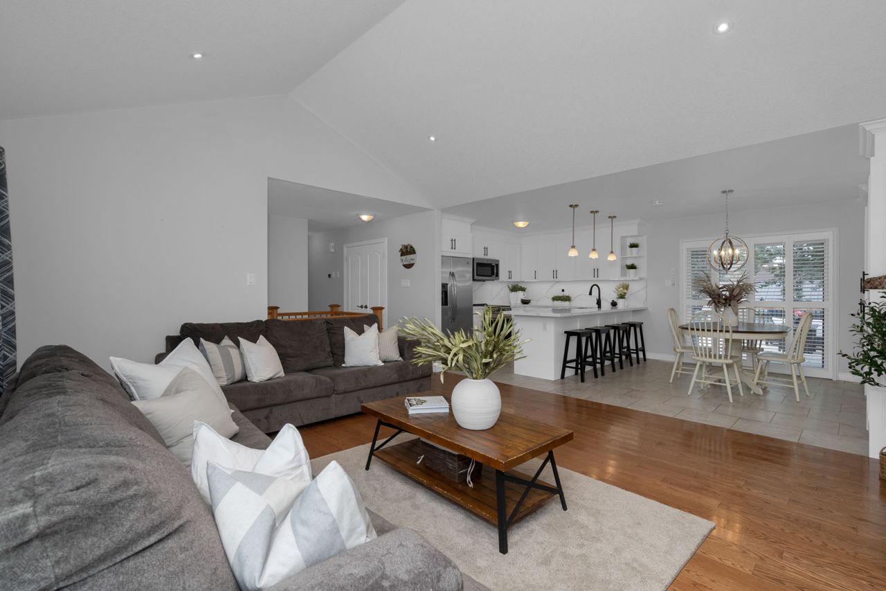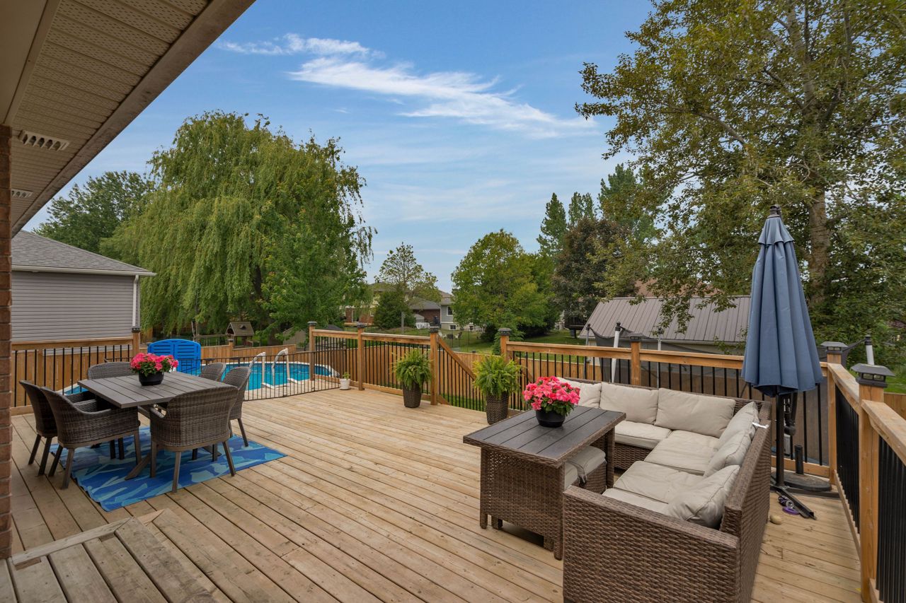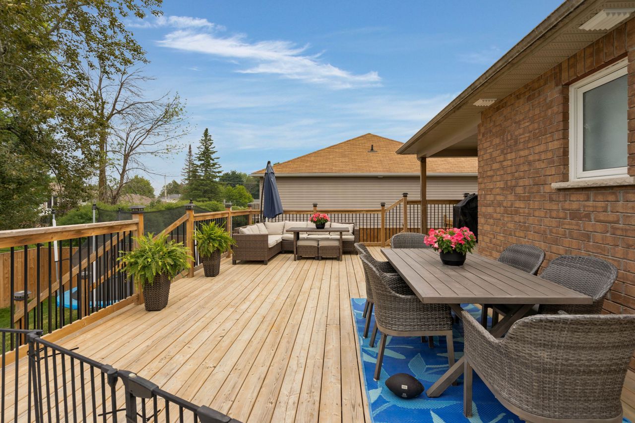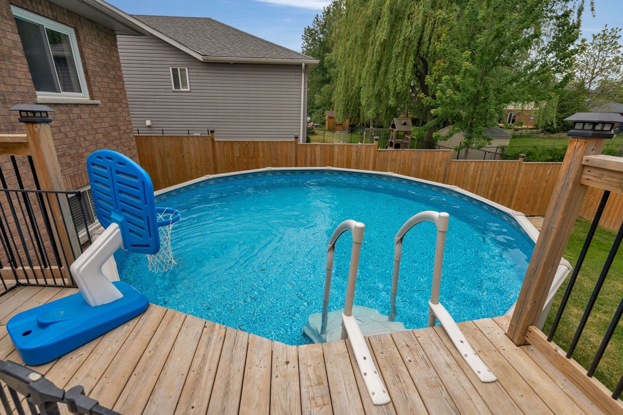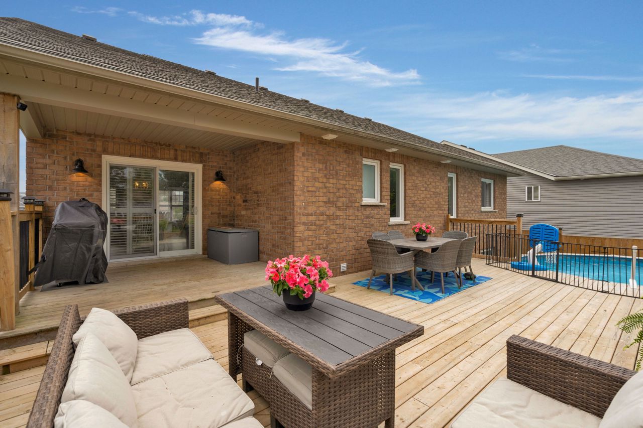 Move in ready and fully finished! This bungalow offers nearly 2600 finished square feet of living space. Open concept main floor features cathedral ceilings and bright living room open to renovated kitchen with quartz countertops and backsplash and extended pantry and coffee bar. Kitchen walks out to large, back deck and fully fenced yard. Above ground pool is heated and ready to enjoy! 3 bedrooms on the main floor including primary bedroom with renovated ensuite and walk in closet. Spacious finished basement with large windows features a huge rec room and office nook. Stylish 3 pc bathroom with glass shower and laundry room. Fourth bedroom is large - perfect for teens, primary bedroom and/or great guest space. Double car garage with inside access. This family friendly neighbourhood offers a playground, minimal thorough traffic and is conveniently located 30 minutes to Barrie, 10 minutes to Collingwood and 1 hour to the GTA.Projector and Treadmill negotiable.