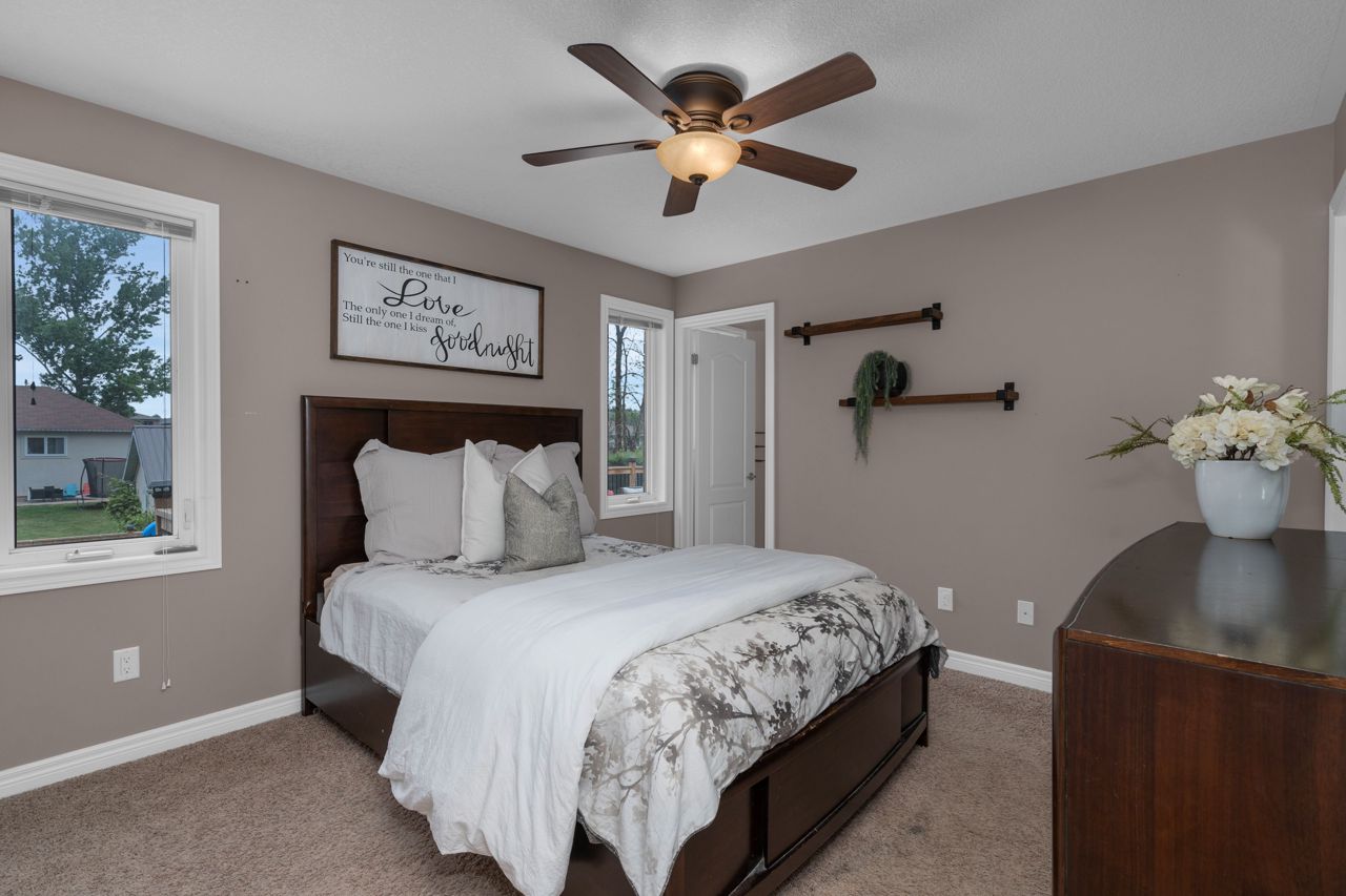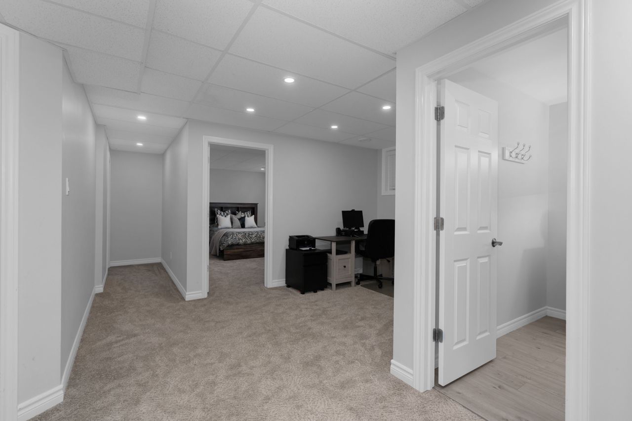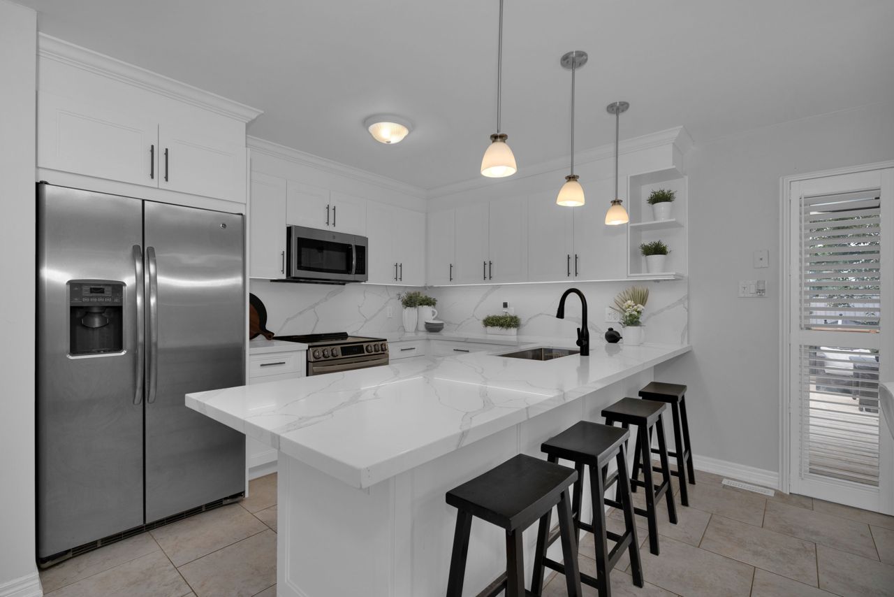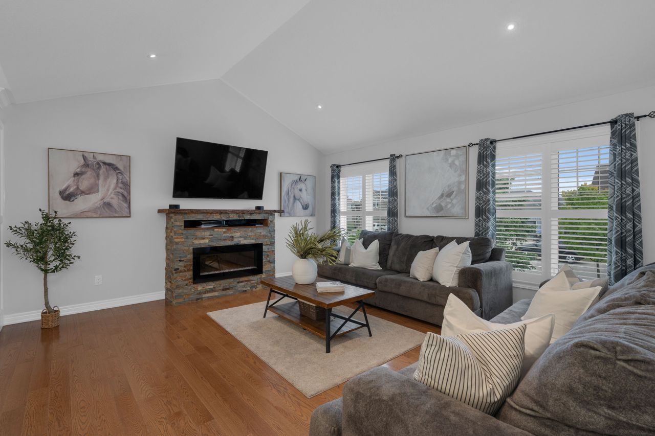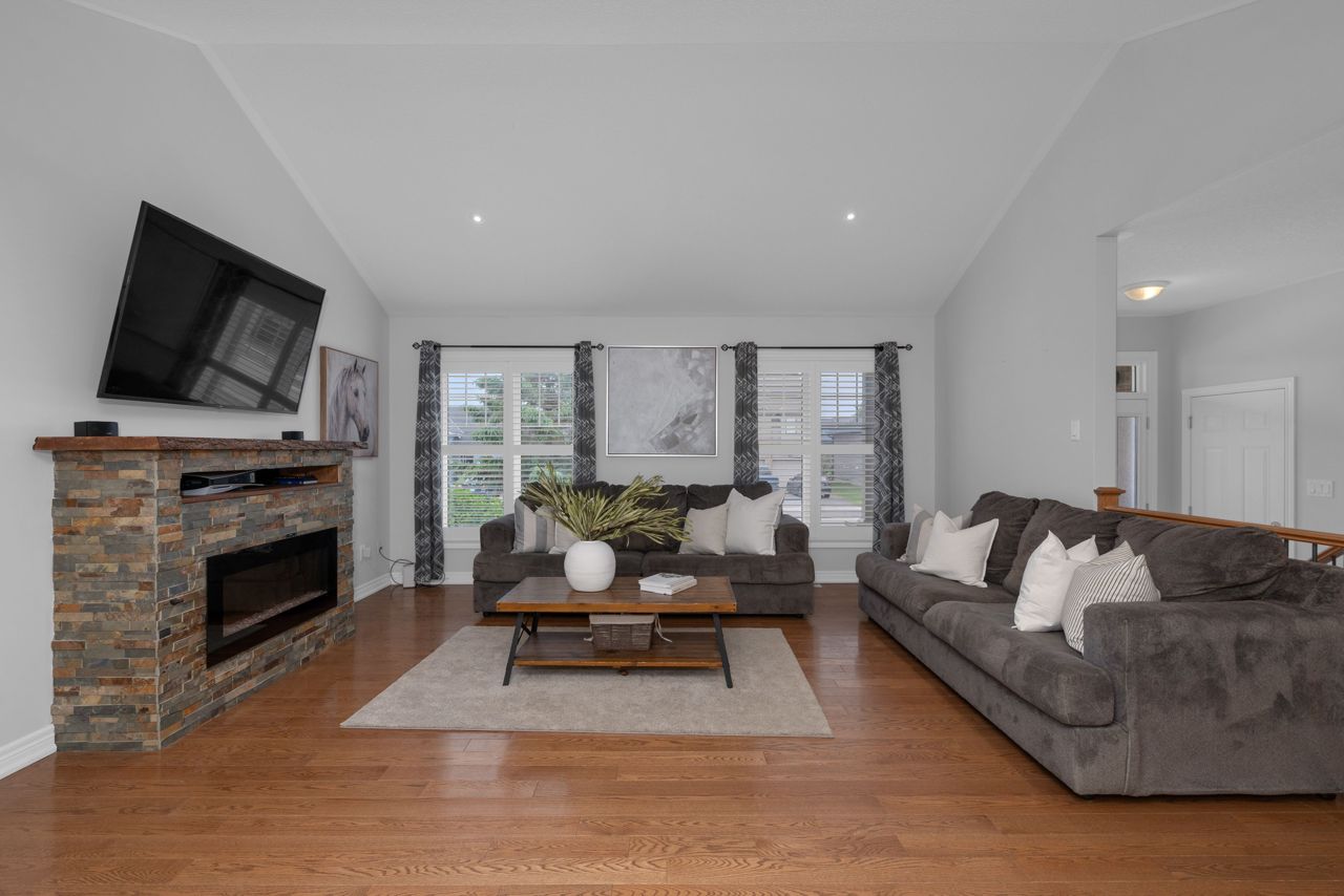 Move in ready and fully finished! This bungalow offers nearly 2600 finished square feet of living space. Open concept main floor features cathedral ceilings and bright living room open to renovated kitchen with quartz countertops and backsplash and extended pantry and coffee bar. Kitchen walks out to large, back deck and fully fenced yard. Above ground pool is heated and ready to enjoy! 3 bedrooms on the main floor including primary bedroom with renovated ensuite and walk in closet. Spacious finished basement with large windows features a huge rec room and office nook. Stylish 3 pc bathroom with glass shower and laundry room. Fourth bedroom is large - perfect for teens, primary bedroom and/or great guest space. Double car garage with inside access. This family friendly neighbourhood offers a playground, minimal thorough traffic and is conveniently located 30 minutes to Barrie, 10 minutes to Collingwood and 1 hour to the GTA.Projector and Treadmill negotiable.