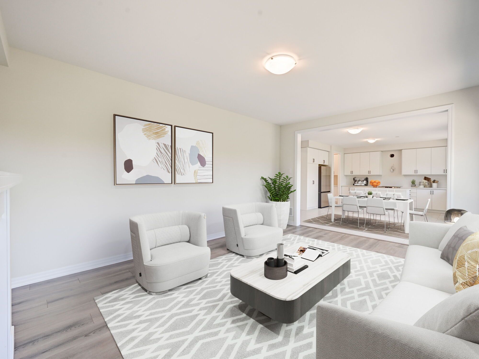 Welcome to this expertly designed and brand-new home located in Stayner, Ontario, built by the renowned Treasure Hill. This stunning residence features almost 3300 sf, 9' smooth ceilings on the main floor, hardwood throughout (minus the kitchen) and five large bedrooms, each with access to a bathroom, which makes this home is perfect for growing families or those who desire ample space for guests. The expansive kitchen boasts SS appliances, butler pantry and stone countertops, providing a sleek and modern aesthetic. The kitchen seamlessly opens up to the family room, featuring a gas fireplace, creating a cozy and inviting atmosphere and the large windows provide a picturesque view of the tranquil pond in the yard, creating a serene backdrop for everyday living.The spacious basement features a convenient walk-up to the yard, offering easy access and endless possibilities for customization. Rest easy knowing that this home comes with a Tarion warranty, providing peace of mind for yearsWalk-in closets in each bedroom, w/primary bedroom offering 2. Unfinished basement is ready for your