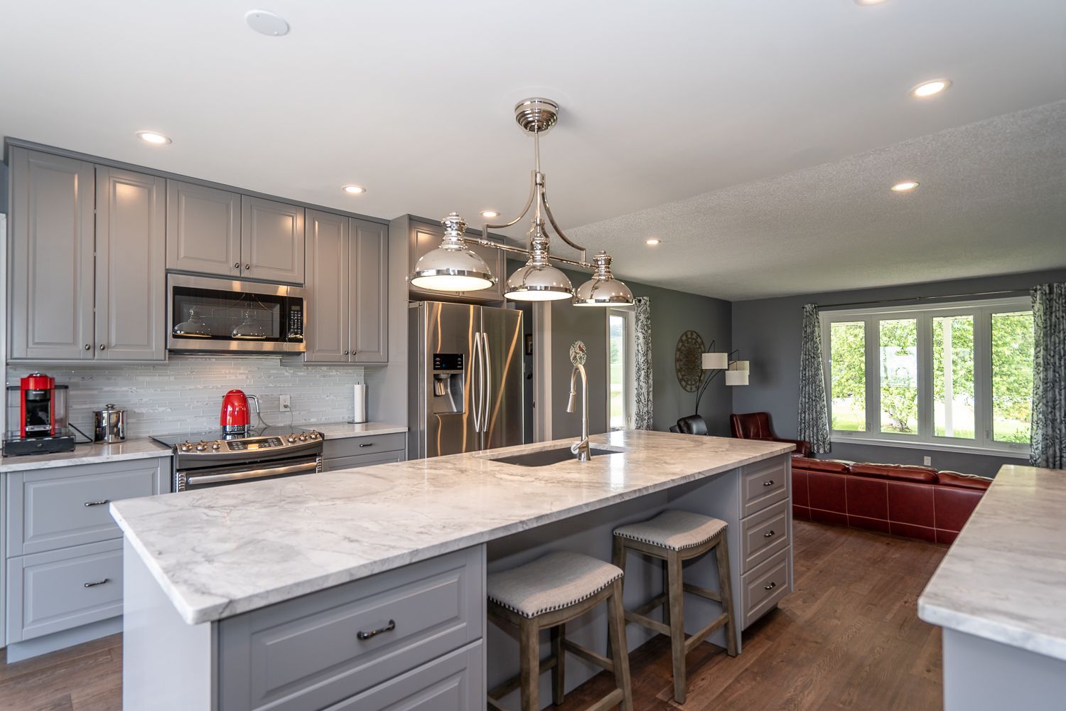 Nearly 2,000 sq ft bungalow with almost 4,000 total sq ft finished, located on incredible 1.7 acre lot with 378 ft frontage just a few km's N of picturesque Creemore. High and dry location in area of fine estate homes, with breathtaking, priceless views to the East for miles and miles. The grounds are meticulously manicured and you'll love the wide frontage adding so many options to your outdoor lifestyle. House has been fully renovated from top to bottom in the last 10 years, highlighted by beautiful kitchen with marble c-tops, brand new hrdwood flrs thru-out entire main level, all 3 bathrooms, & recently finished basement adding a huge amount of great additional space. Exterior boasts 2 new front drs, new garage dr 2017, 2 car grge, long driveway, large deck at rear, covered front porch. Basement still has tons of storage space, despite being mostly finished. Mechanical upgrades include: dog fence, metal roof 2020, siding 2021, furnace 2022, GDO 2017, new owned HWT, UV filter.M/F laundry, inside garage access, no carpet in entire home, cold cellar. Click "view listing on realtor website" for age, sq ft, prop taxes, and more.