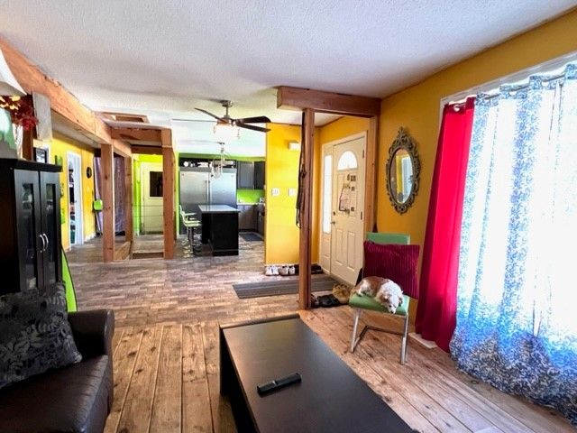 Bungalow in the village of Creemore on oversized corner lot. Bright spacious open concept. Up-dated kitchen with stainless steel appliances including, large center island with stainless steel countertop, range hood, Frigidaire fridge/freezer, and farm style sink. Great family home with 4 bedrooms, possible 5th if needed. Basement with family room. Forced air gas heat. Attached garage with inside entry.