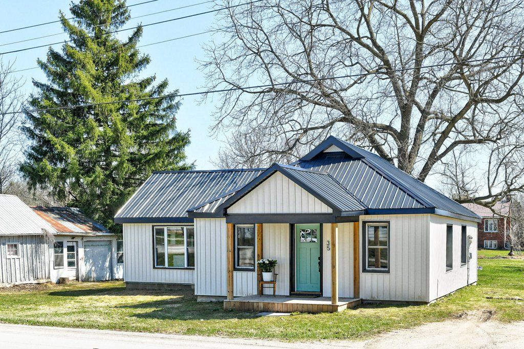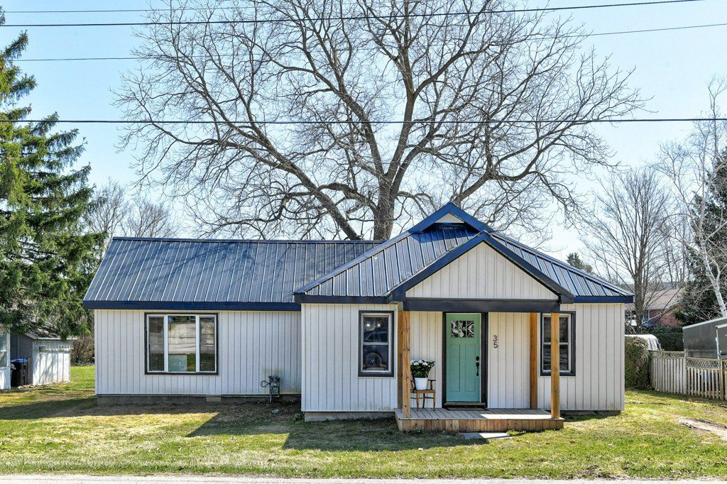 Welcome to 35 Caroline Street, nestled on a spacious 101 x 166 in-town lot in the picturesque Village of Creemore. This beautifully updated home blends modern comfort with small-town charm, offering a peaceful retreat just a short stroll from downtown shops and cafes.Thoughtfully renovated over the past seven years, the home features a steel roof, new exterior siding, engineered hardwood flooring, upgraded insulation, and a high-efficiency gas furnace ensuring lasting value and year-round comfort.Inside, the home offers a warm, open-concept layout with vaulted ceilings and a bright kitchen and breakfast area. From the kitchen, walk out to a private patio overlooking the expansive backyard with mature trees an ideal setting for morning coffee or evening entertaining.The generous living room provides plenty of space to relax and unwind. The primary bedroom features a walk-in closet and private ensuite, while a versatile den offers flexibility as a home office or second bedroom. Additional highlights include a convenient laundry closet and owned hot water tank. Outside, enjoy a detached garage, extra storage shed, and the perfect balance of green space and privacy all within walking distance to Creemore's vibrant downtown core. Don't miss this rare opportunity to own a move-in-ready home in one of Ontario's most charming villages. Come experience life in Creemore!