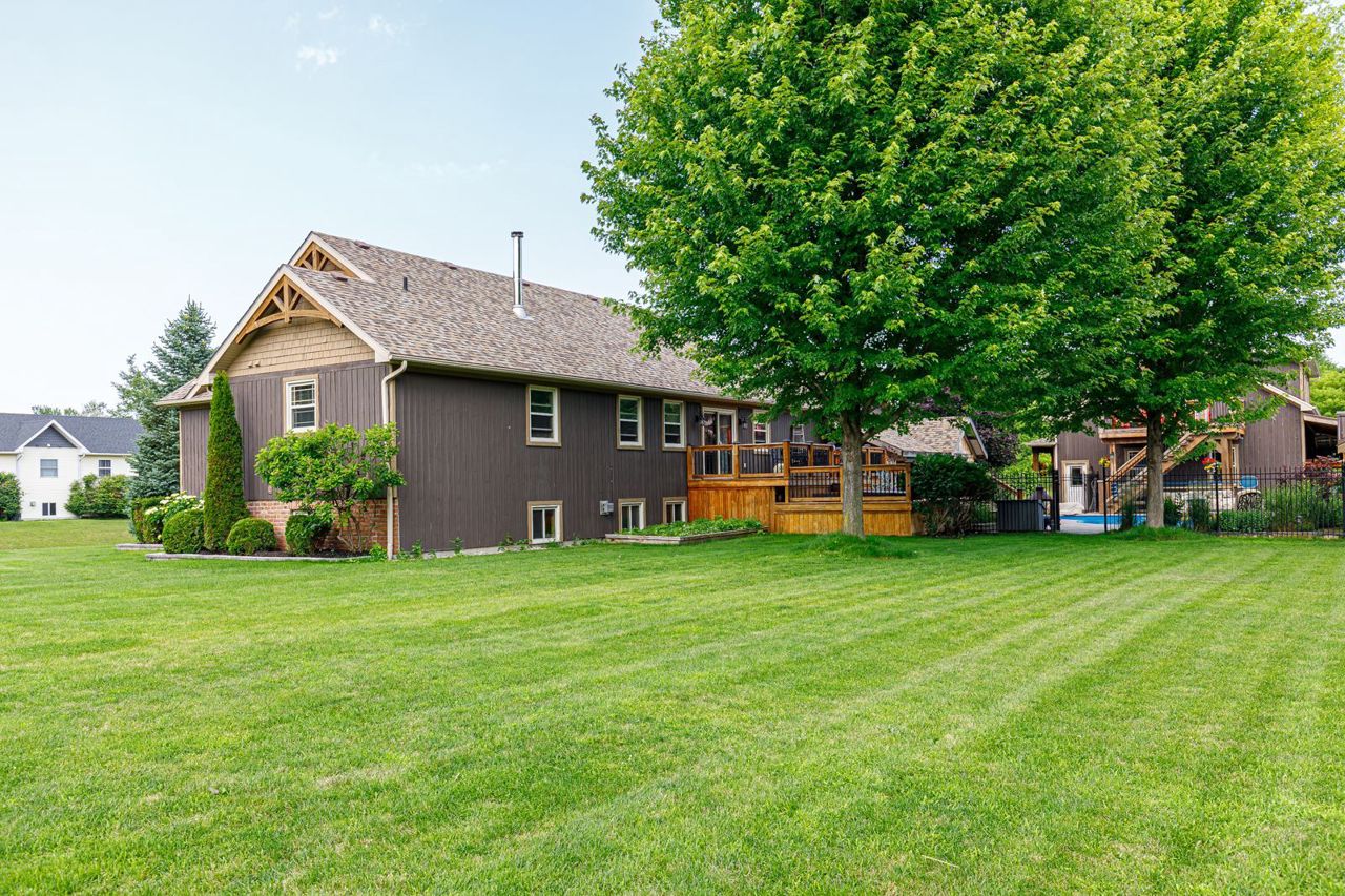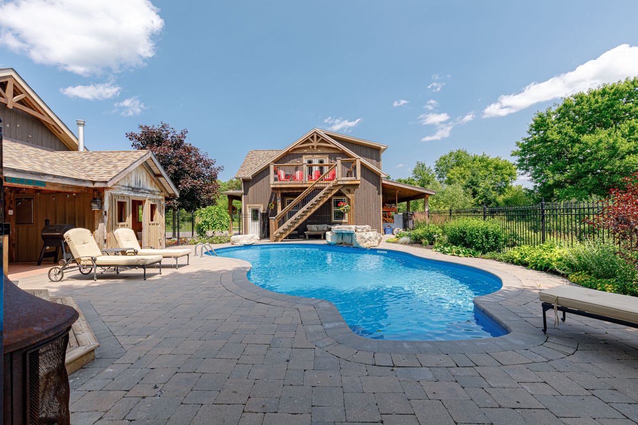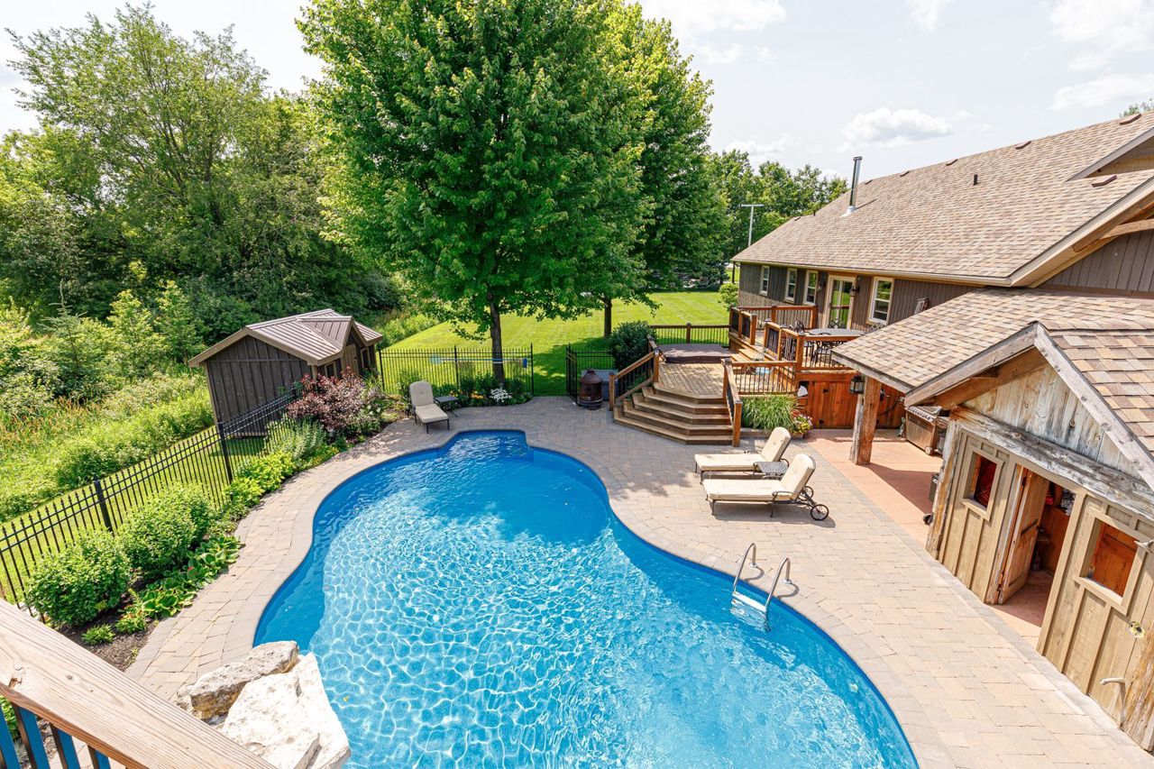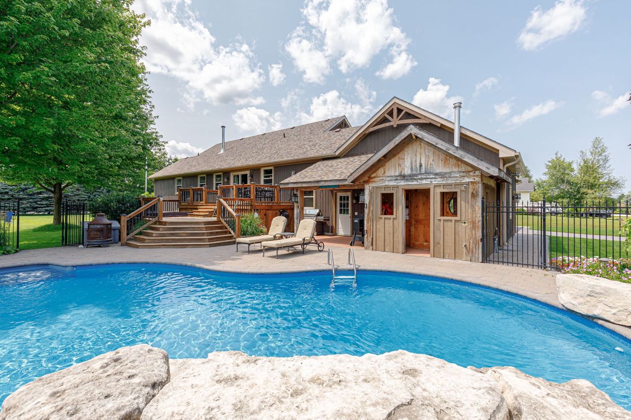 Your own private oasis at 47 Blackburn Ave. 4 bdrm (3+1), 3 bth raised bungalow is situated on 1 acre at the end of the cul-de-sac & walking distance to Nottawa Elem School & the park just down the road. You will instantly notice the cathedral, tongue & groove ceilings with wood beams, floor to ceiling wood burning f/p, birch hrdwd flrs, modern kitchen with quartz counters, eat-in island, soft close drawers & s/s appliances with gas stove. Main floor also features primary bedroom with walk-in closet & 4pc ensuite; an additional good sized bedroom, den & 4pc bath with two of the bedrooms featuring hardwood floors & the third having engineered hardwood. The finished basement offers plenty of space for the kids to play or to entertain with room for a pool table, separate office/play area, bar, two additional bdrms, fp, laundry & 3pc bath. Outside continues WOWing you with a backyard you won't want to leave with a multi-level deck featuring your hot tub, in-ground pool, mature trees & more3-car detached shop with pot lights, central vac & 12ft ceiling on the east side.Both the shop & double garage attached to the home feature epoxy floors, insulated and aluminum doors. In-ground sprinkles