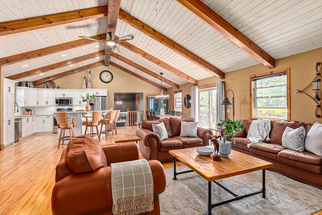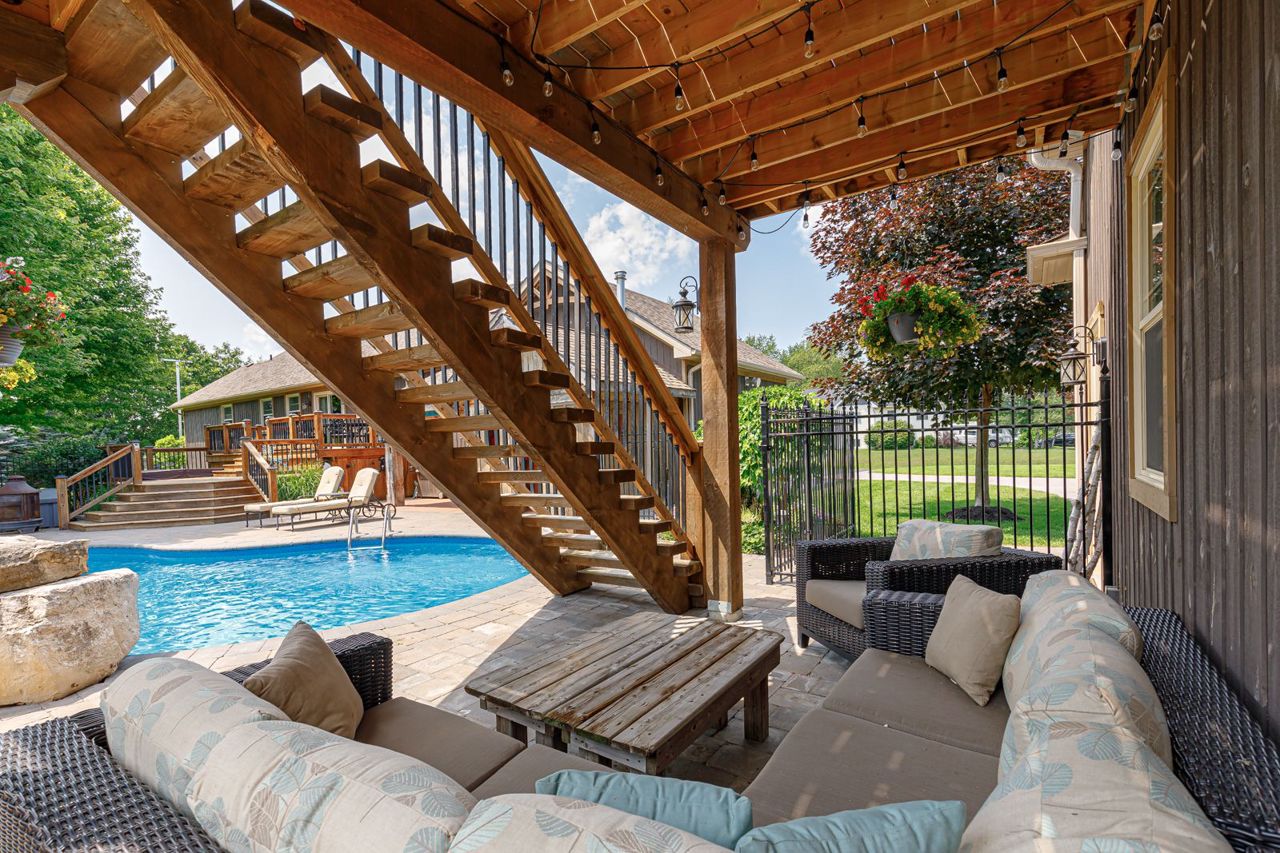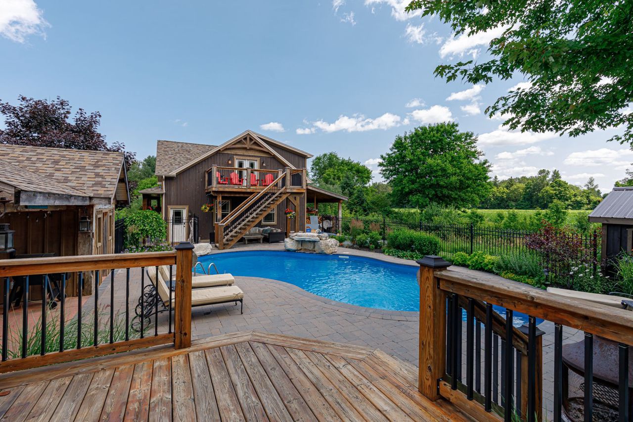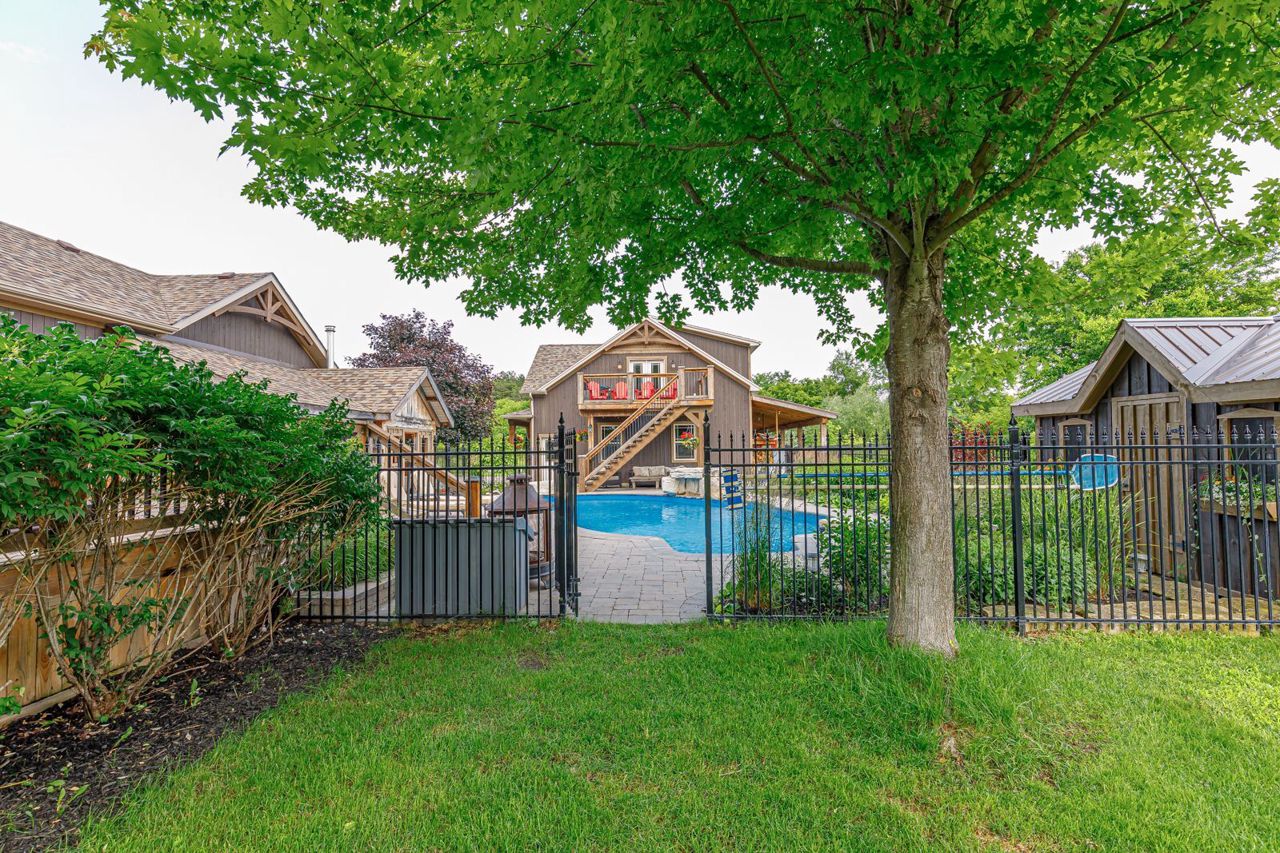 Your own private oasis at 47 Blackburn Ave. 4 bdrm (3+1), 3 bth raised bungalow is situated on 1 acre at the end of the cul-de-sac & walking distance to Nottawa Elem School & the park just down the road. You will instantly notice the cathedral, tongue & groove ceilings with wood beams, floor to ceiling wood burning f/p, birch hrdwd flrs, modern kitchen with quartz counters, eat-in island, soft close drawers & s/s appliances with gas stove. Main floor also features primary bedroom with walk-in closet & 4pc ensuite; an additional good sized bedroom, den & 4pc bath with two of the bedrooms featuring hardwood floors & the third having engineered hardwood. The finished basement offers plenty of space for the kids to play or to entertain with room for a pool table, separate office/play area, bar, two additional bdrms, fp, laundry & 3pc bath. Outside continues WOWing you with a backyard you won't want to leave with a multi-level deck featuring your hot tub, in-ground pool, mature trees & more3-car detached shop with pot lights, central vac & 12ft ceiling on the east side.Both the shop & double garage attached to the home feature epoxy floors, insulated and aluminum doors. In-ground sprinkles