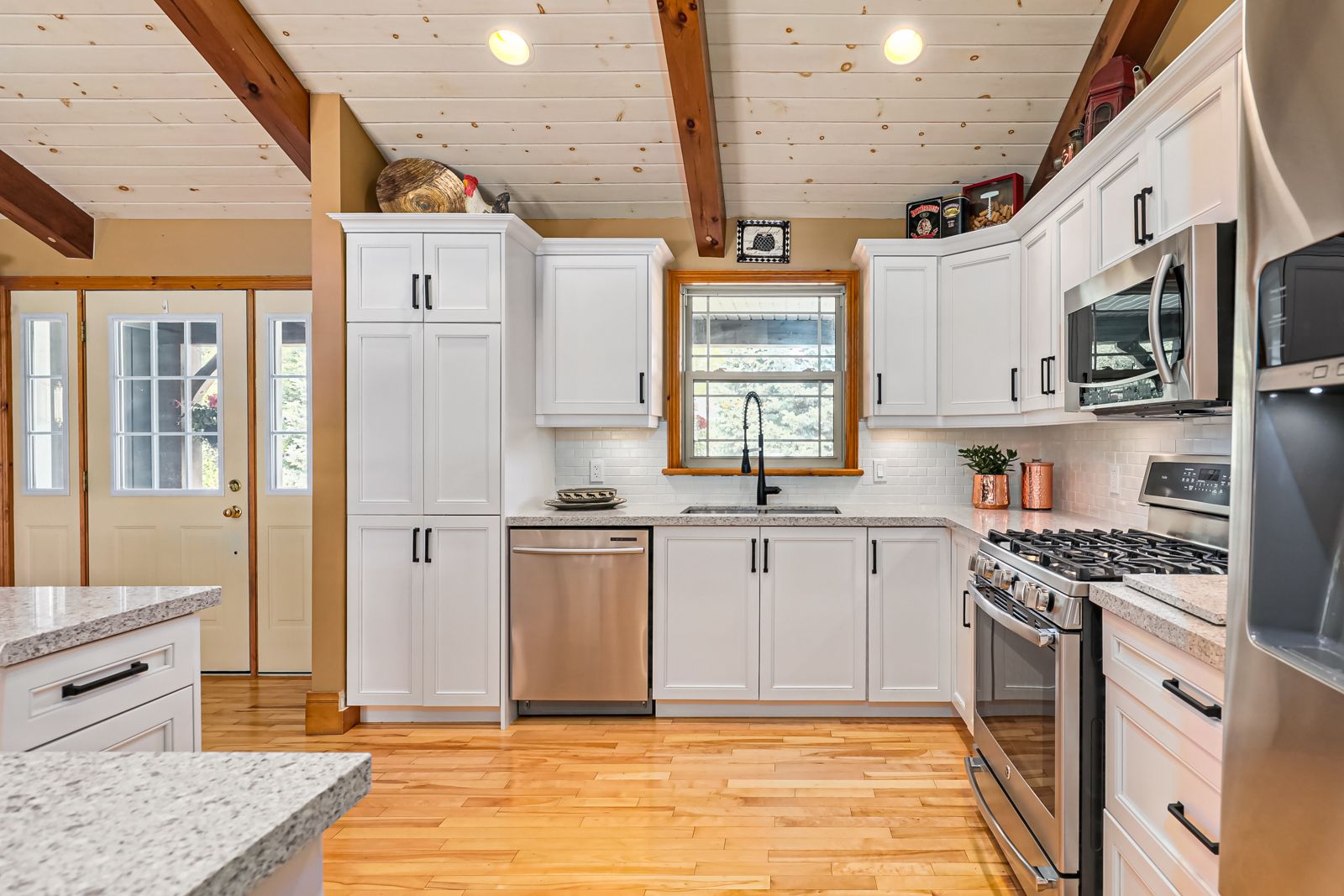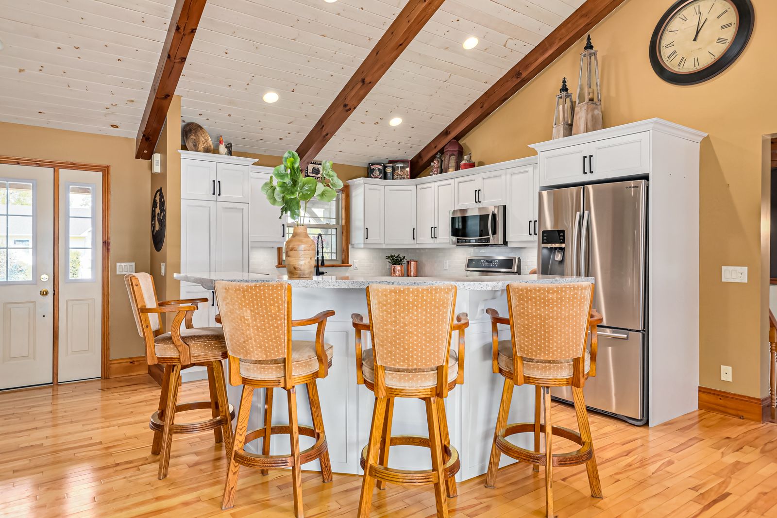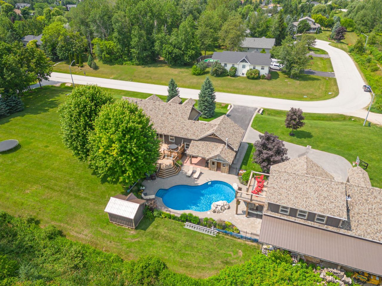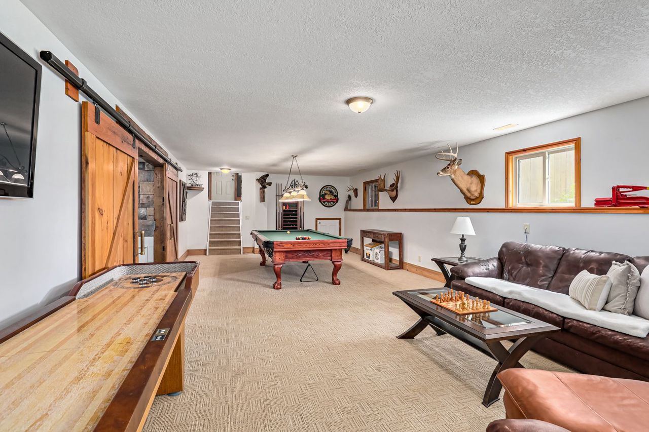 Your own private oasis at 47 Blackburn Ave. 4 bdrm (3+1), 3 bth raised bungalow is situated on 1 acre at the end of the cul-de-sac & walking distance to Nottawa Elem School & the park just down the road. You will instantly notice the cathedral, tongue & groove ceilings with wood beams, floor to ceiling wood burning f/p, birch hrdwd flrs, modern kitchen with quartz counters, eat-in island, soft close drawers & s/s appliances with gas stove. Main floor also features primary bedroom with walk-in closet & 4pc ensuite; an additional good sized bedroom, den & 4pc bath with two of the bedrooms featuring hardwood floors & the third having engineered hardwood. The finished basement offers plenty of space for the kids to play or to entertain with room for a pool table, separate office/play area, bar, two additional bdrms, fp, laundry & 3pc bath. Outside continues WOWing you with a backyard you won't want to leave with a multi-level deck featuring your hot tub, in-ground pool, mature trees & more3-car detached shop with pot lights, central vac & 12ft ceiling on the east side.Both the shop & double garage attached to the home feature epoxy floors, insulated and aluminum doors. In-ground sprinkles