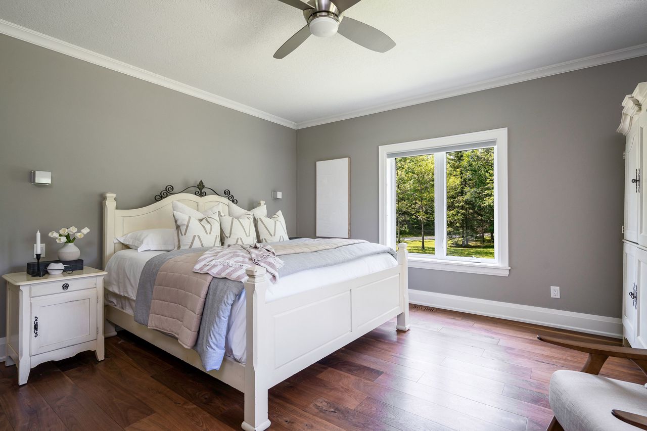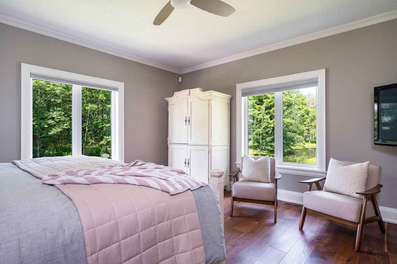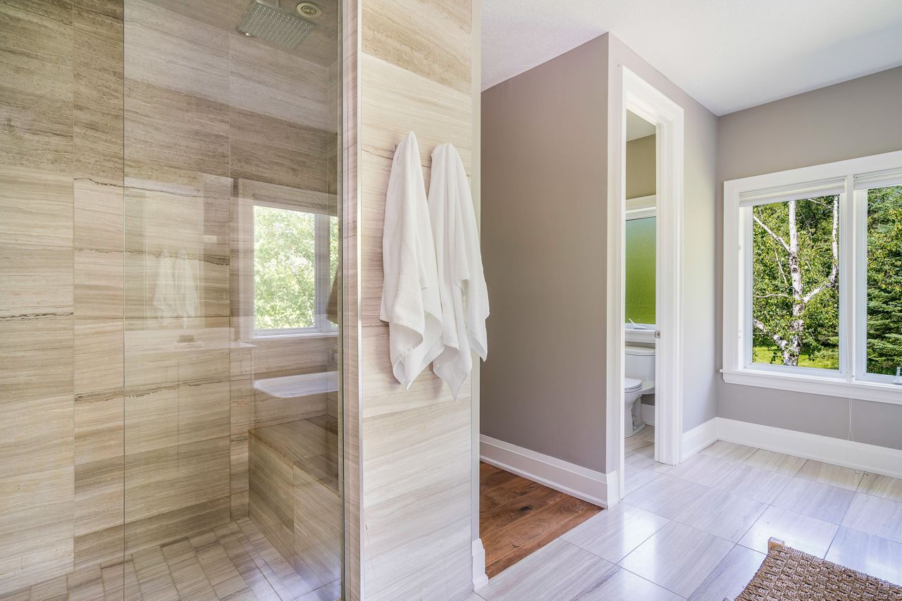 long winding drive, maximizing the privacy of the 9+ acre lot. The main floor primary offers private views of