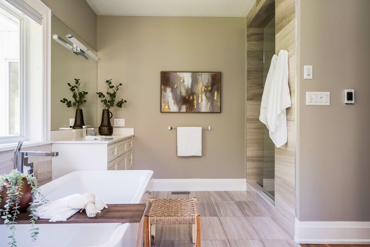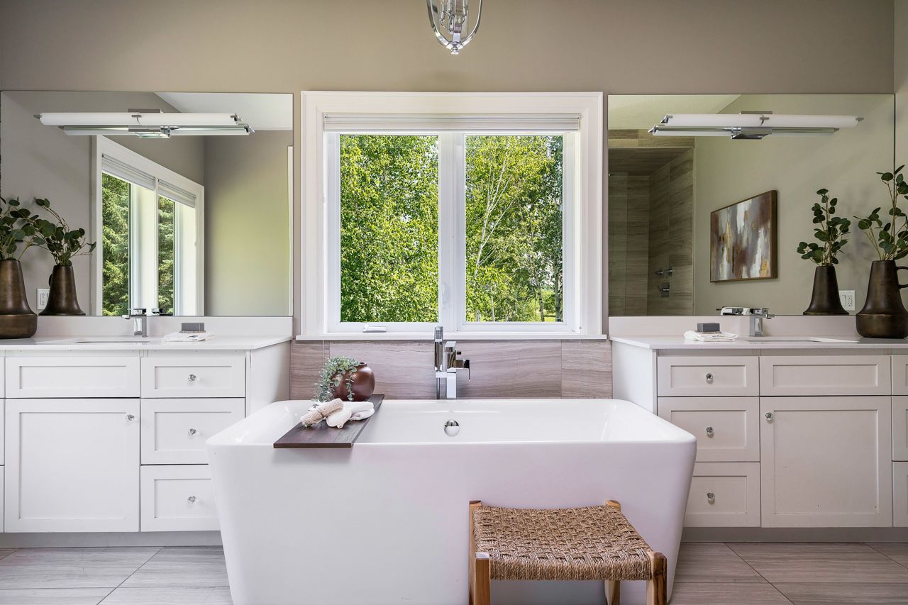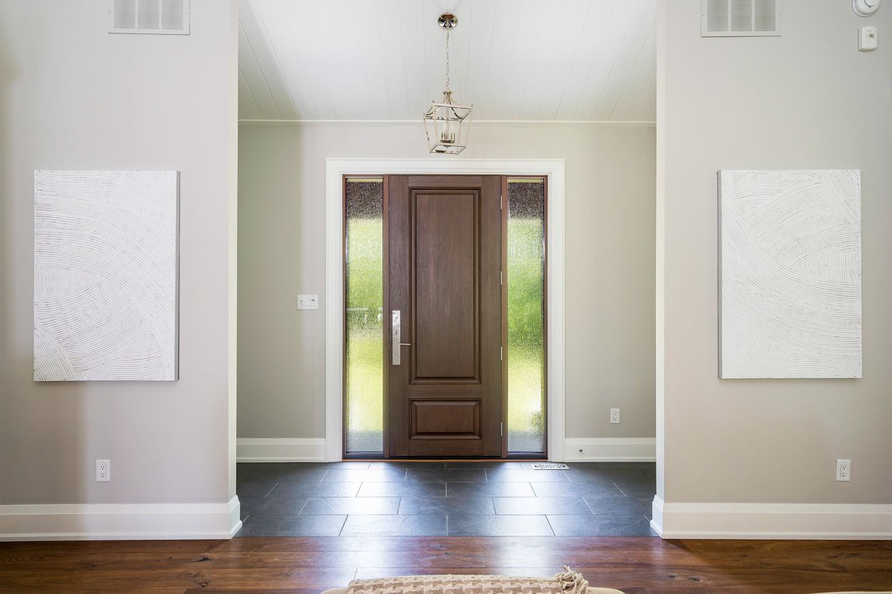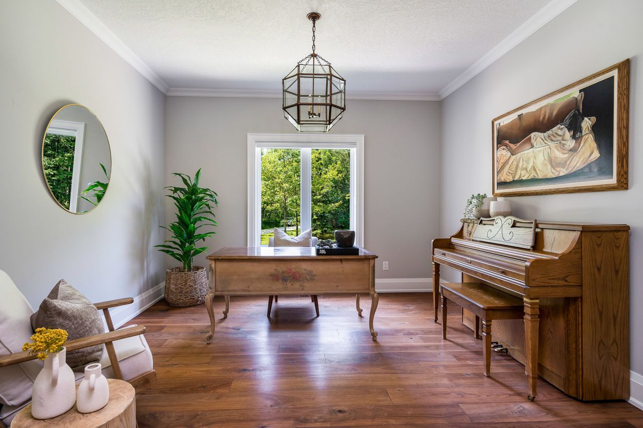 long winding drive, maximizing the privacy of the 9+ acre lot. The main floor primary offers private views of