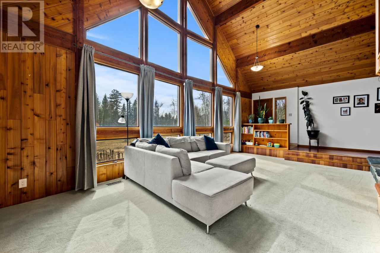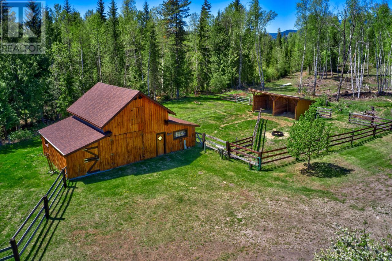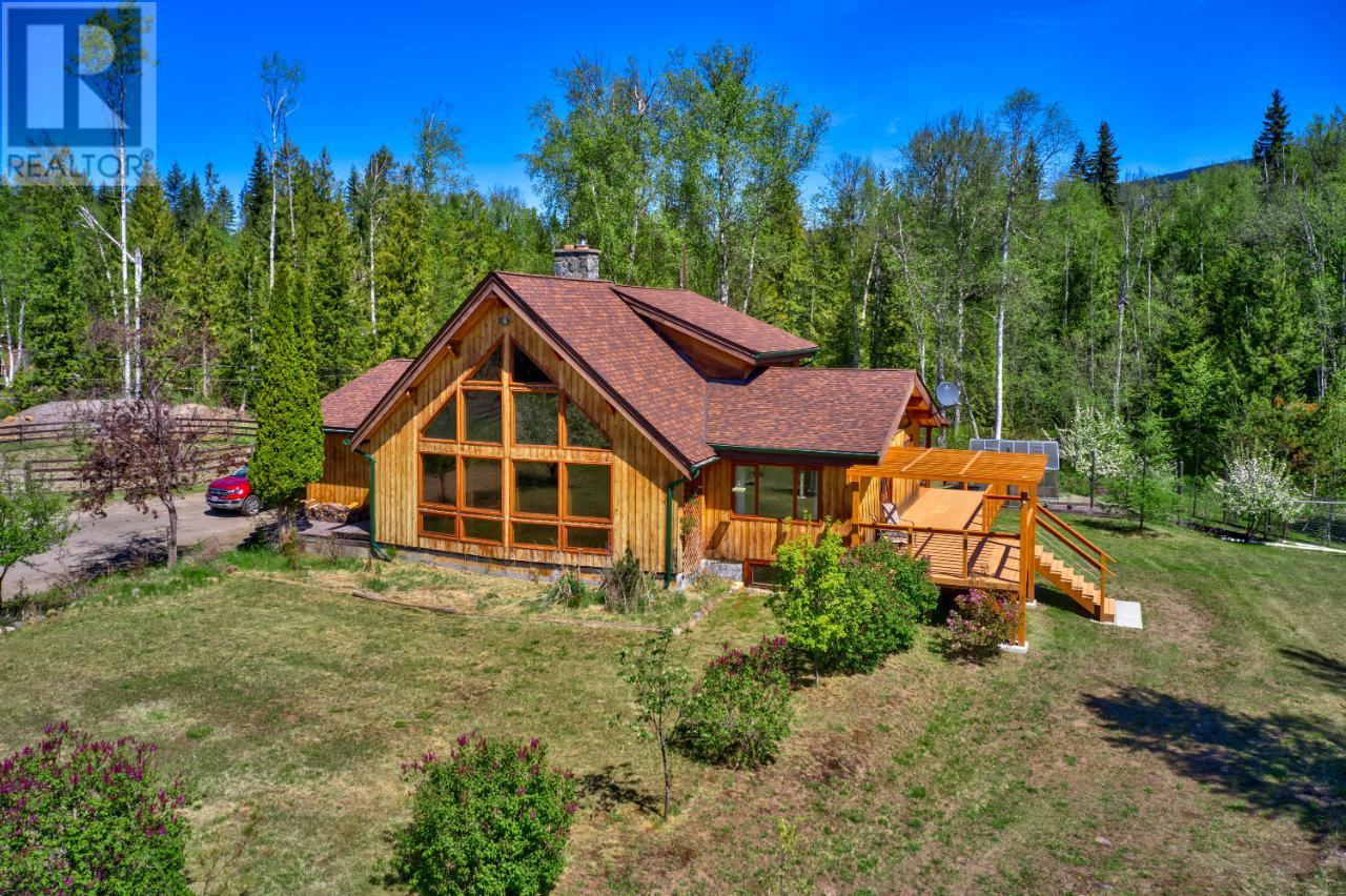 Absolutely stunning private acreage tucked away only 5kms from town amenities. This property features an impressive custom home situated on 10acres with floor to ceiling windows capturing the lovely views of the creek meandering through the property. The sprawling main level of the home offers a freshly painted open concept with a tasteful kitchen that leads into the dining room & cozy living room space accented with a floor to ceiling rock fireplace feature, 2 good sized bedrooms & a bathroom. The upper level features a loft with an oversized primary bedroom & ensuite. The lower level is a walk-out basement (suite potential) with 2 more bedrooms, bathroom, storage & mudroom space finished with new flooring. Enjoy your mornings on the spacious deck capturing the views of the creek with fenced yard space for the kids. This property has it all including fencing for animals, riding ring, barn & paddocks. Very unique property offering a variety of tree species creating a private getaway! Cell service & internet available. Geothermal heating/cooling is a bonus! Call today for a full info package or private viewing. (id:22211)