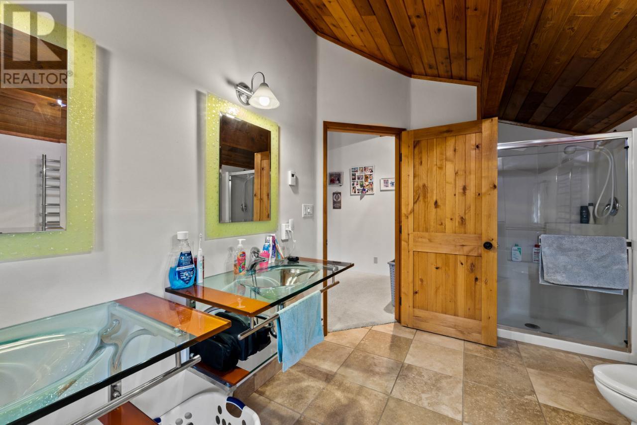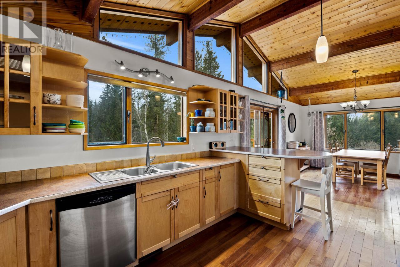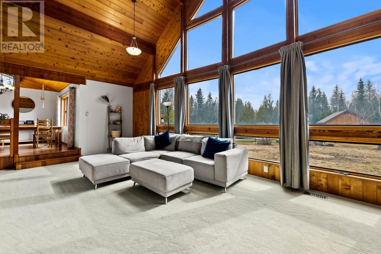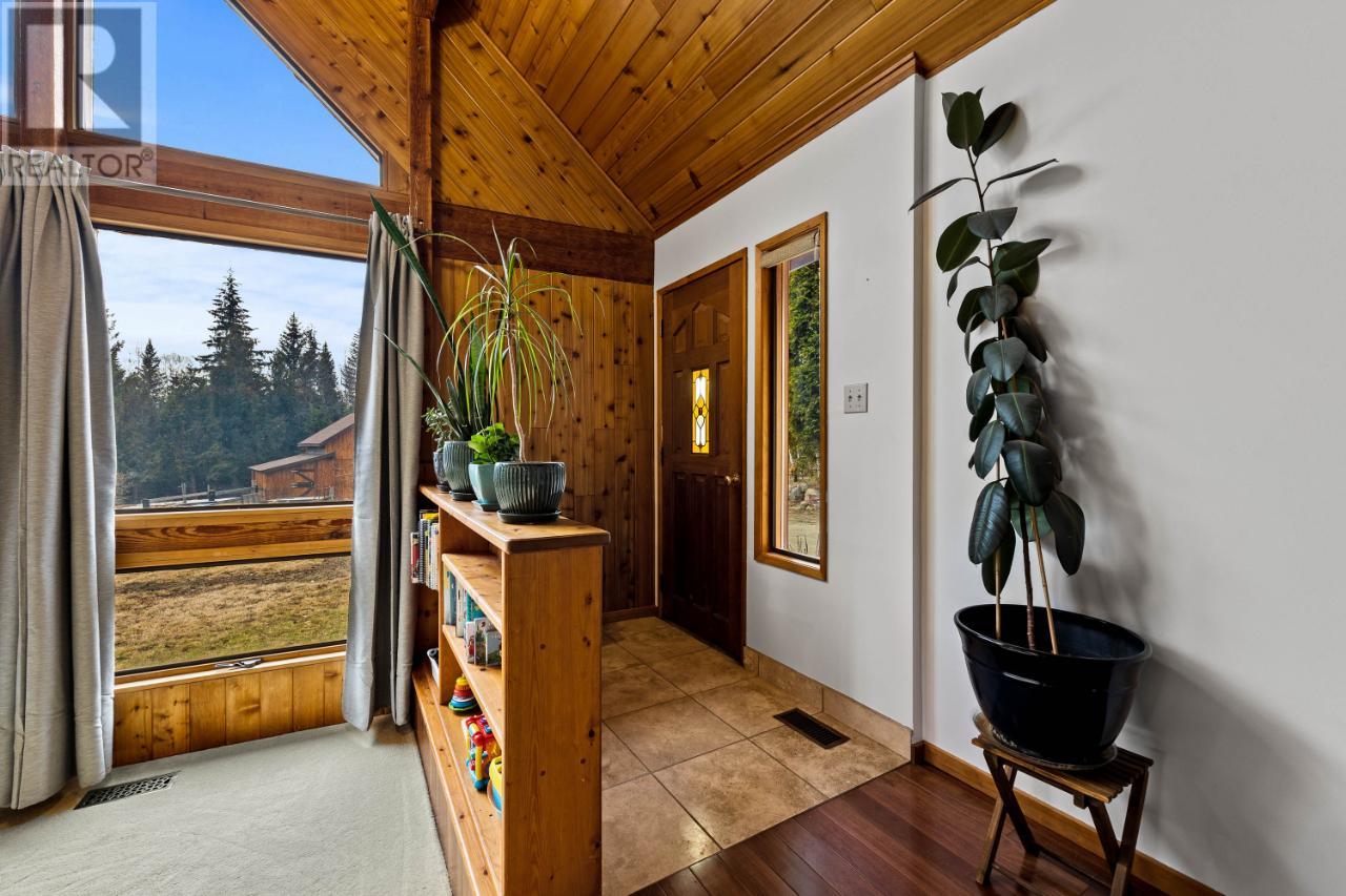 Absolutely stunning private acreage tucked away only 5kms from town amenities. This property features an impressive custom home situated on 10acres with floor to ceiling windows capturing the lovely views of the creek meandering through the property. The sprawling main level of the home offers a freshly painted open concept with a tasteful kitchen that leads into the dining room & cozy living room space accented with a floor to ceiling rock fireplace feature, 2 good sized bedrooms & a bathroom. The upper level features a loft with an oversized primary bedroom & ensuite. The lower level is a walk-out basement (suite potential) with 2 more bedrooms, bathroom, storage & mudroom space finished with new flooring. Enjoy your mornings on the spacious deck capturing the views of the creek with fenced yard space for the kids. This property has it all including fencing for animals, riding ring, barn & paddocks. Very unique property offering a variety of tree species creating a private getaway! Cell service & internet available. Geothermal heating/cooling is a bonus! Call today for a full info package or private viewing. (id:22211)