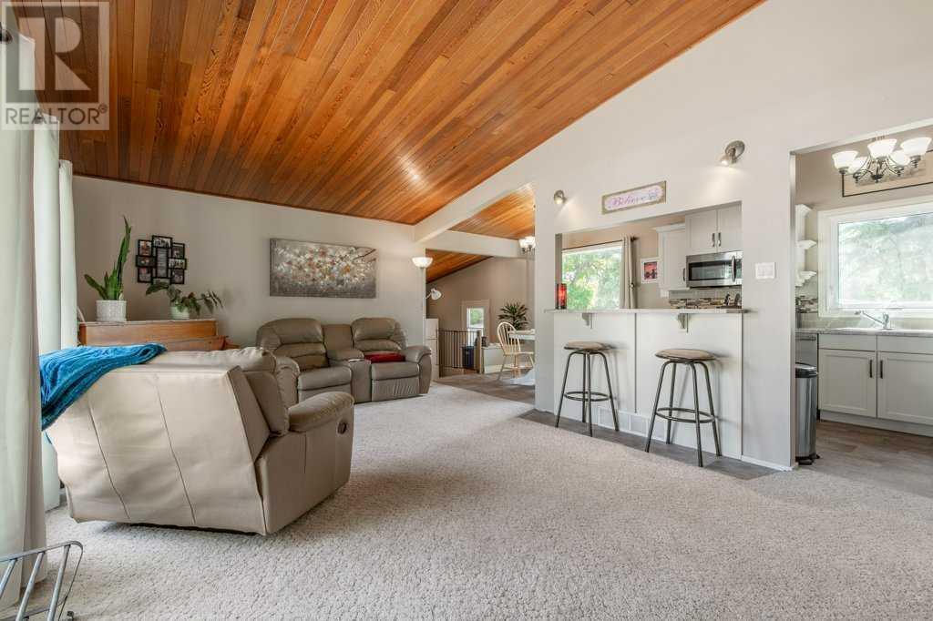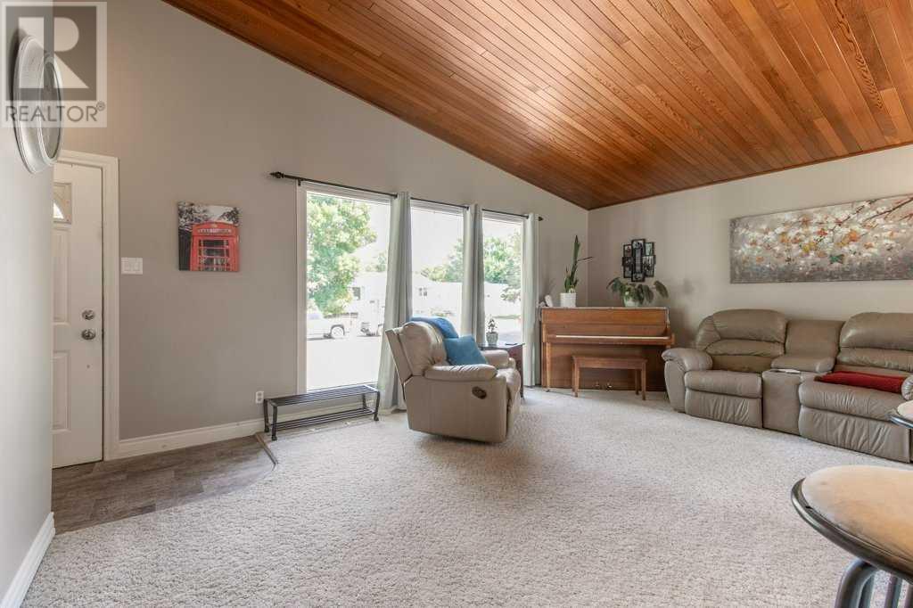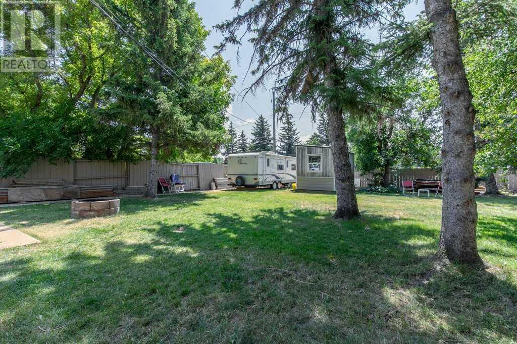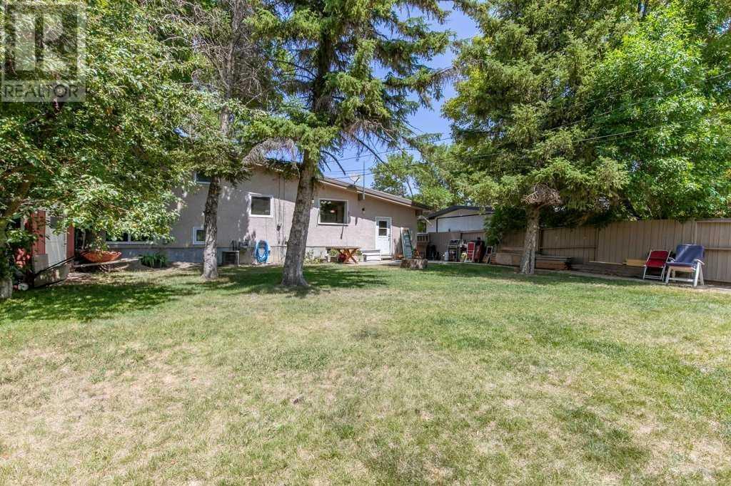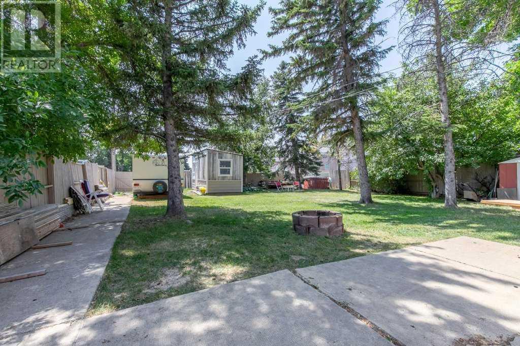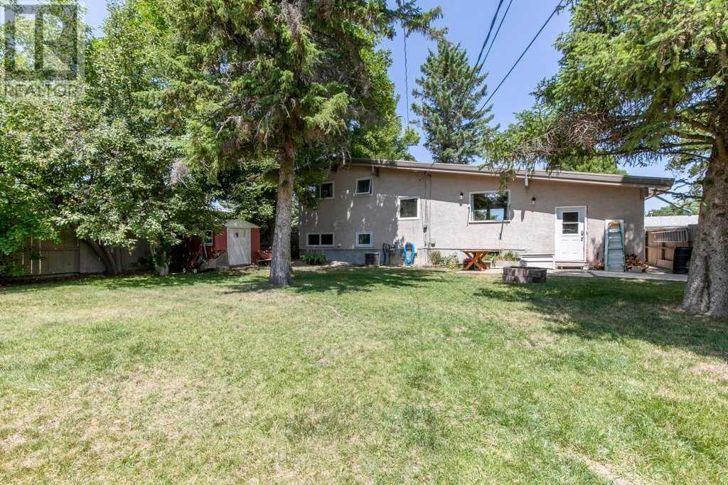 What a perfect location for this 4-level side split family home in Coaldale right in the middle of 3 schools including public elementary(K-5), middle school(6-8), and a Catholic School. This family home is situated on a large 60x130 lot with back alley access. Enjoy a HUGE backyard with mature trees and plenty of space including room to park the RV. Stucco Exterior with stone accents. Main floor is welcoming with vaulted cedar board ceiling. Living room has 3 large windows that let in tons of natural light. Kitchen has been nicely updated over the years and has ample cupboard space and beautiful stainless steel appliance package. There is a large family room just off the kitchen that was converted from a garage and has a real wood fireplace. Door to backyard also accessible from this room. Upper level houses 2 bedrooms including primary bedroom. There is also a nicely updated 4 piece bath with soaker tub on this level. Lower level has 2 more bedrooms and another updated bathroom with shower. Basement is developed with large rec room, a storage room, and laundry/utility room that also has quite a bit of extra storage space. Yard is fenced and landscaped and large trees provide tons of shade! Room for 2 large vehicles on the driveway and plenty of street parking out front when needed. Most windows updated in home! Convenience of central a/c to keep cool in the summer months! (id:22211)