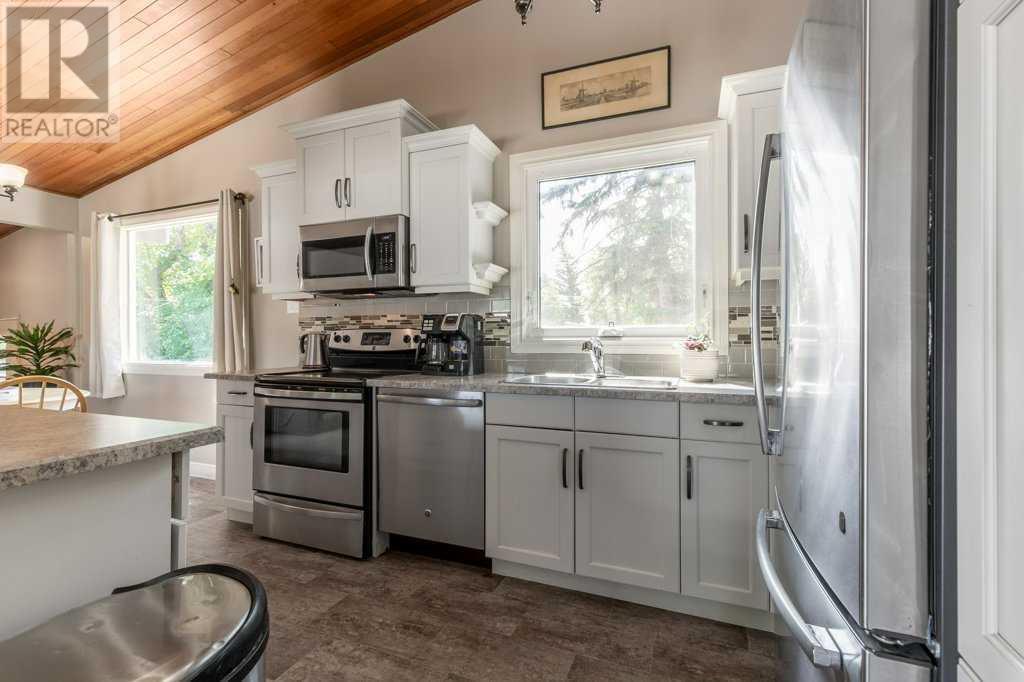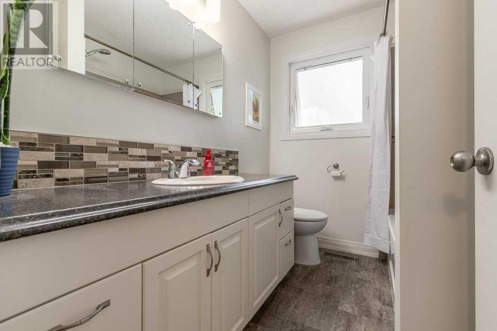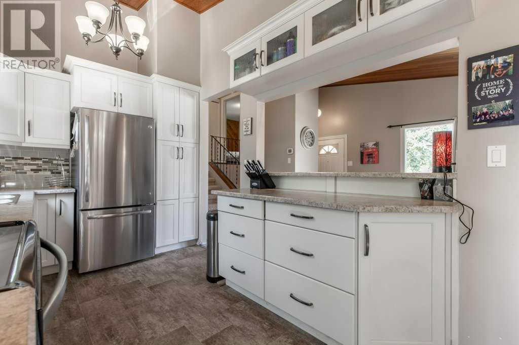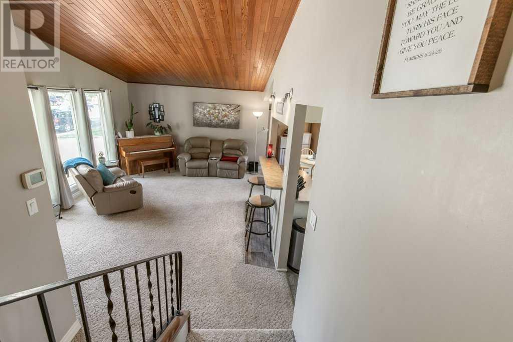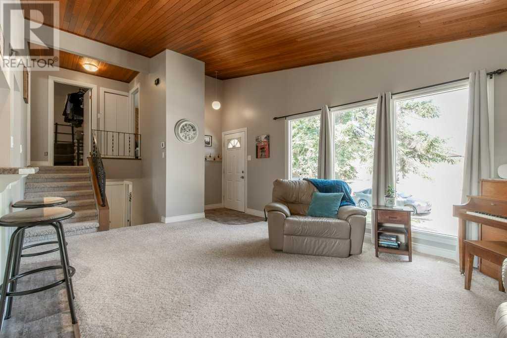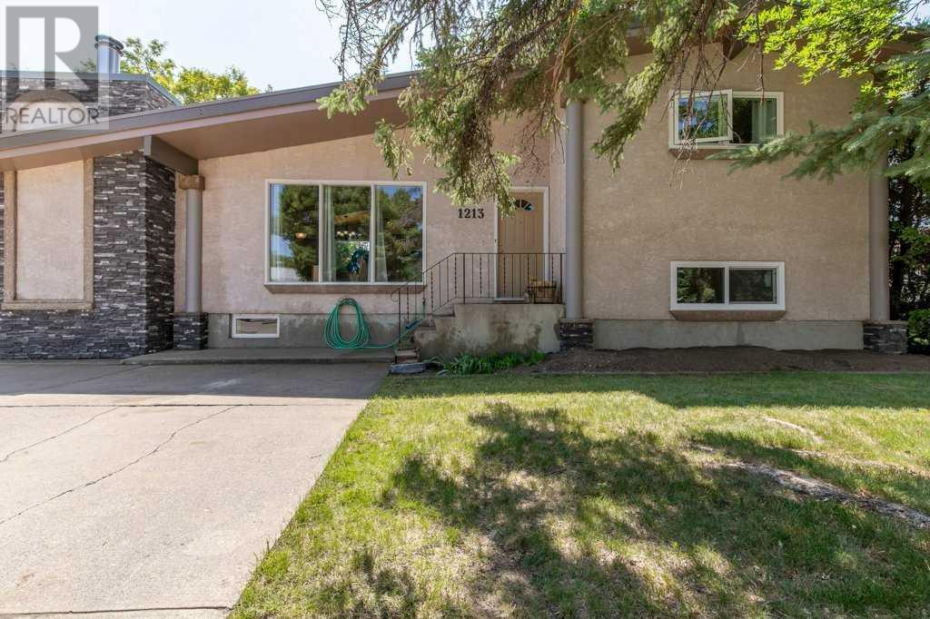 What a perfect location for this 4-level side split family home in Coaldale right in the middle of 3 schools including public elementary(K-5), middle school(6-8), and a Catholic School. This family home is situated on a large 60x130 lot with back alley access. Enjoy a HUGE backyard with mature trees and plenty of space including room to park the RV. Stucco Exterior with stone accents. Main floor is welcoming with vaulted cedar board ceiling. Living room has 3 large windows that let in tons of natural light. Kitchen has been nicely updated over the years and has ample cupboard space and beautiful stainless steel appliance package. There is a large family room just off the kitchen that was converted from a garage and has a real wood fireplace. Door to backyard also accessible from this room. Upper level houses 2 bedrooms including primary bedroom. There is also a nicely updated 4 piece bath with soaker tub on this level. Lower level has 2 more bedrooms and another updated bathroom with shower. Basement is developed with large rec room, a storage room, and laundry/utility room that also has quite a bit of extra storage space. Yard is fenced and landscaped and large trees provide tons of shade! Room for 2 large vehicles on the driveway and plenty of street parking out front when needed. Most windows updated in home! Convenience of central a/c to keep cool in the summer months! (id:22211)