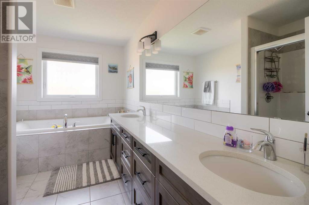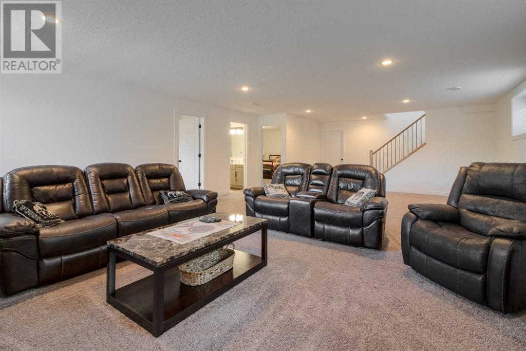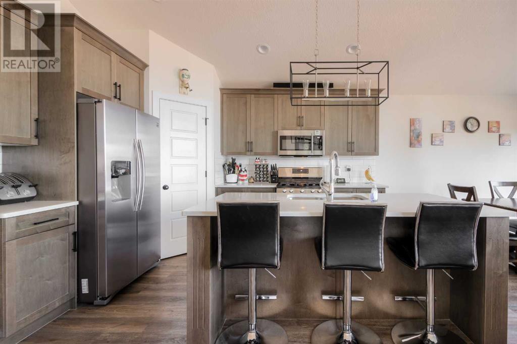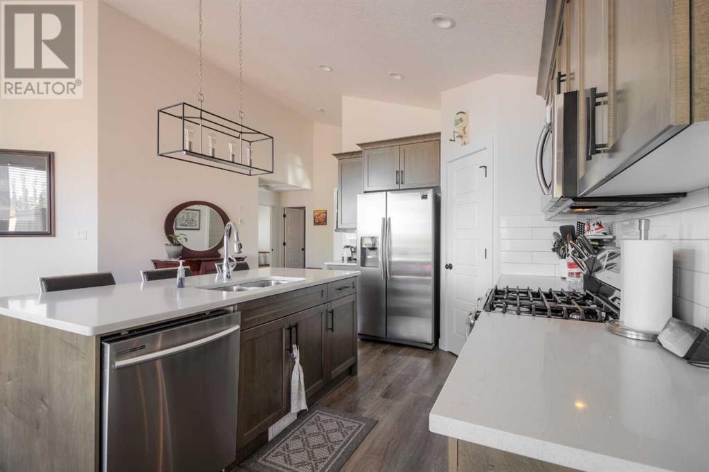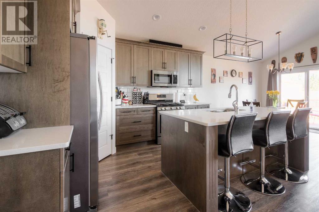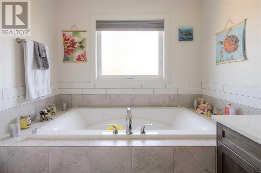 Welcome to this move-in ready bungalow home located in the charming community of Coalhurst. As you step inside, you'll immediately notice the bright and spacious main floor, accentuated by a large foyer entrance, creating a welcoming atmosphere. The kitchen is a true highlight, seamlessly open to the living and dining area, making it an ideal space for entertaining and everyday living. It boasts a large island, quartz counters, corner pantry, stainless steel appliances, and a gas range, catering to the needs of aspiring chefs and providing a modern and functional culinary space. The primary bedroom is impressively spacious and offers a walk-in closet, ensuring ample storage for your wardrobe. The attached ensuite is a luxurious spa-like retreat, featuring a large vanity with dual sinks and plenty of counter space, a shower, and large jetted tub, providing the perfect setting for relaxation and rejuvenation. An additional bedroom on the main floor provides flexibility and convenience, while a full bathroom and a convenient laundry room complete the main level, ensuring comfort and practicality.Heading downstairs, the basement reveals a huge family room with a corner gas fireplace, creating a cozy ambiance and offering plenty of space for activities such as a pool table or a home theater setup. Two additional bedrooms in the basement provide versatility and ample closet space, while a full bathroom and storage area add functionality and convenience.Outside, the property is nicely landscaped, with the backyard featuring a deck with added bamboo privacy walls, which not only offer seclusion but also help mitigate strong winds. Extra storage can be found under the deck, maximizing space utilization. The sides of the home are finished with AstroTurf, providing a low-maintenance and visually appealing solution. The front yard showcases great curb appeal, with stonework designated for garbage bins, making it easy to roll them out for collection. There is a built in vac s ystem, A/C, and heated double attached garage making the home very comfortable!Located near a park, this home offers an amazing location for families to enjoy outdoor activities. Coalhurst itself is a beautiful and quiet community, just a short drive from downtown Lethbridge, ensuring convenience and access to a range of amenities.In summary, this move-in ready bungalow home offers a combination of comfort, style, and practicality. With its well-designed interior, impressive primary suite, spacious basement, and appealing outdoor features, this property presents an excellent opportunity for those seeking a delightful family home in the desirable community of Coalhurst. (id:22211)