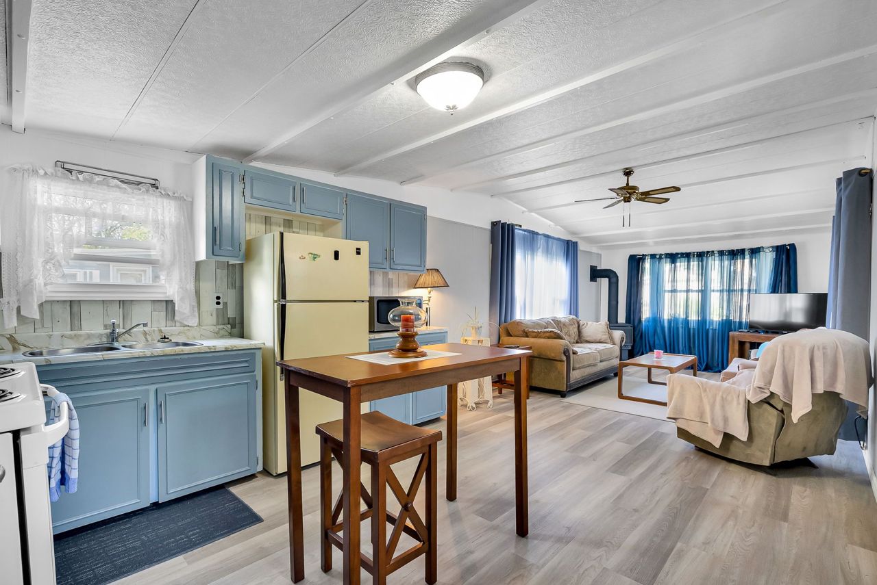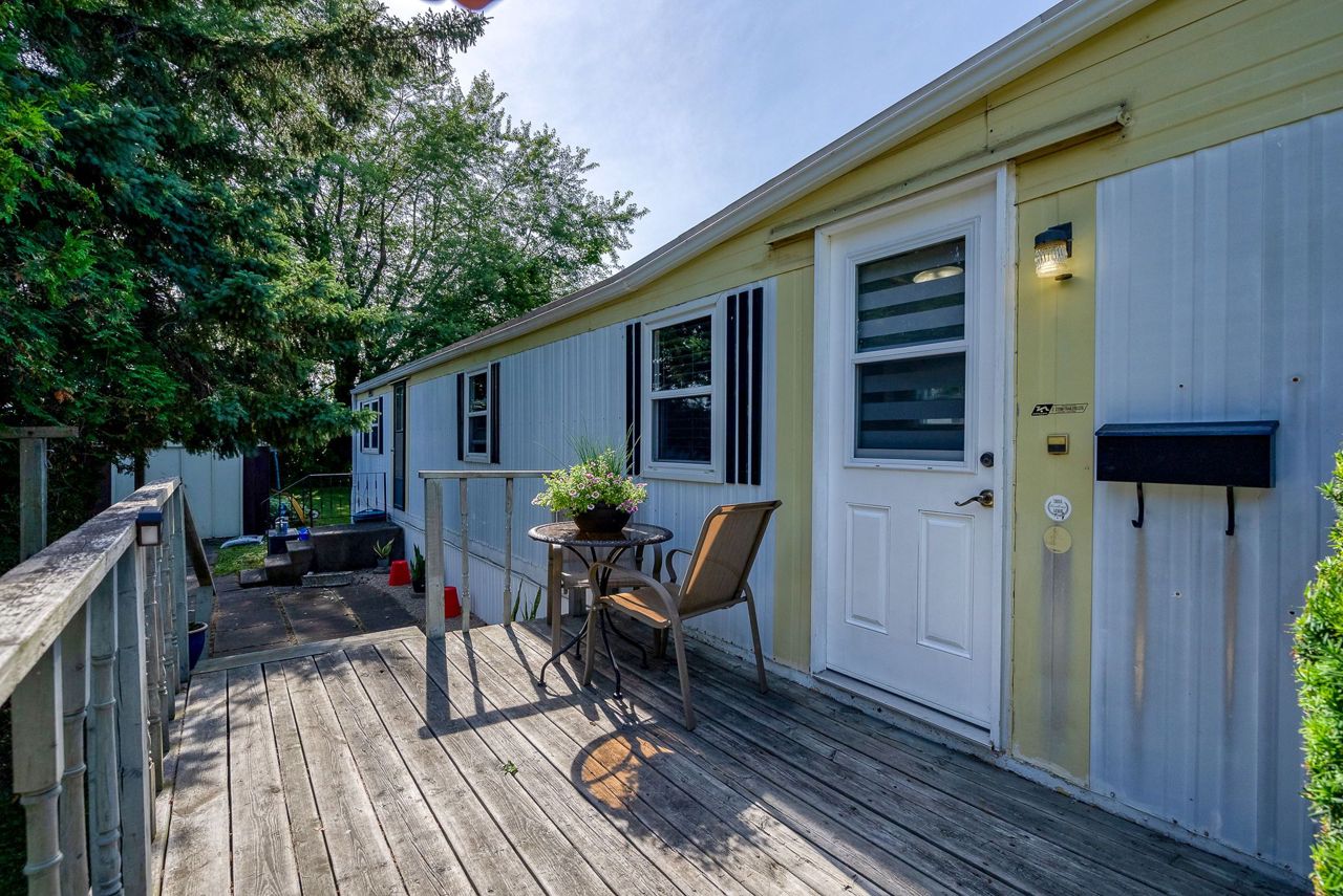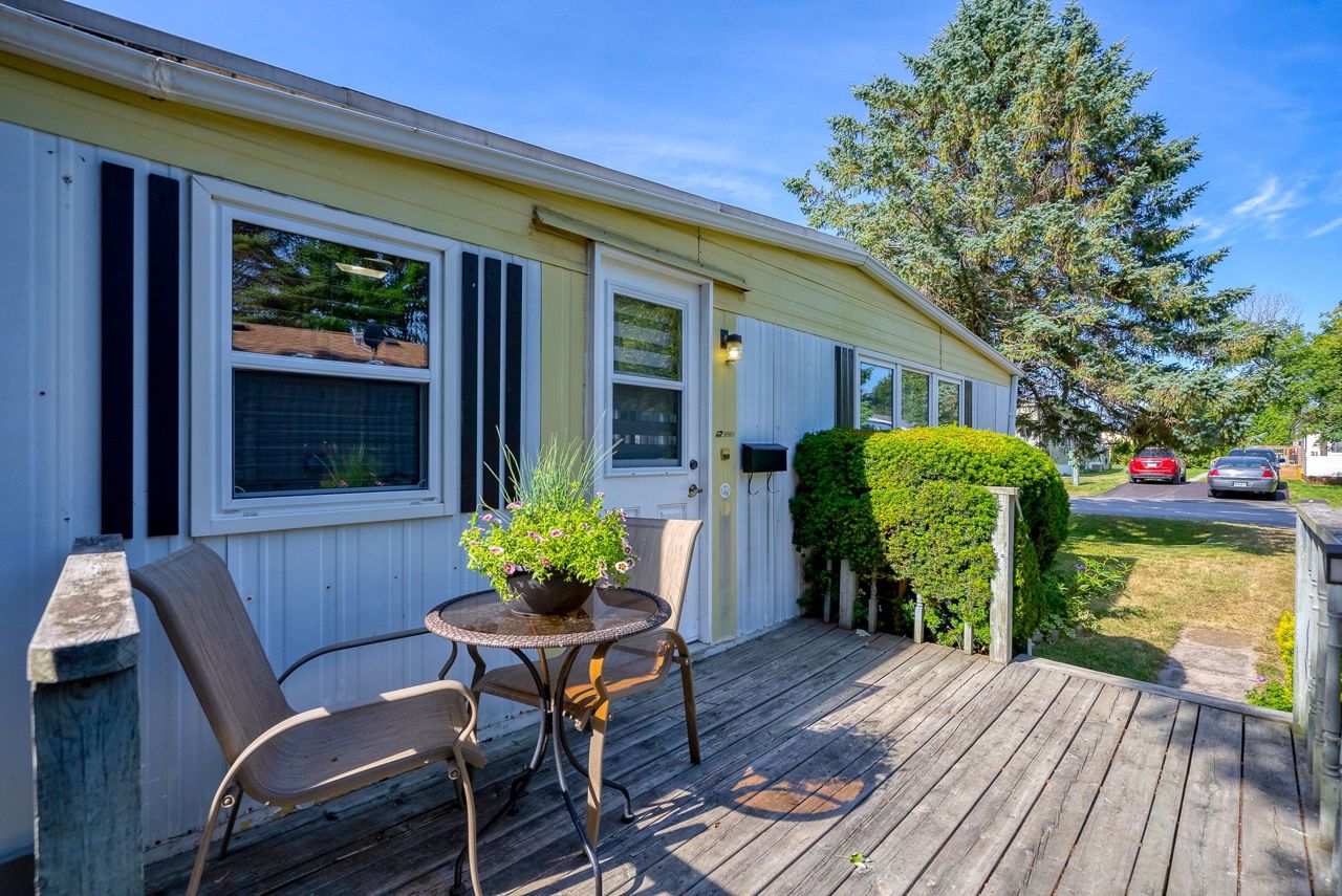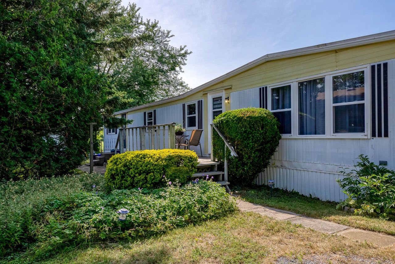 2 Bedroom mobile 12x62. Open concept kitchen and living room with corner free standing gas stove and laminate flooring. Renovated 4pc bath. Primary bedroom was once 2 bedrooms. Attached 8x12 deck. Lot 50x150. Private backyard back onto farmers fields. Shows well, move in condition.Model-Northlander manufacturer. C. Stom Trailers Ltd. Exeter Ontario. Serial NO. 45652197 (Township of Hamilton)