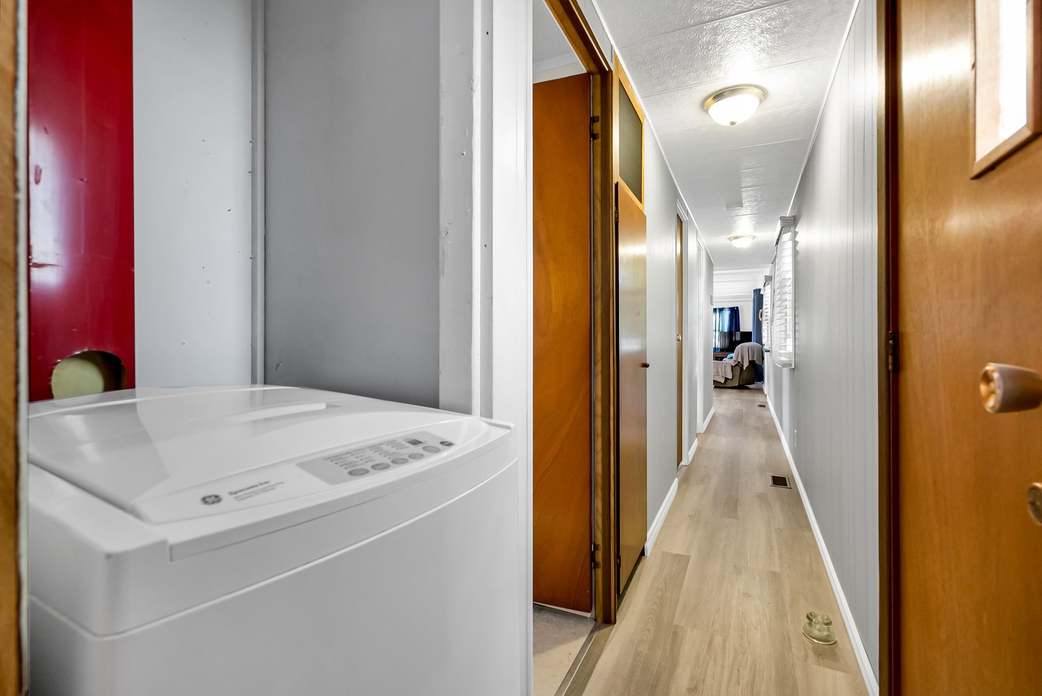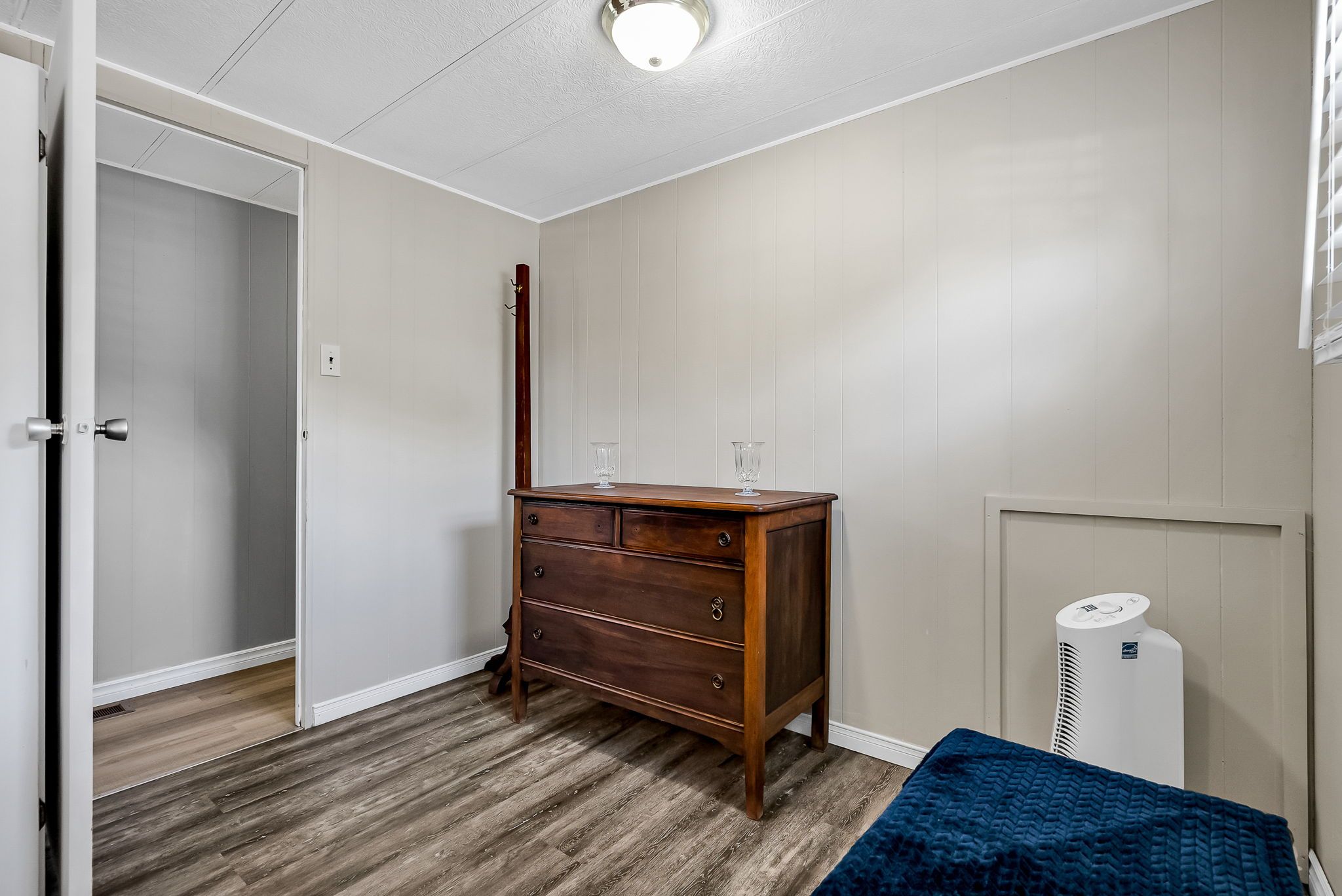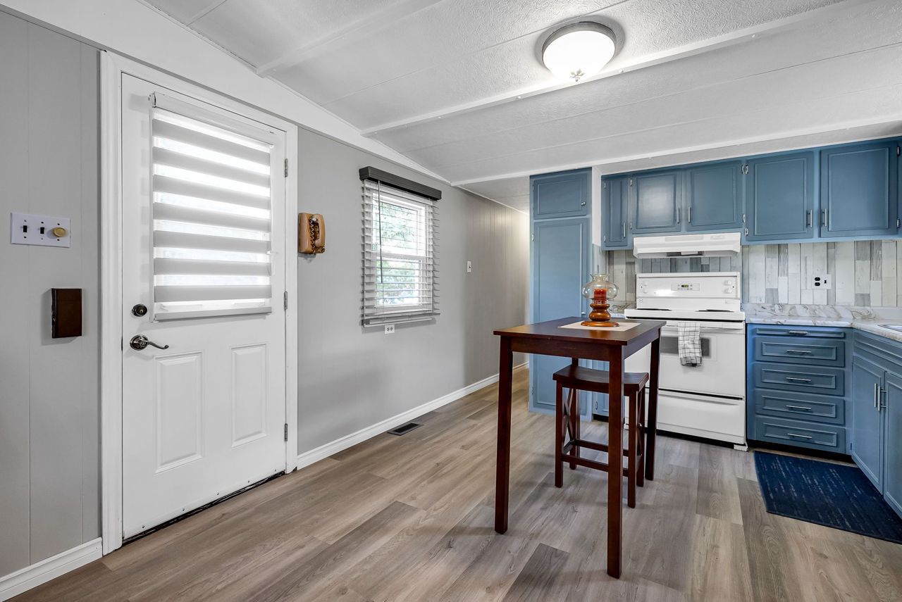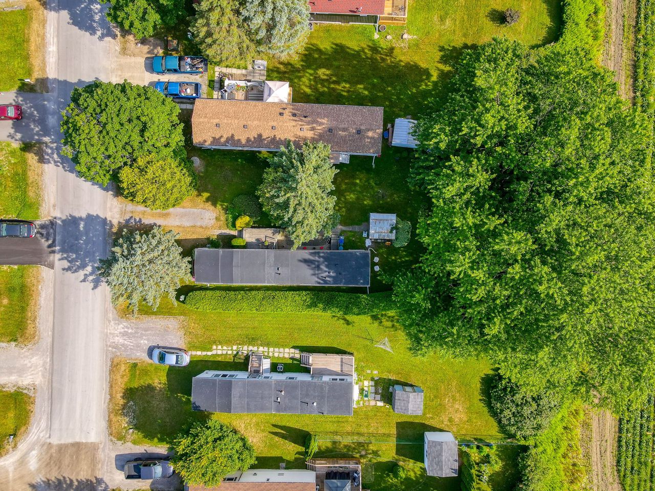 2 Bedroom mobile 12x62. Open concept kitchen and living room with corner free standing gas stove and laminate flooring. Renovated 4pc bath. Primary bedroom was once 2 bedrooms. Attached 8x12 deck. Lot 50x150. Private backyard back onto farmers fields. Shows well, move in condition.Model-Northlander manufacturer. C. Stom Trailers Ltd. Exeter Ontario. Serial NO. 45652197 (Township of Hamilton)