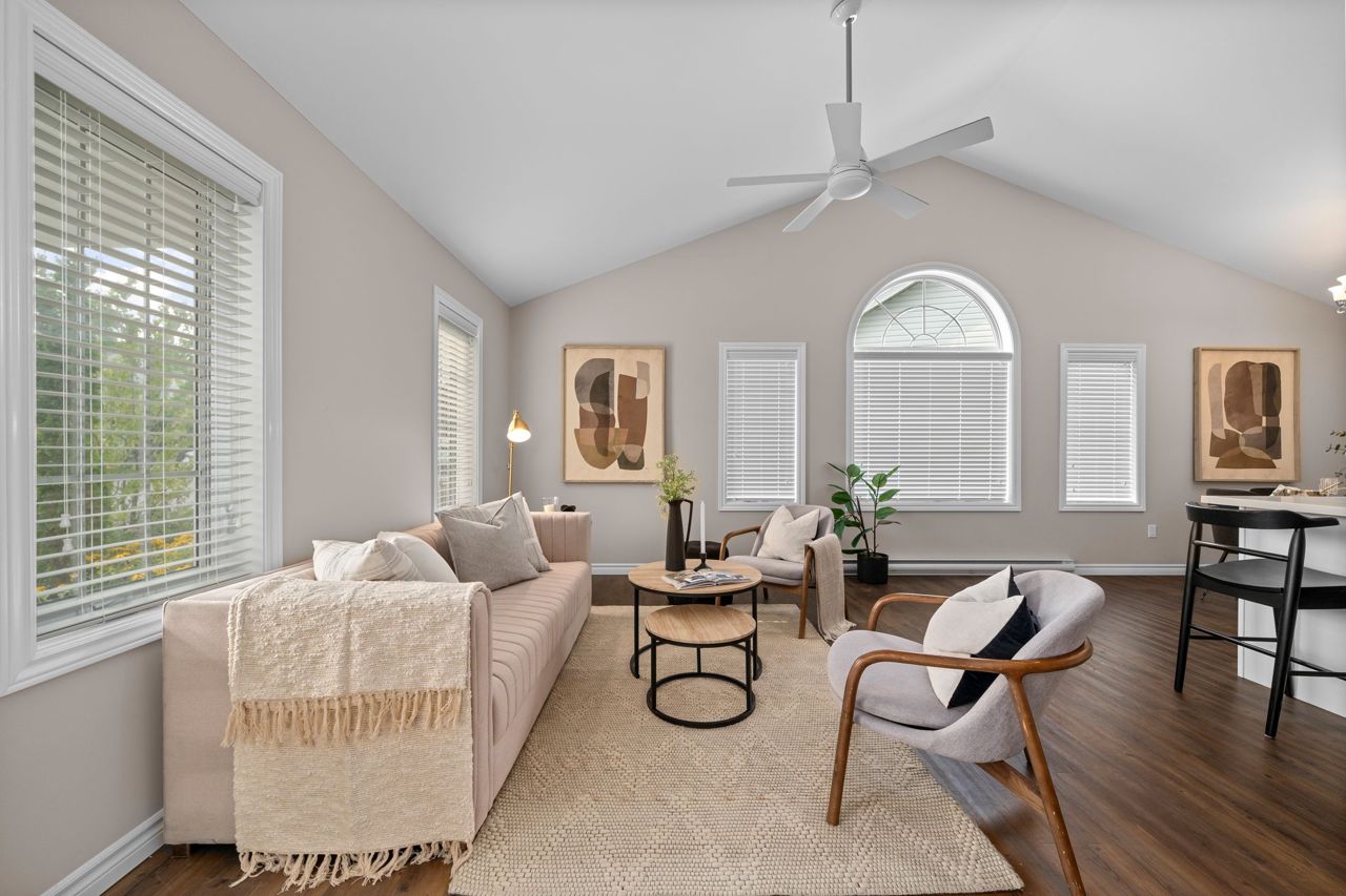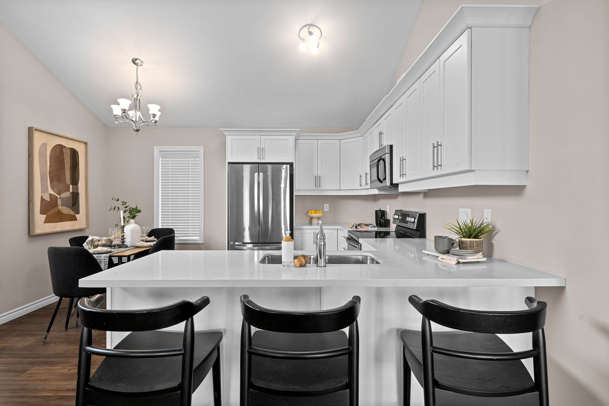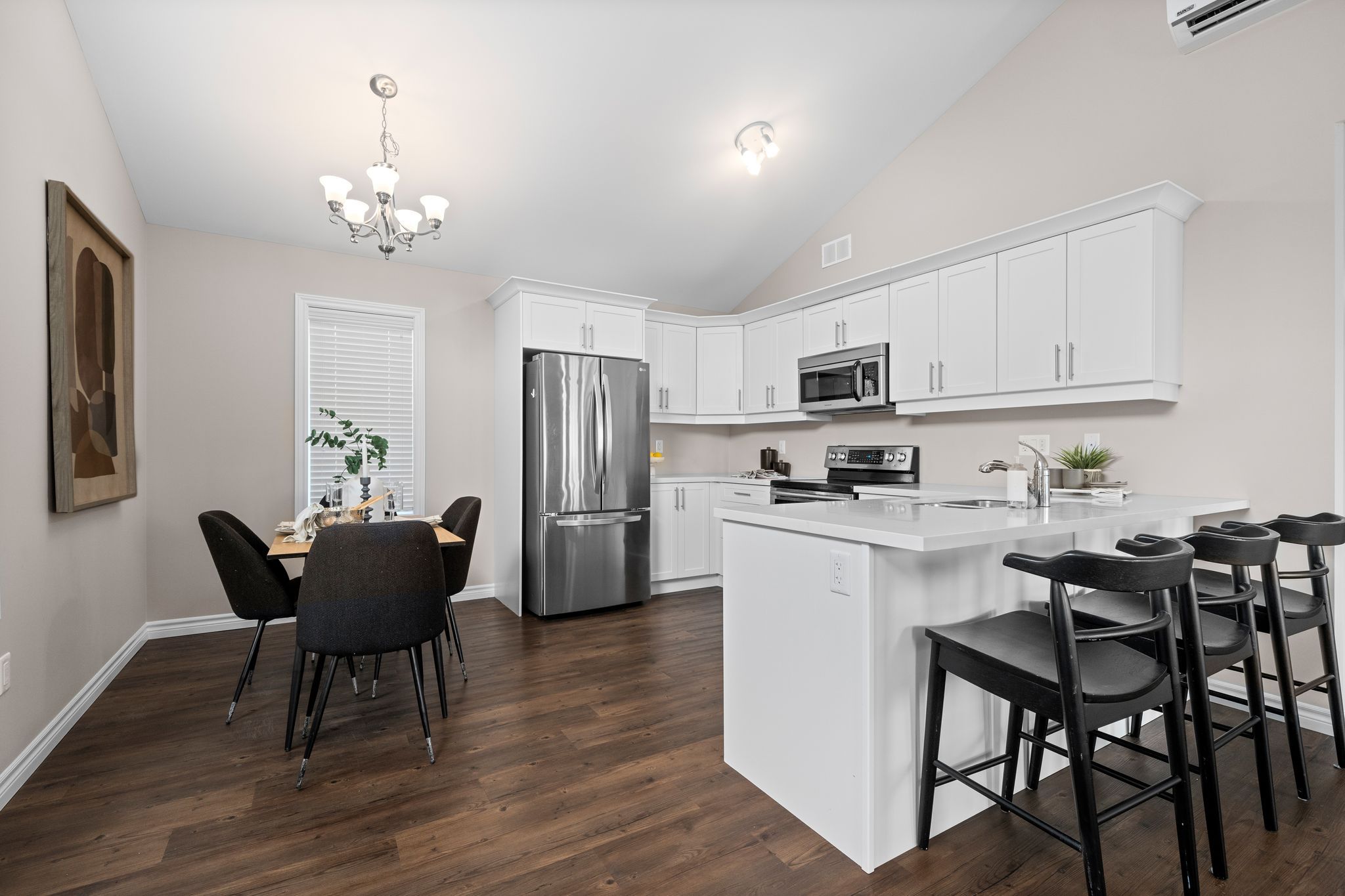 A show stopping condo with 2 beds, 2 baths and 2 parking spaces located in a convenient Cobourg location! Close to shops, schools, highway 401 & amenities this unit offers a move-in ready ownership package with immediate possession available. East-West exposure offers a sun filled, open concept floor plan which features vaulted ceilings in the living room, a spacious dinette and a functional kitchen with full appliance package & quartz counters. Low maintenance laminate flooring throughout, a generous size bedrooms as well as a 3pc. and 2pc bath. The oversize utility room allows for in-house storage or a small office space in addition to in-suite laundry. Air conditioning, efficient electric heating, a quiet front porch and much more.
