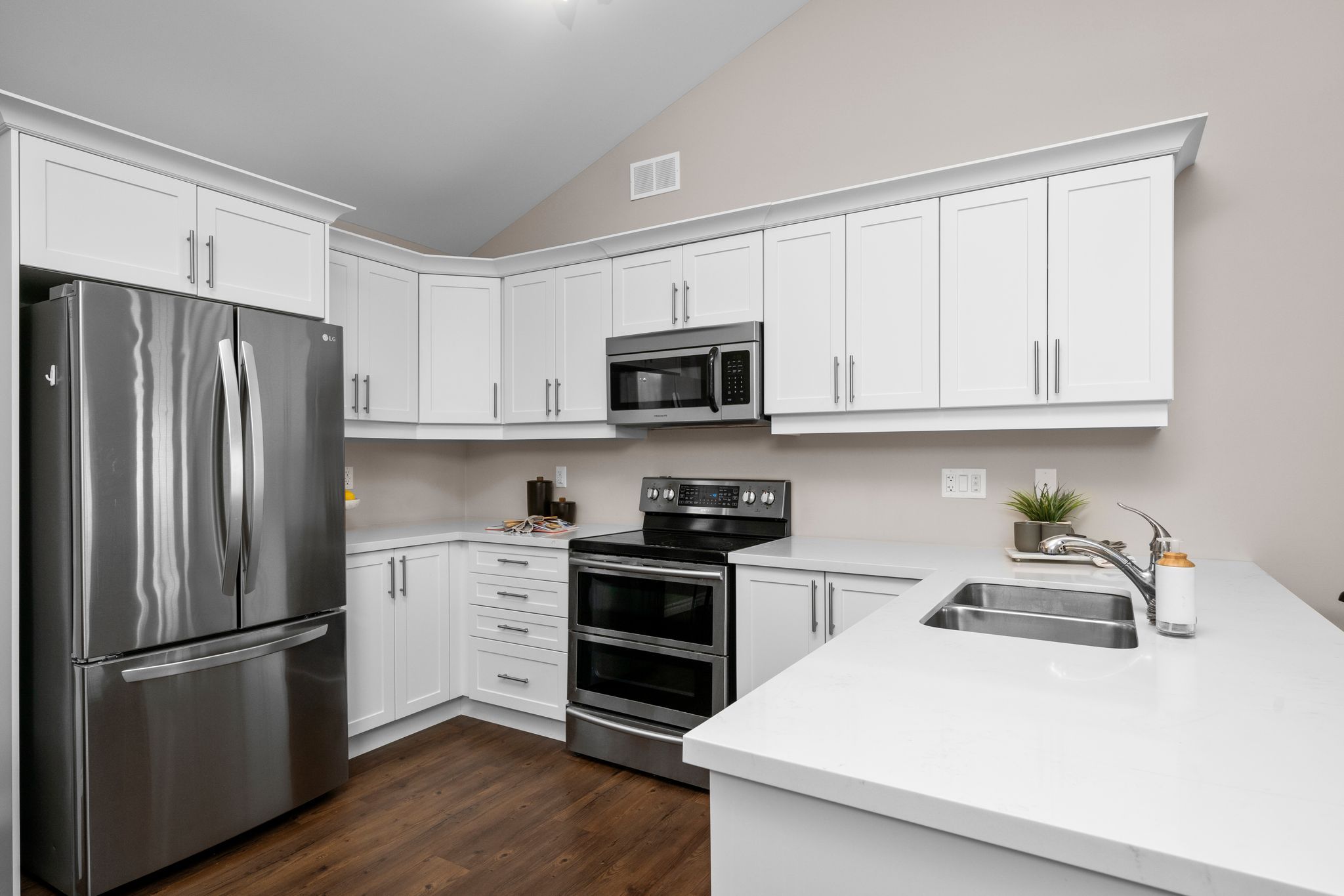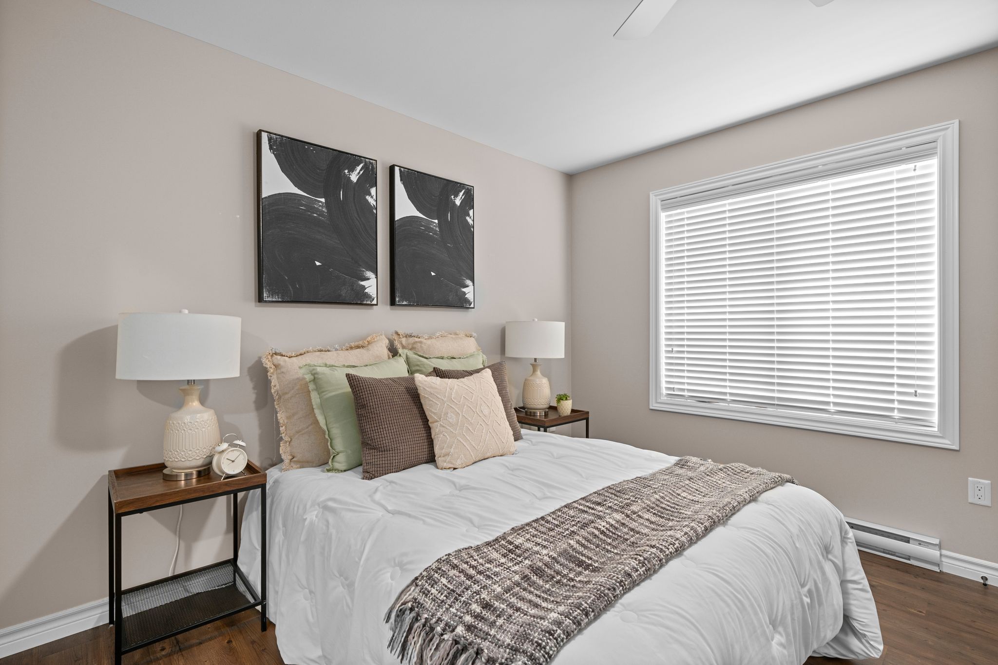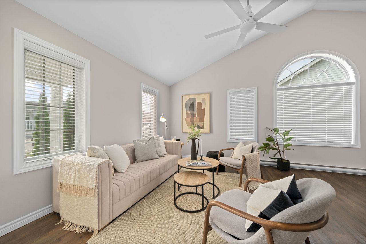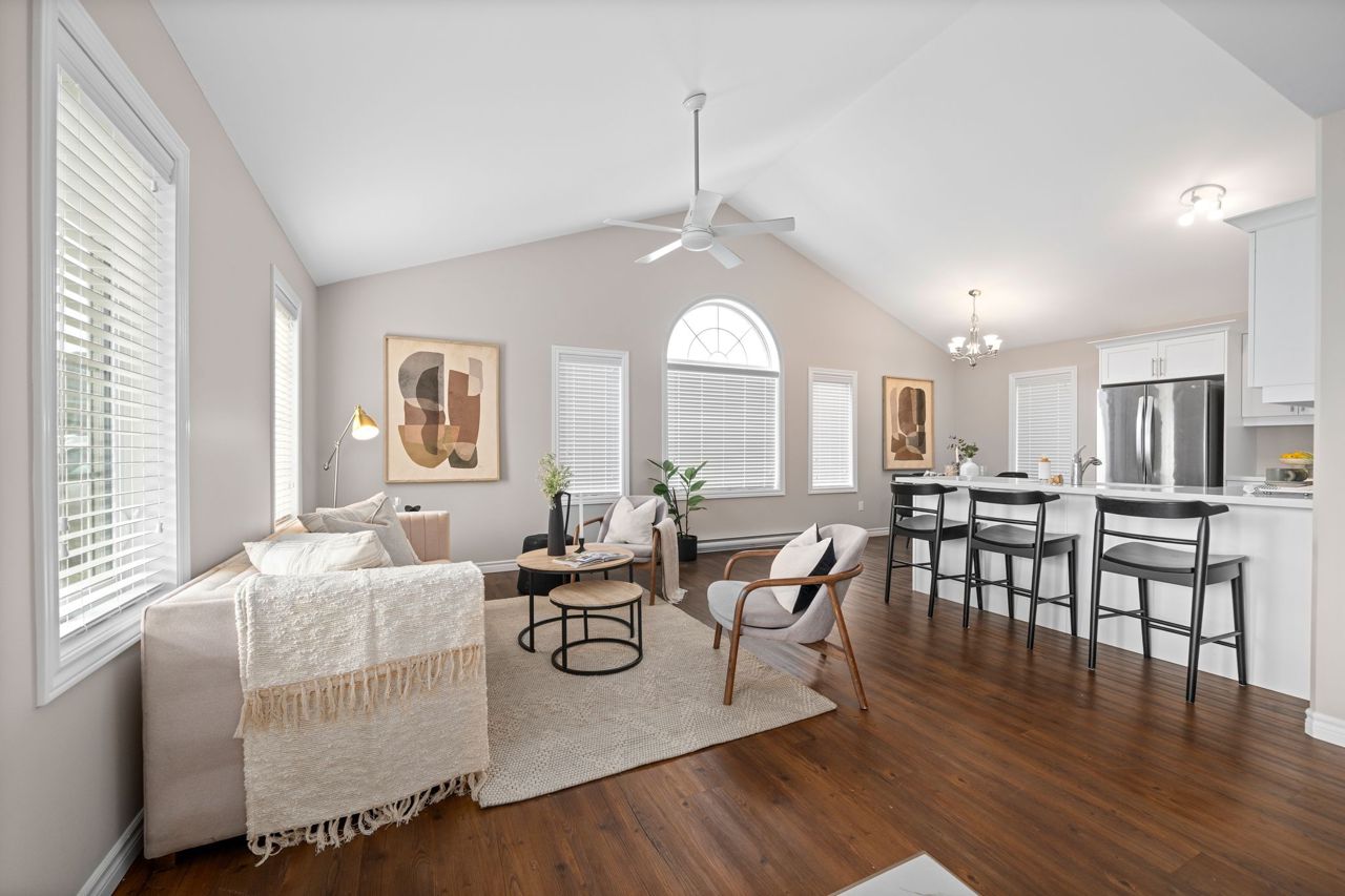 A show stopping condo with 2 beds, 2 baths and 2 parking spaces located in a convenient Cobourg location! Close to shops, schools, highway 401 & amenities this unit offers a move-in ready ownership package with immediate possession available. East-West exposure offers a sun filled, open concept floor plan which features vaulted ceilings in the living room, a spacious dinette and a functional kitchen with full appliance package & quartz counters. Low maintenance laminate flooring throughout, a generous size bedrooms as well as a 3pc. and 2pc bath. The oversize utility room allows for in-house storage or a small office space in addition to in-suite laundry. Air conditioning, efficient electric heating, a quiet front porch and much more.