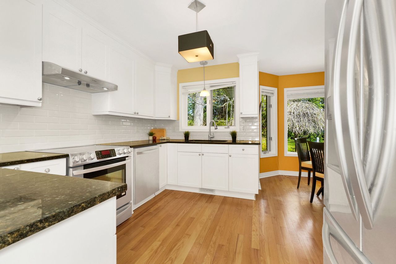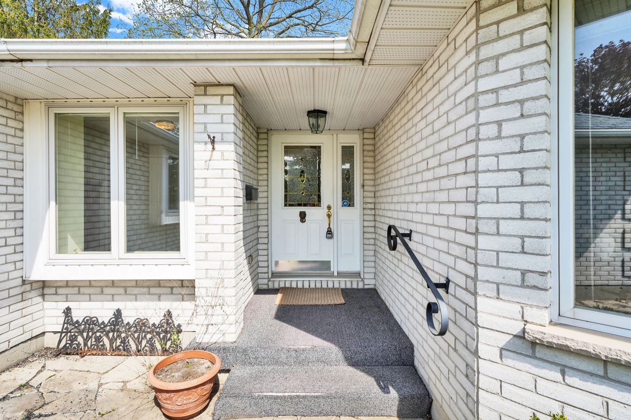 Conveniently located in the heart of Cobourg, this well-appointed bungalow offers a main-floor primary suite and a sprawling private backyard. A spacious sun-soaked front living room showcases hardwood flooring that runs throughout, bay window area, and recessed lighting. The kitchen offers subway tile backsplash, stone countertops, built-in stainless-steel appliances, and dining area connecting to the cozy family room with fireplace and walkout to the back deck ideal for summer BBQs. The sizeable primary suite with a walkout to the private deck, perfect for enjoying coffee in the morning, a walk-in closet, and an ensuite. Completing the level are two additional bedrooms, a full bathroom, and convenient main-floor laundry. The open lower-level rec room has a fireplace and room for a games area and office space or play space. Enjoy a private park-like setting in the fenced backyard surrounded by mature trees and landscaping.Ideally situated close to amenities and within easy access to the 401, this home is a must-see!