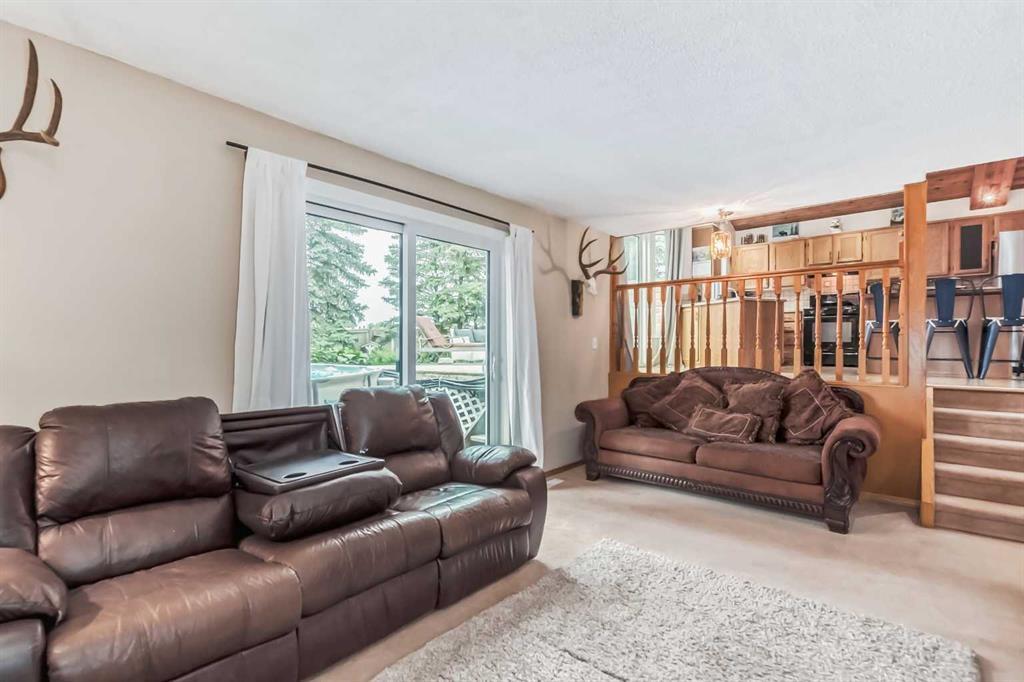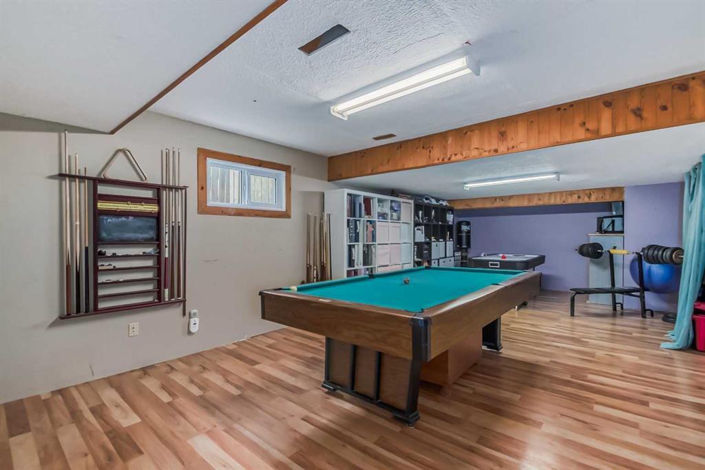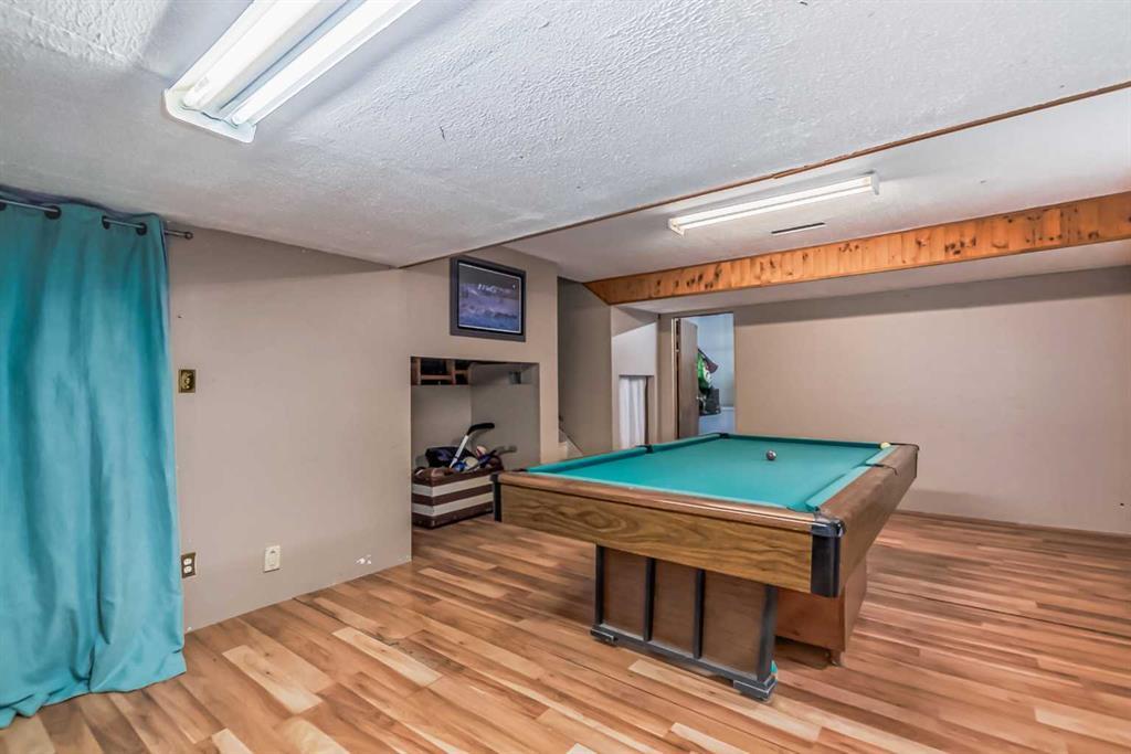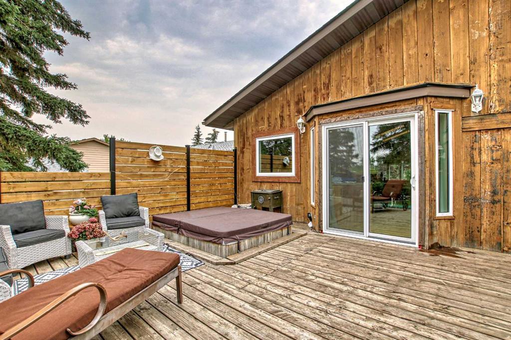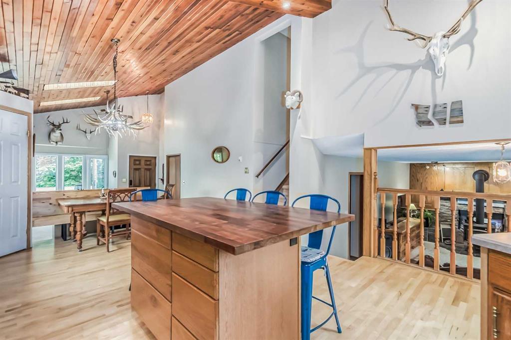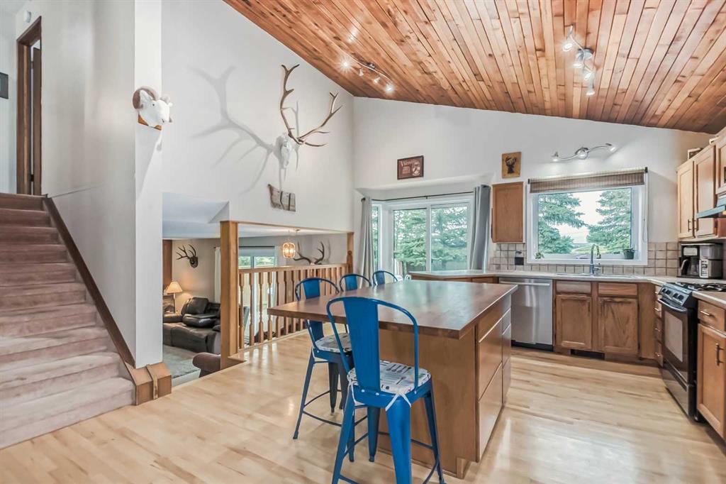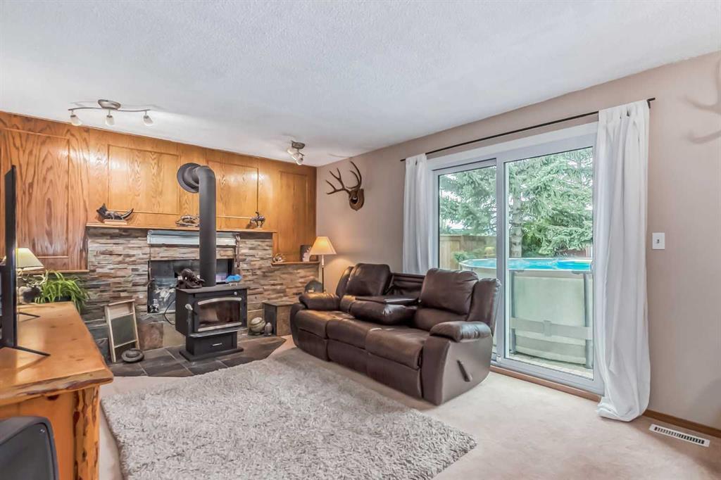 Welcome to 112 Glenhill Drive, and an amazing opportunity to own in the very desirable neighborhood of Glenbow, close to schools and walking paths, and just a short walk to the Bow River. This charming detached home with tons of character has double garage, just under 1800 sq ft and a further 436 sq ft in the finished basement and is set on a large lot with mature trees and plenty of potential. You will notice the original features of this home as soon as you walk through the front door, such as the wood plank ceiling which continues the length of the main level. The bay window at the front lets in lots of light into the open plan living, dining and large kitchen area, with island and views into the private back yard. Down to the snug area, with cozy wood burning stove and doors to the back yard, with hot tub! Up stairs you will find the primary bedroom, and a further 2 good sized bedrooms, and 4-piece bathroom. Down to the lower level you will find the office, mudroom and 3-piece bathroom and the basement finishes off the interior of this home, with large rec room (pool table included). The owners have recently added new windows and roof to this amazing property. The community of Glenbow is just minutes to the main highway, with Calgary to the East and Canmore and the mountains to the West, Properties like this don’t come to market very often, book your showing today! (id:22211)