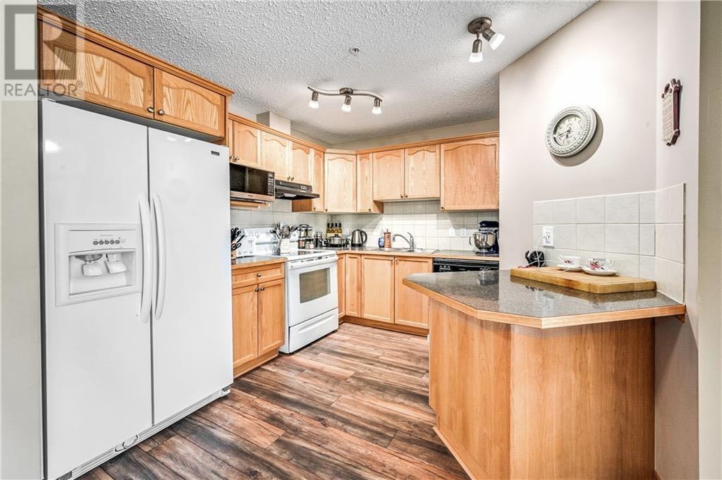"Welcome to this delightful two-bedroom, two-bathroom condo nestled in the heart of Cochrane. This sun-soaked south-facing residence boasts an inviting layout and a cozy ambiance, featuring a well-appointed kitchen, in-suite laundry for your convenience, two generously-sized bedrooms with walk-in closets (one of which includes a luxurious 4-piece ensuite), an additional full bath, and a spacious living area.This condo offers several desirable features, including a grand entrance, ample windows that flood the space with natural light, a roomy dining area, a charming corner gas fireplace, in-floor heating, and refreshing air conditioning for year-round comfort.Additionally, the unit comes complete with underground heated parking, ensuring your vehicle is protected from the elements. Plus, you'll appreciate the prime location that allows you to walk to all that Cochrane has to offer.Location, location, location – this opportunity should not be missed! (id:22211)