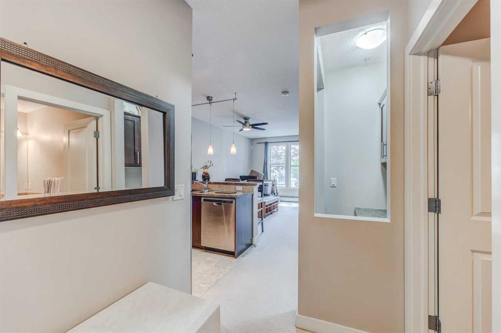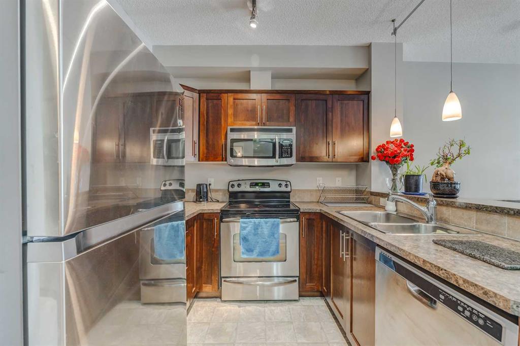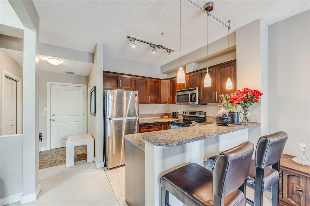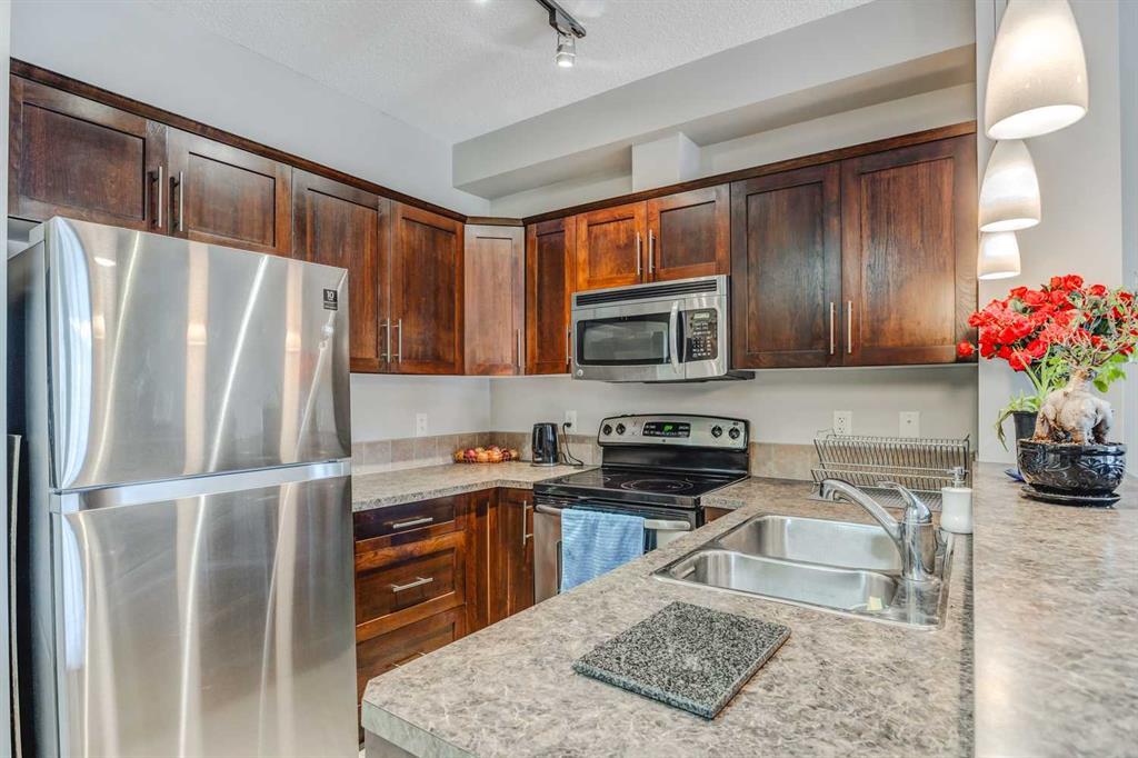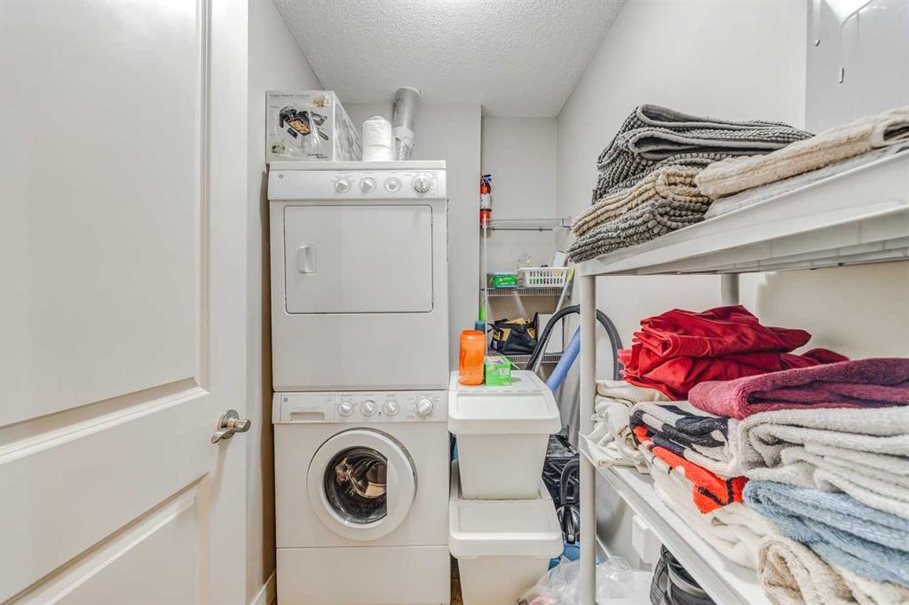 WOW! South facing ground floor unit in one of the nicest developments in Cochrane! This 1 bedroom, 1 bath has it all; open plan, huge walk in closet, in suite washer dryer, in suite storage, TITLED UNDERGROUND PARKING with storage in front, and sunny south facing patio. Very few 1 bedroom units in this fabulous development have titled underground parking and not only that, it is one of the best parking locations in the garage. Add in gym, separate enclosed garbage building [no odor!] and LOW condo fee that includes heat and you have unbeatable value! Cochrane is fast becoming one of the most desirable areas and Sunset is truly a gem of a community. Small town lifestyle and an affordable price, GREAT investment! (id:22211)