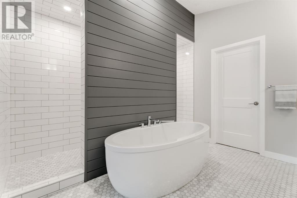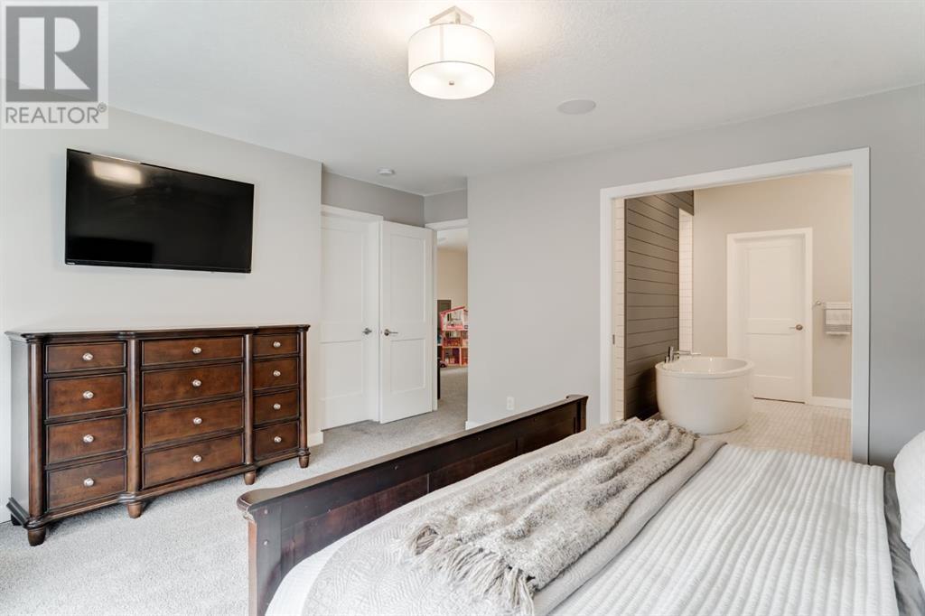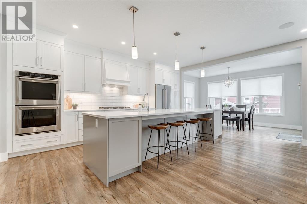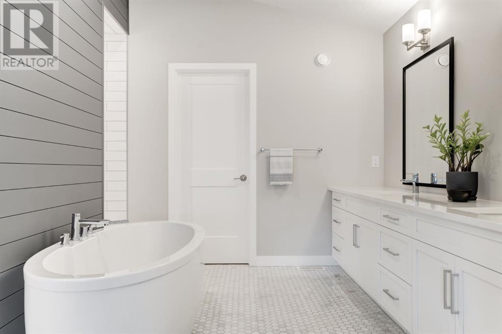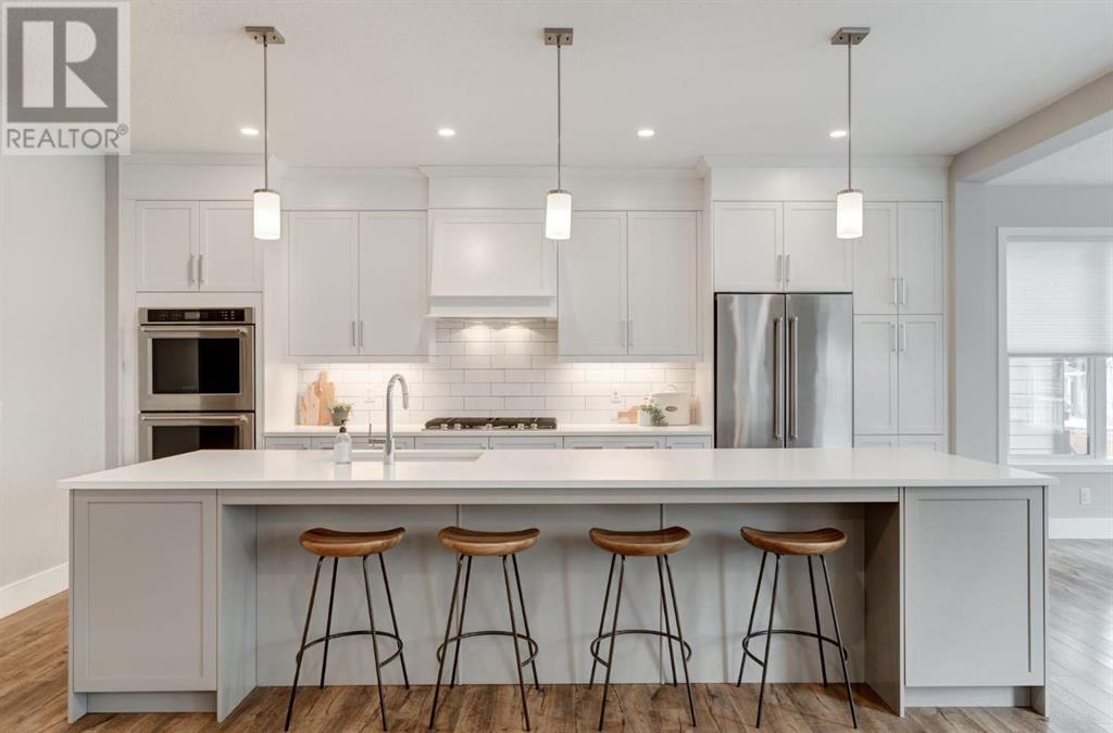 Introducing your dream home! This custom built home by Jayman is located in the picturesque community of Riviera, nestled along the Bow River with pathways, parks, and close by amenities including the Spray Lakes Recreational Facility. Inside you’ll quickly discover the thoughtful design and attention to detail the home owners took when building. As you walk into the massive entry way, you’re greeted with plenty of natural light that floods in from the open floor plan, 9’ doors and a neutral colour palette perfect for any style. The mud room offers custom locker cabinetry with plenty of storage space to say goodbye to clutter and mess. Tucked away is a large powder room with quartz counter tops and upgraded vanity. Step up to the open concept main level that hosts a stunning white kitchen with high end appliances; double wall oven, gas stove and covered range hood. The large 12’ island has quartz countertops, built in panelled dishwasher, upgraded microwave oven, pull out drawers and waste bins. A convenient wall pantry ensures that your cooking essentials are always in reach. The sizeable dining room and living area is perfect for those holiday get togethers. Above the living room gas fireplace and throughout the entire house, the televisions have been hard wired to the basement in a vented storage cabinet. Windows span the entire width of the home looking out to the large vinyl wrapped deck with 6’ glass privacy panels on each side and fully landscaped backyard where you can savour the beauty of the outdoors.Upstairs, you’ll find an expansive floor plan that includes a delightful bonus room with vaulted ceilings, built in cabinets and storage benches. The thoughtfully designed functional cabinetry is carried through to the laundry room with pullout hampers, large quartz counter to fold clothes, linen storage as well as upgraded dual washers and pedestal dryer. Both secondary bedrooms have walk-in closets and organizers. The bathroom is designed to allow both kids to get ready at the same time with a pocket door separating the toiler & shower. The primary suite features a custom walk-in closet with windows to let in the natural light, a vaulted spa inspired ensuite with heated tile floors, soaker tub, dual sinks, upgraded cabinetry and extended quartz counter for all your beauty supplies. A walk through shower hosts beautifully designed tiled niches, two rainfall shower heads and a removable wand that gives you the true feeling you’re at the spa.The large unfinished lower level of 997 sq/ft and 9’ ceilings awaits your design inspiration, roughed in for both a full bathroom and wet bar. Additional upgrades include; gas heater in garage, gas line for bbq, central AC, SONOs speaker system throughout, Gemstone lights, cordless pull down blinds and black out blinds in bedrooms. Please inquire for a comprehensive list of all features and upgrades to this stunning home. (id:22211)