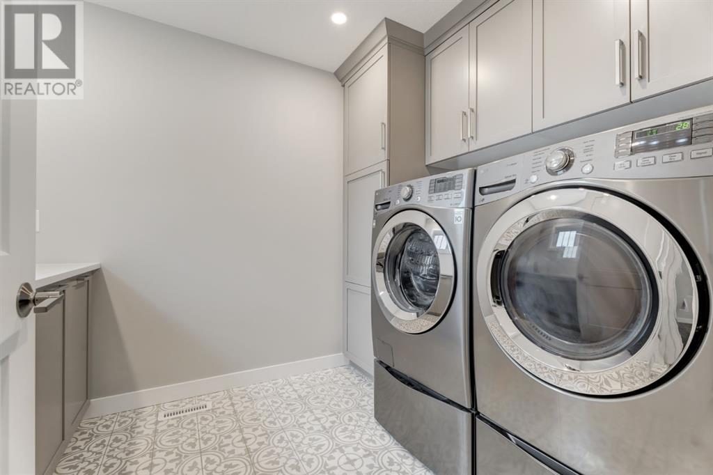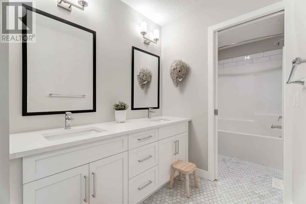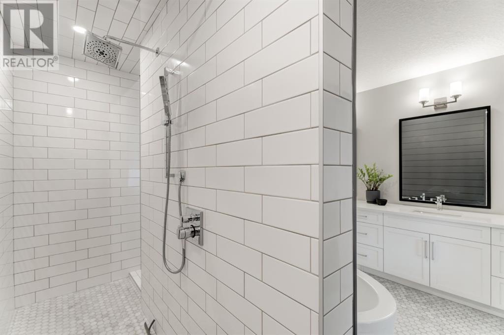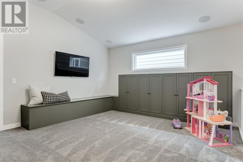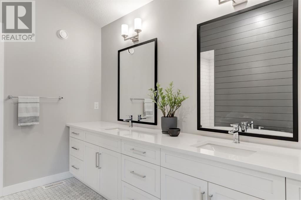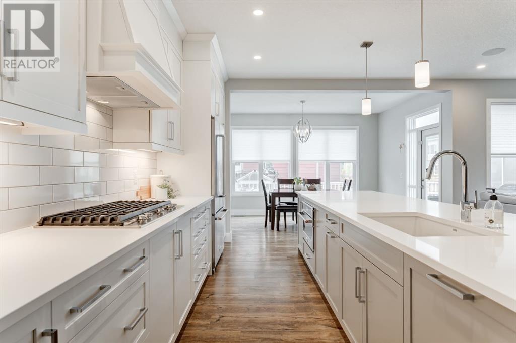 Introducing your dream home! This custom built home by Jayman is located in the picturesque community of Riviera, nestled along the Bow River with pathways, parks, and close by amenities including the Spray Lakes Recreational Facility. Inside you’ll quickly discover the thoughtful design and attention to detail the home owners took when building. As you walk into the massive entry way, you’re greeted with plenty of natural light that floods in from the open floor plan, 9’ doors and a neutral colour palette perfect for any style. The mud room offers custom locker cabinetry with plenty of storage space to say goodbye to clutter and mess. Tucked away is a large powder room with quartz counter tops and upgraded vanity. Step up to the open concept main level that hosts a stunning white kitchen with high end appliances; double wall oven, gas stove and covered range hood. The large 12’ island has quartz countertops, built in panelled dishwasher, upgraded microwave oven, pull out drawers and waste bins. A convenient wall pantry ensures that your cooking essentials are always in reach. The sizeable dining room and living area is perfect for those holiday get togethers. Above the living room gas fireplace and throughout the entire house, the televisions have been hard wired to the basement in a vented storage cabinet. Windows span the entire width of the home looking out to the large vinyl wrapped deck with 6’ glass privacy panels on each side and fully landscaped backyard where you can savour the beauty of the outdoors.Upstairs, you’ll find an expansive floor plan that includes a delightful bonus room with vaulted ceilings, built in cabinets and storage benches. The thoughtfully designed functional cabinetry is carried through to the laundry room with pullout hampers, large quartz counter to fold clothes, linen storage as well as upgraded dual washers and pedestal dryer. Both secondary bedrooms have walk-in closets and organizers. The bathroom is designed to allow both kids to get ready at the same time with a pocket door separating the toiler & shower. The primary suite features a custom walk-in closet with windows to let in the natural light, a vaulted spa inspired ensuite with heated tile floors, soaker tub, dual sinks, upgraded cabinetry and extended quartz counter for all your beauty supplies. A walk through shower hosts beautifully designed tiled niches, two rainfall shower heads and a removable wand that gives you the true feeling you’re at the spa.The large unfinished lower level of 997 sq/ft and 9’ ceilings awaits your design inspiration, roughed in for both a full bathroom and wet bar. Additional upgrades include; gas heater in garage, gas line for bbq, central AC, SONOs speaker system throughout, Gemstone lights, cordless pull down blinds and black out blinds in bedrooms. Please inquire for a comprehensive list of all features and upgrades to this stunning home. (id:22211)