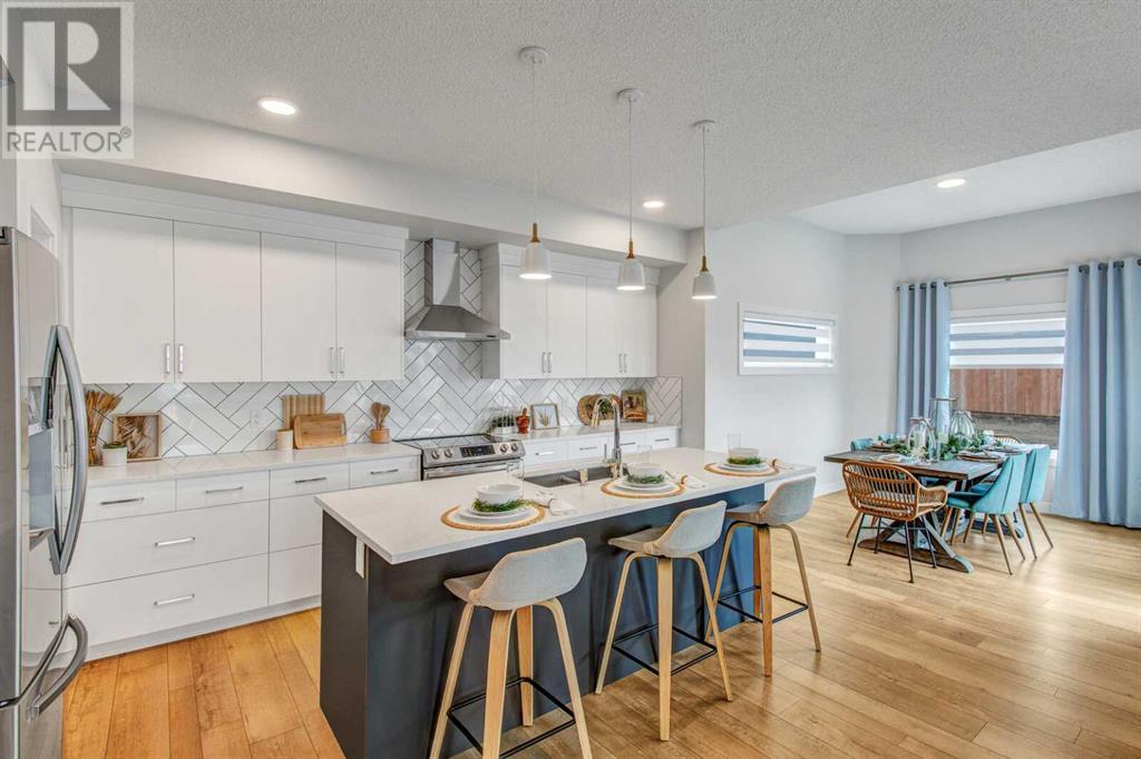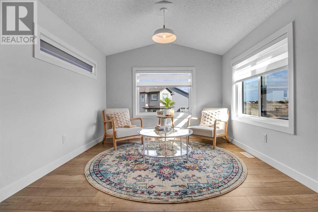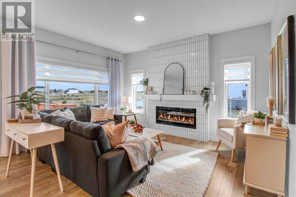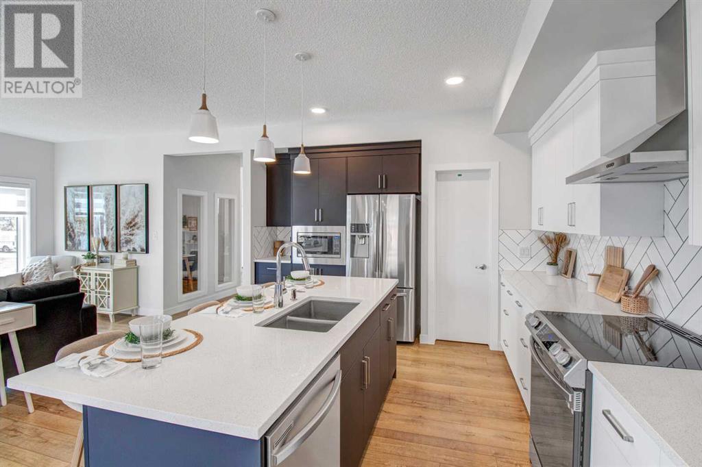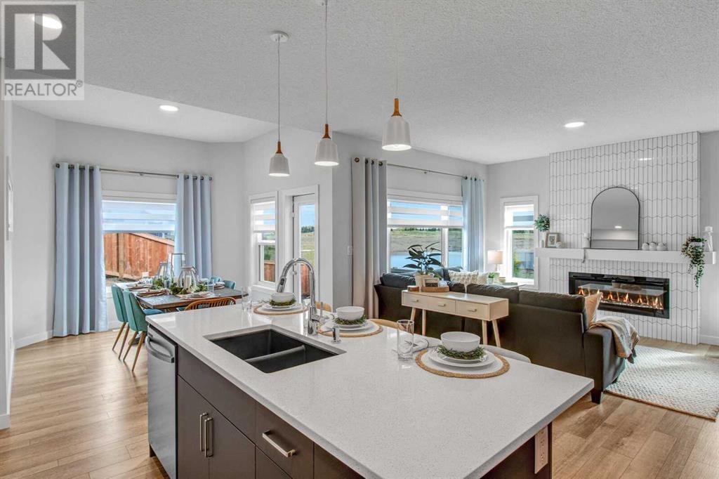 An amazing 3 bedroom + den + bonus room home! As you enter, you'll be greeted by 2 storey high ceilings, abundant metal railings and beautiful luxury vinyl plank flooring! The home office space is conveniently located at the front of the home. The mudroom is connected directly to the massive kitchen pantry so it will be very easy to put the groceries away! The island kitchen design is gorgeous! Lots of upgrades in the kitchen : stone countertops, a chimney hood fan, slim-line lighting, soft close doors and drawers, 2 tone kitchen cabinets, 1 set of pots and pans drawers and pendant lighting. The dining area is massive as is the great room! The great room features a linear fireplace with wrap around mantle. Sliding patio doors in the nook lead you out onto a 168 sf deck! The upper floor features 3 spacious bedrooms and a bonus room. The large primary bedroom has a 90 square foot sitting with vaulted ceiling! Super luxurious! The amazing ensuite has double sinks, gorgeous vinyl tile floors, soaker tub, oversized tiled shower and an entrance to the walk in closet. The upper floor also features laundry space. The basement is unfinished but has high ceilings, plumbing rough ins for a 4th bathroom, a kitchen sink and laundry facilities! The oversized garage has a 8 ft. high garage door. Note: Pictures & virtual tour are of the same model but are not of this exact home. Components may vary. RMS measurements taken from Builder's Blueprints. NO ONE ALLOWED ON SITE WITHOUT BUILDER REPRESENTATIVE PRESENT! (id:22211)
