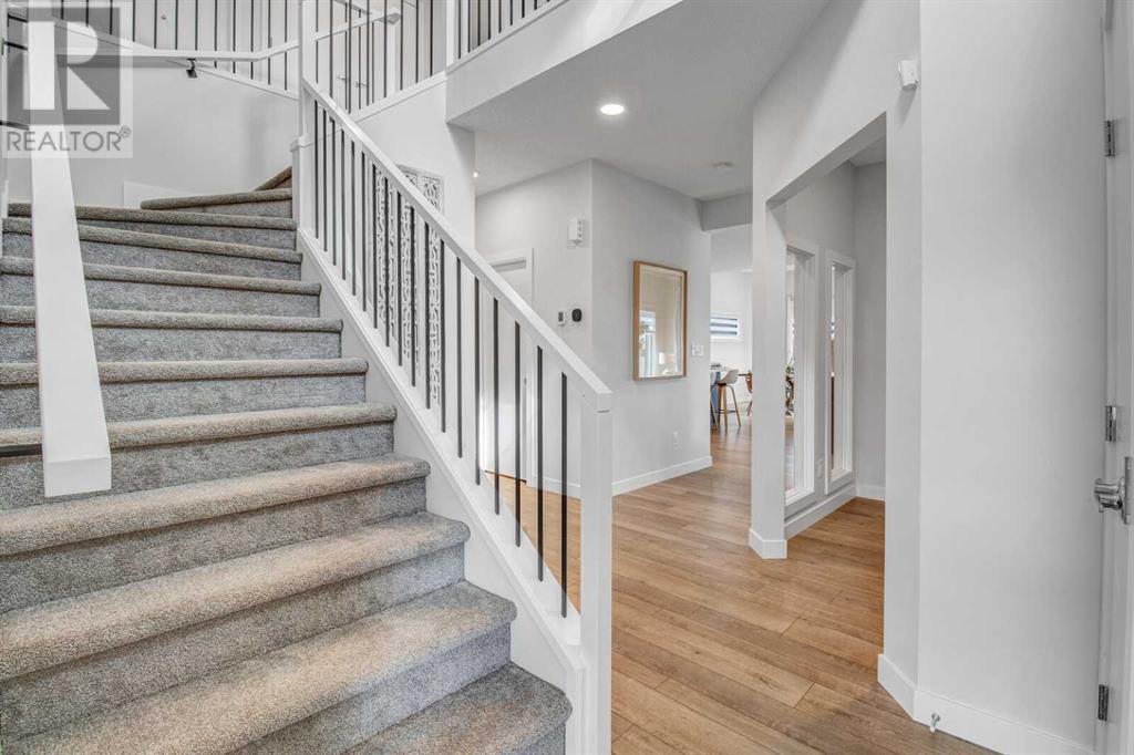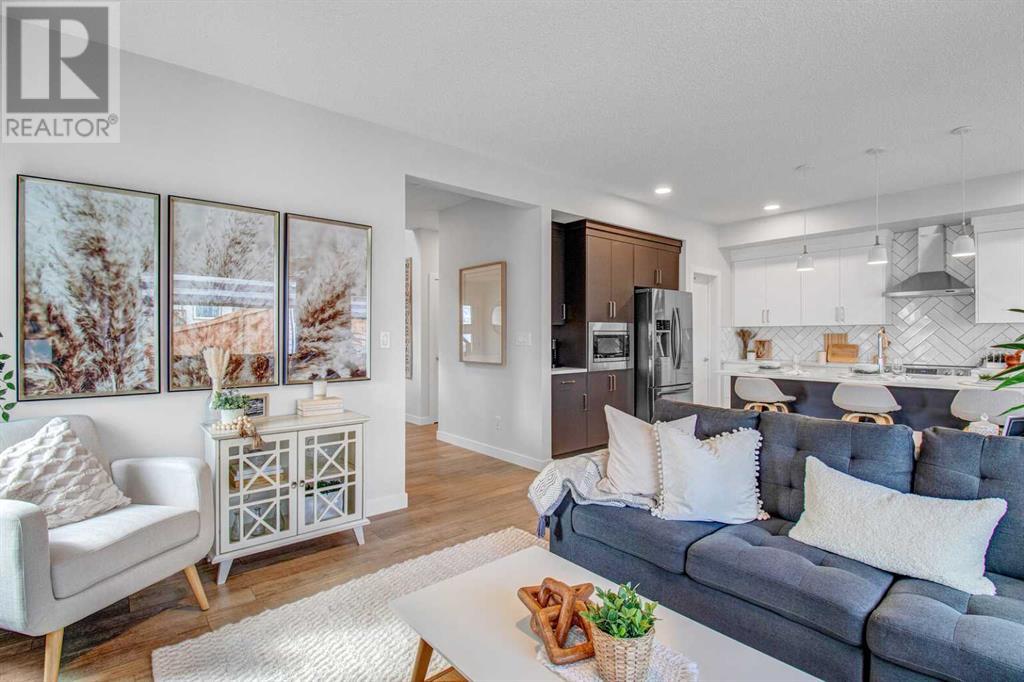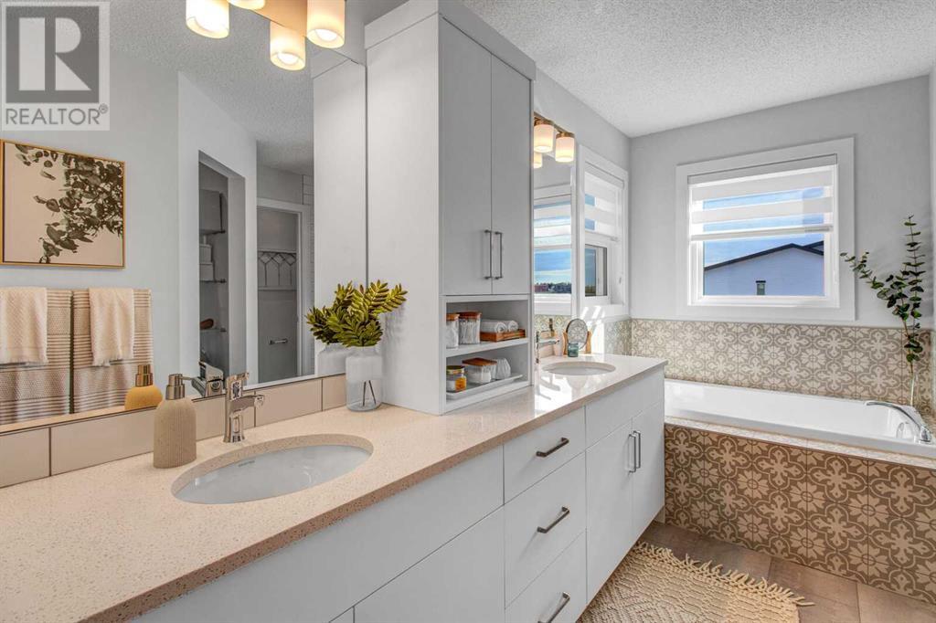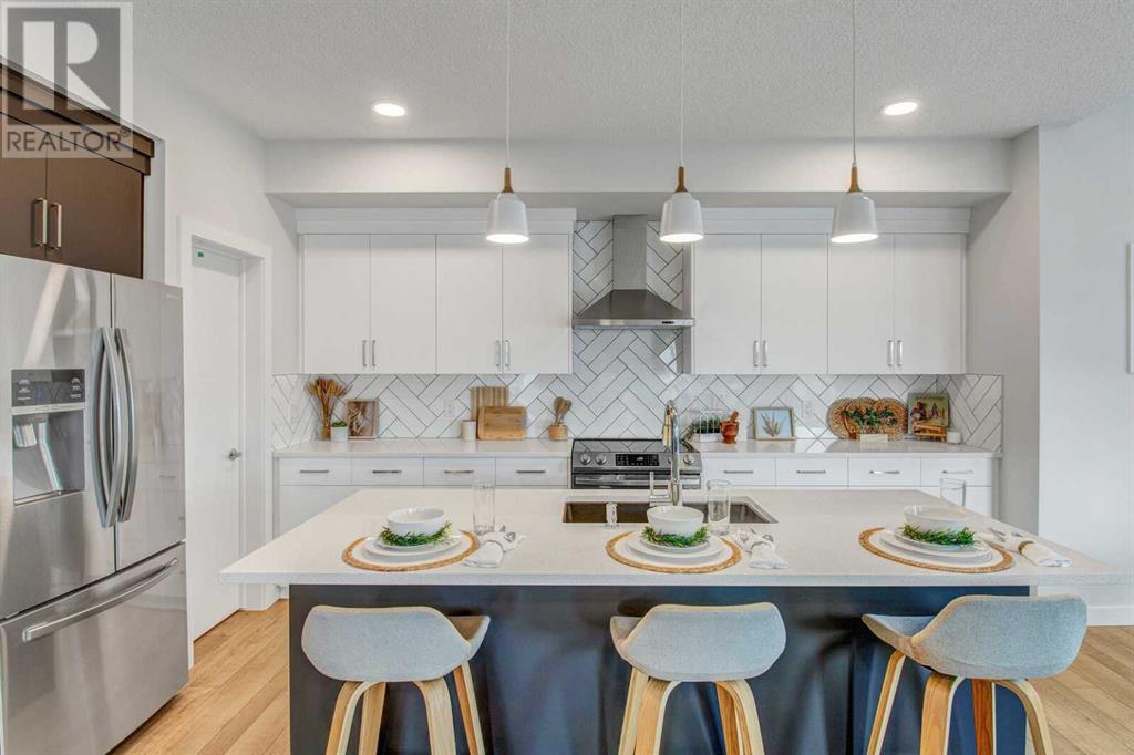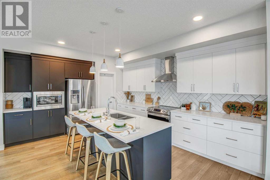An amazing 3 bedroom + den + bonus room home! As you enter, you'll be greeted by 2 storey high ceilings, abundant metal railings and beautiful luxury vinyl plank flooring! The home office space is conveniently located at the front of the home. The mudroom is connected directly to the massive kitchen pantry so it will be very easy to put the groceries away! The island kitchen design is gorgeous! Lots of upgrades in the kitchen : stone countertops, a chimney hood fan, slim-line lighting, soft close doors and drawers, 2 tone kitchen cabinets, 1 set of pots and pans drawers and pendant lighting. The dining area is massive as is the great room! The great room features a linear fireplace with wrap around mantle. Sliding patio doors in the nook lead you out onto a 168 sf deck! The upper floor features 3 spacious bedrooms and a bonus room. The large primary bedroom has a 90 square foot sitting with vaulted ceiling! Super luxurious! The amazing ensuite has double sinks, gorgeous vinyl tile floors, soaker tub, oversized tiled shower and an entrance to the walk in closet. The upper floor also features laundry space. The basement is unfinished but has high ceilings, plumbing rough ins for a 4th bathroom, a kitchen sink and laundry facilities! The oversized garage has a 8 ft. high garage door. Note: Pictures & virtual tour are of the same model but are not of this exact home. Components may vary. RMS measurements taken from Builder's Blueprints. NO ONE ALLOWED ON SITE WITHOUT BUILDER REPRESENTATIVE PRESENT! (id:22211)