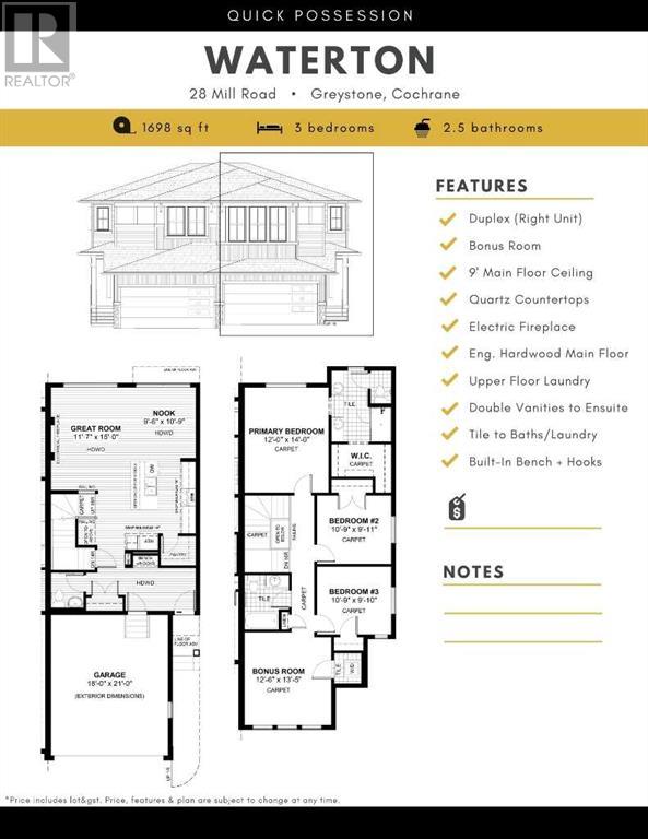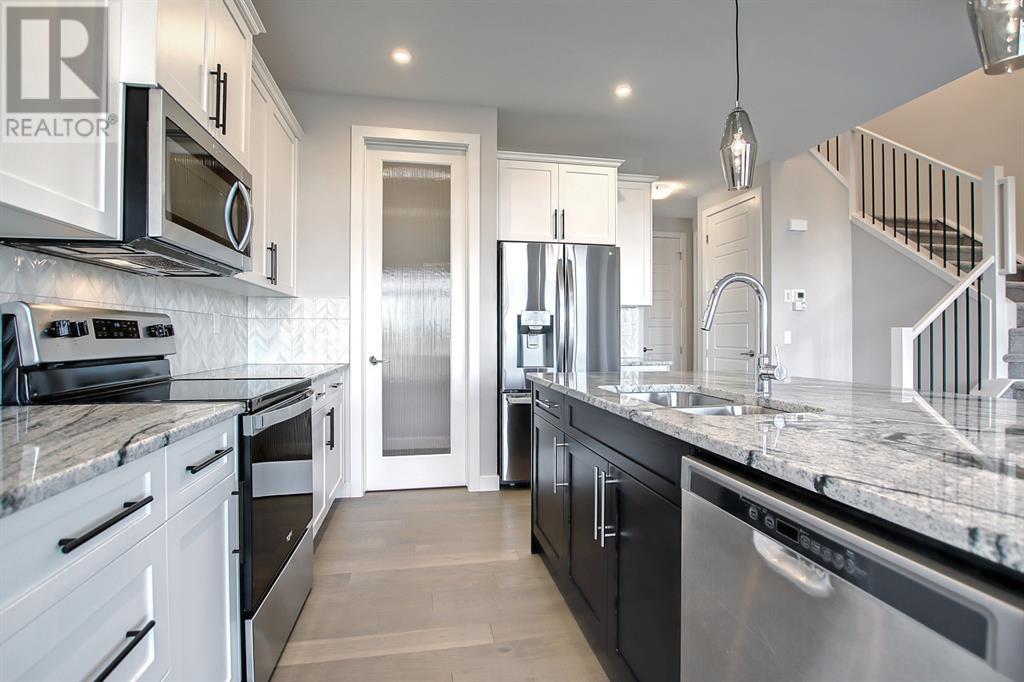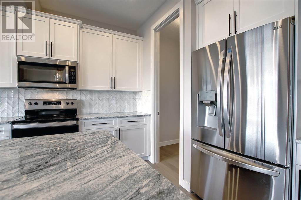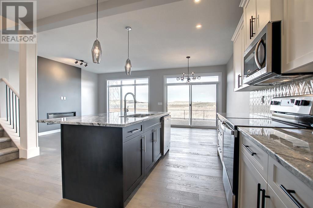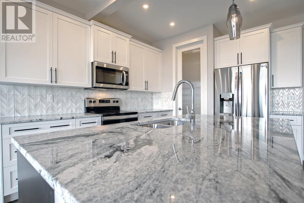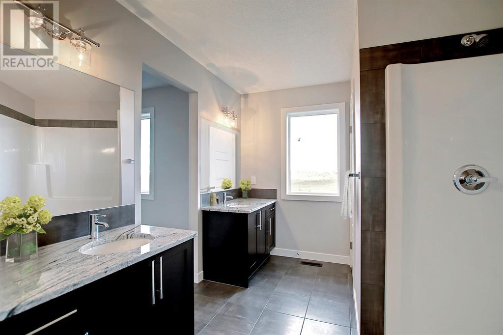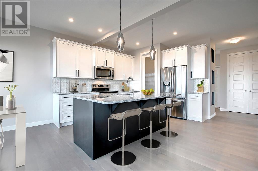 BRAND NEW HOME by Douglas Homes, Master Builder in centrally located Greystone, directly across from a Play Park. Featuring the Waterton with south facing backyard. Located on a quiet street with a sun filled south facing backyard, great for entertaining. This gorgeous 3 bedroom, 2 & 1/2 half bath home offers over 1690 sq ft of living space. Loads of upgraded features in this beautiful, open floor plan. The main floor greets you with a grand glazed 8' front door, soaring 9' ceilings, oversized windows , & 8' 0" passage doors. Distinctive Engineered Hardwood floors flow through the Foyer, Hall, Great Room, Kitchen & Nook adding a feeling of warmth & style. The Kitchen is completed with an oversized entertainment island (7'0" single level island) & breakfast bar, roomy closet pantry with 8'0" French Door , Quartz Countertops, 42" Cabinet Uppers accented by crown moldings, Pots & Pans Drawers, soft close doors & drawers throughout, new stainless appliance package including Microwave/Hood Fan combo over the stove , self clean, smooth top electric Range, Fridge & built-in Dishwasher. The main floor is completed with an expansive, open Great Room & Nook finished with 8'0" wide sliding patio door, & over height windows, & Napoleon "Entice" fireplace. Upstairs you'll find a generous Primary Bedroom with 4 piece Ensuite including separated twin Quartz vanities with undermounted sinks, oversized 5'0" x 3'0" shower, private water closet window , & ceramic tile flooring. There is also a generous sized walk-in closet accessed from the Ensuite. The 2nd floor is completed with a spacious forward Bonus Room & 2 good sized additional bedrooms with roomy closets. The 2nd & 3rd bedrooms have easy access to the main the bath with Quartz countertop, undermounted sink & tile flooring. You're certain to love the convenience of the 2nd Floor Laundry complete with tile flooring. This is a very popular plan, great for young families or for the sizing down crowd. Spacious, Beautiful and Elega nt! The perfect place for your perfect home with the Perfect Fit. Call today! Photos are from prior build & are reflective of fit, finish & included upgrades. Note: Front elevation of home & interior photos are for illustration purposes only. Actual elevation style, interior colors/finishes may be different than shown & the Seller is under no obligation to provide them as such. . (id:22211)