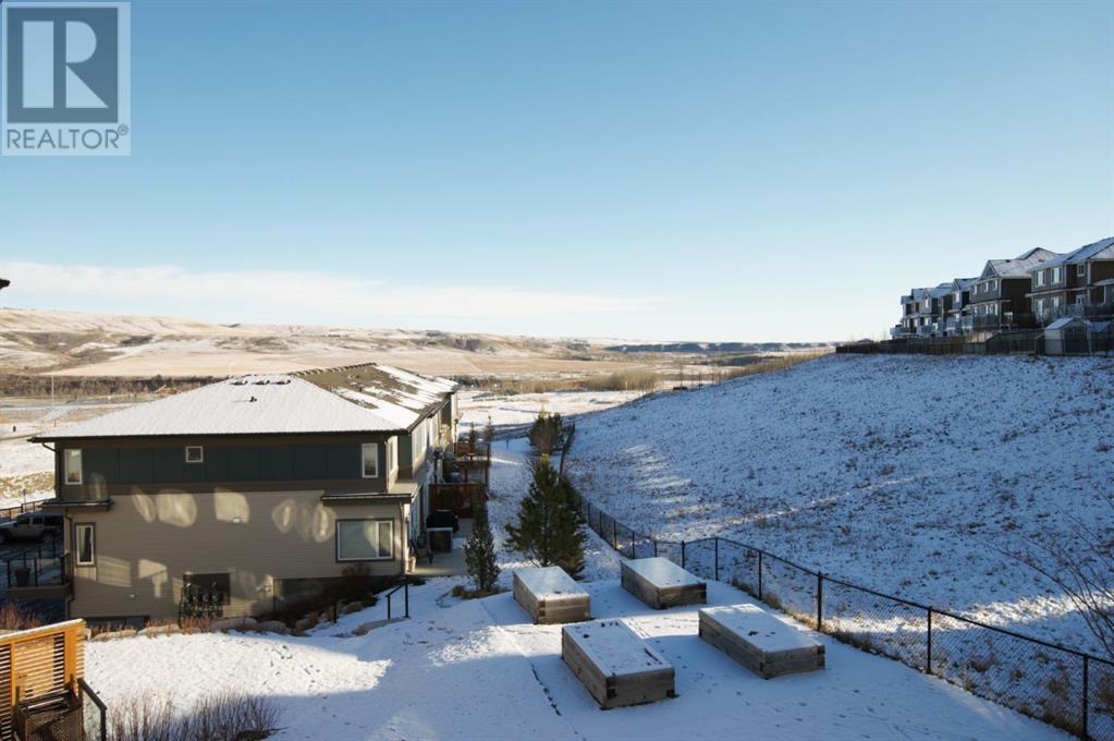 This light and airy townhouse features big windows that flood the home with natural light all day long, and give stunning views out over the Bow River and Glenbow Ranch Provincial Park. It is surrounded by paved walking paths through green space and natural reserves, and Bow Valley High School is a few minutes walk away. On the open concept main level you will find a living room with a west facing balcony for evening sun; kitchen featuring upgraded stainless steel appliances including a gas range; a powder room, and dining area with a door leading out onto a private patio. From here you can step out into the landscaped and professionally maintained grounds featuring a fire-pit and garden boxes, along with lawns, trees and shrubs. Yard maintenance including lawn-mowing and snow removal are included. Upstairs features two master bedrooms, each with their own full en-suite bathroom and walk-in or walk-through closets. Each room is spacious enough for a queen or king sized bedroom set to fit comfortably. The upstairs laundry hosts a washer, dryer, and ample storage. Further storage is provided with a linen closet opposite the laundry, a coat closet on the main floor, and under the stairs in the garage. Park two vehicles in the heated attached garage and still have space for a workshop and to store sports equipment. Quiet respectful neighbours all around. The house is set back from River Heights Drive on a quiet private road, and backs onto designated green space. Five minute drive into downtown Cochrane and to Spray Lakes Sports centre, and quick access to HWY22/HWY1 for a 25 minute drive to Calgary or 35 minutes to Kananaskis. The daily commuter bus to downtown Calgary stops a few minutes walk away. (id:22211)