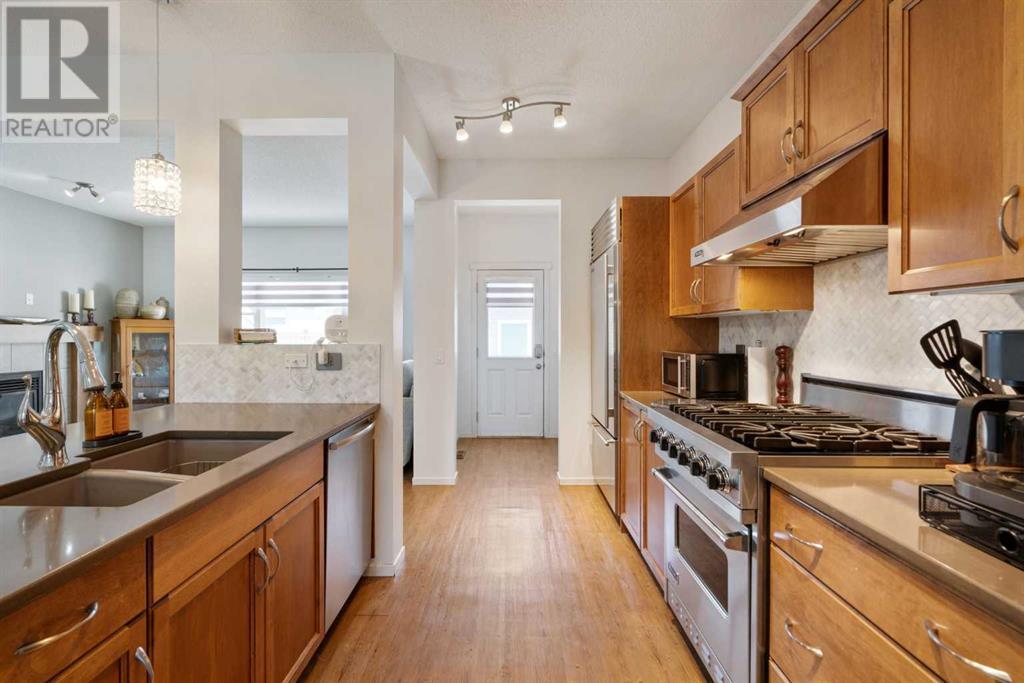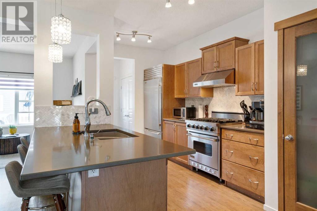 Welcome to 54 River Heights Green! This fantastic 3 bed, 3.5 bath 2 storey home in the heart of River Song has everything you need. Walking up to the front door, you will be greeted by a charming front porch straight out of your dreams. Running the full width of the house with a big tree in front, you will have the perfect place for your cozy morning coffee. Once inside, you will have ample room to navigate your groceries, gym bag, strollers, hiking gear, or whatever else you need with a large entry and walk-in front closet. Sharing the front of the home is a den with a big window sharing the view of the front porch. In the kitchen, you will find upgrades everywhere you look. The beautiful quartz countertops cover a large island with an under-mount sink and room for seating. The high-end, stainless steel Viking gas stove and Sub Zero fridge make this kitchen a chef's dream! The open living room and dining room are spacious enough to create two distinct spaces while still being able to enjoy the company around you. On the second floor, you will find the large primary bedroom with a 4pc bath and walk-in closet. Also on the second floor are two additional bedrooms, another 4pc bath, and a fantastic laundry room. The full, professionally finished basement has a second den, a lovely 3pc bath, and a large rec room. It is the perfect space for a movie night, a home gym, and features a built-in Murphy bed unit for your out-of-town guests, or to simply crash after a long Netflix binge. Don't forget to check out the large back deck as you make your way to the oversized, detached double garage! This property won't last long, so call your favourite agent today! (id:22211)