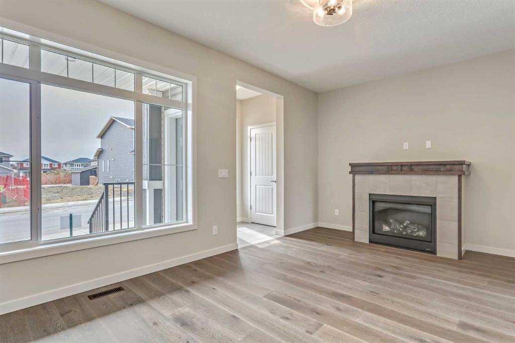 Perfect starter home or for downsizing with 3-bedroom, 2.5 bath, semi-detached duplex features 1,402 sqft of well designed living space with exceptional finishes and at this time all finishes are open for selection by homeowner - located in the family friendly community of Fireside. North facing rear yard, close to parks, play fields, schools & community pathways. Main floor features a living room, half bath, kitchen with a large island and adjoining eating nook. Off the kitchen is a spacious rear mud room giving access to a private deck overlooking north facing rear-yard. Rear yard has more than enough space to build a garage and still have ample yard area between the garage and house. Upper level features a primary retreat with walk-in closet, 3-pce ensuite with walk-in shower, roomy second floor laundry with venting window, 2 more bedrooms & an additional 4-pce main bath. Beautiful finishing’s include – Gas Fireplace w/mantle and roughed in outlet for future fan, lacquered railings & metal spindles, luxury vinyl plank flooring throughout the main level, tile in laundry & upper baths. Full height kitchen cabinets with soft close doors/drawers & full extension drawer glides, quartz counters with 8" deep stainless steel undermount sink, upper baths with quartz covered vanity tops & undermount sinks. Closets and pantry have built on site solid shelving - NO Wire Shelving!!! LoE Argon slider windows, R-50 attic insulation, high efficient furnace w/programmable thermostat & drip humidifier, 75 gal hot water tank, R/I plumbing in basement. Family-owned Janssen Homes has been building award-winning homes for over 58-years and continually delivers finely crafted designs. ****Note - photos from similar home**** Possession - Fall of 2023. Warranty - Alberta New Home Warranty includes 1 yr comprehensive, 2 yrs heating, electric, plumbing, 5 yrs building envelope, 10 yrs structural. (id:22211)