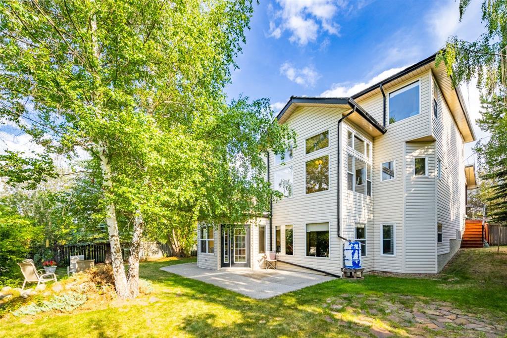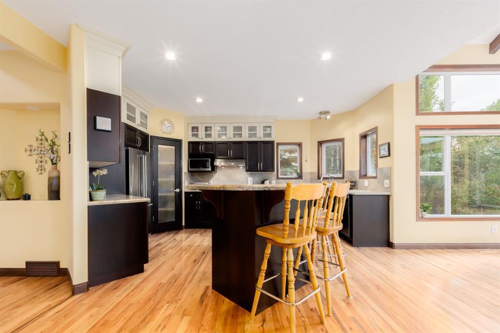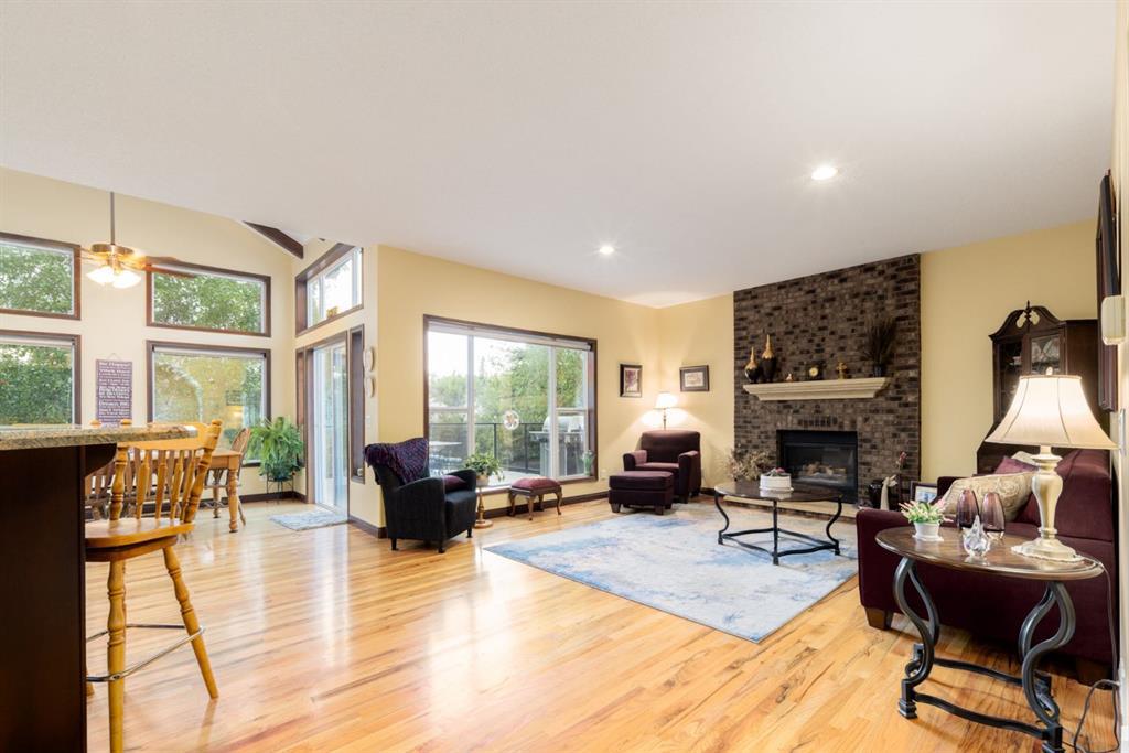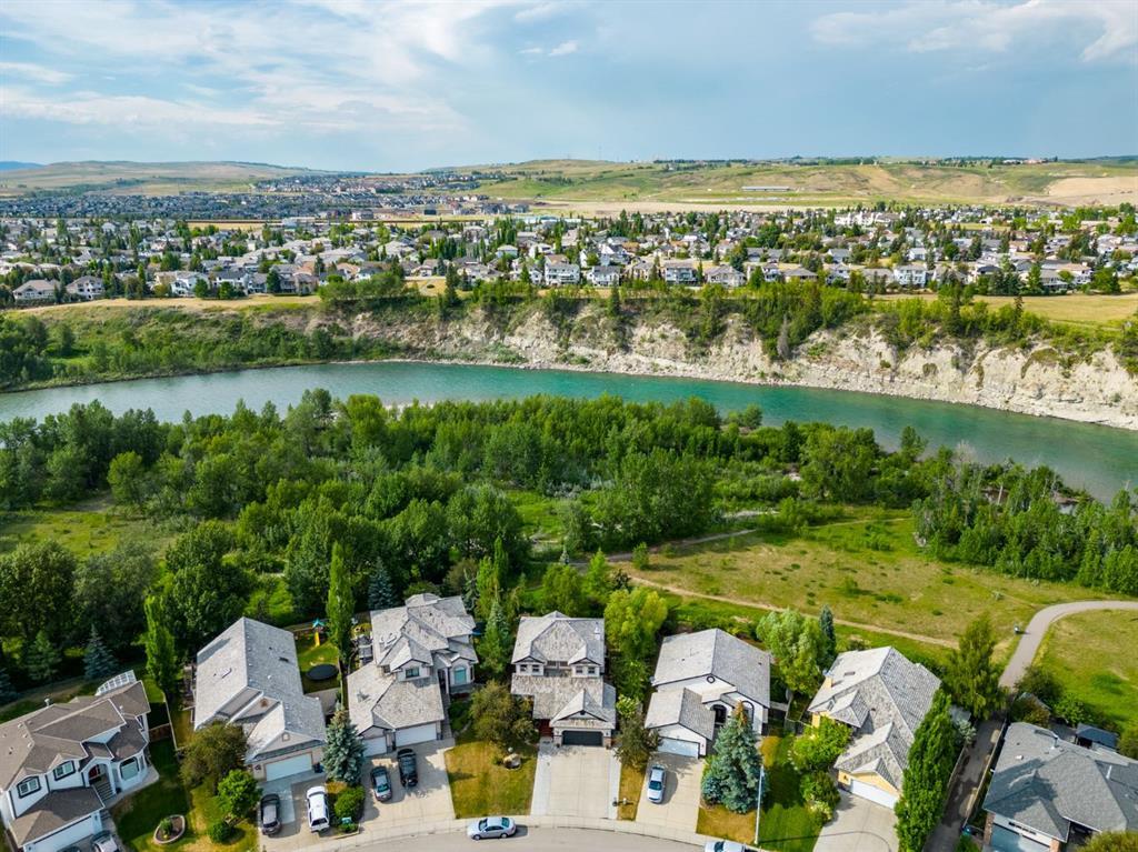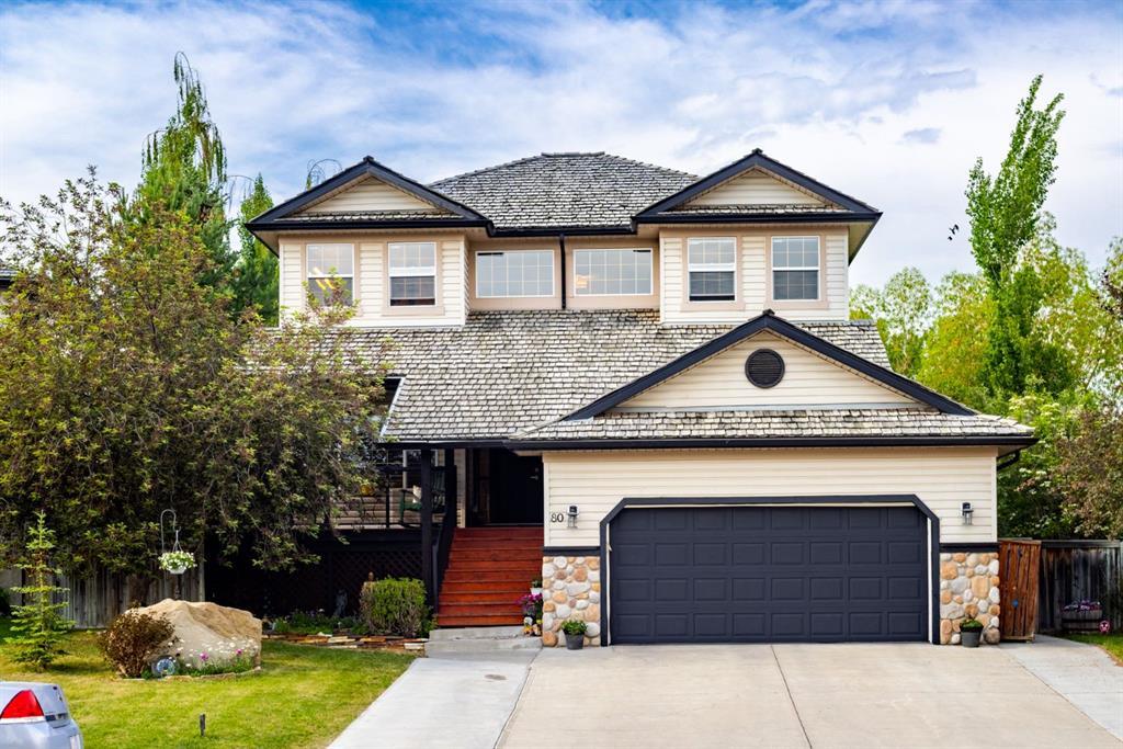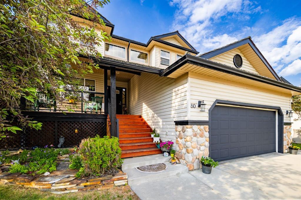 **OPEN HOUSE SATURDAY, JUNE 17 - 11 am - 2 pm** LOCATION, LOCATION, LOCATION! Huge PIE LOT backing onto the BOW RIVER & ENVIRONMENTAL RESERVE, 80 Bow Meadows Drive invites you to experience the privacy and serenity of all nature has to offer, right in your own back yard. Enjoy a multitude of wildlife that frequents the area, or stroll along the walking path adjacent to Jumping Pound Creek & the Bow River. Miles of nature's beauty await you! This lovingly cared for home won't disappoint either - step inside and you are welcomed by an open plan with cathedral ceiling, rich hardwood, and a warmth that says "HOME'. A large entry provides access to the main floor den, and leads to the open great room area, where a plethora of large windows bring in the natural light and enveloping nature views. The updated two tone island kitchen offers hi-end SS appliances, granite counters and backsplash, a handy pantry, and eat-up bar. A large eating nook with vaulted, beamed ceilings can accommodate a family sized table, and provides access to the outdoor deck. An inviting family room with floor-to-ceiling brick faced fireplace is the perfect place to unwind or entertain guests. Main floor laundry w/sink and a 2 pce bath are on this level as well. Upstairs, you will find a HUGE PRIMARY BEDRM with walk-in closet and 5 pce ensuite that features a corner jetted soaker tub, stand up shower and dbl sinks. 2 additional good sized bedrooms (each with their own walk-in closets) and a full 4 pce jack 'n' jill bath round out the upper level. The 3rd WALKOUT level is fully finished, and boasts a large rec rm with 2nd fireplace that offers two distinct areas, perfect for watching movies and hanging out, and a games area. Two large bedrooms (one is closet-free), a full 3 pce bath and storage area complete this level. A few extras that make life more comfortable include: Rinnai on-demand hot water, water softener, in-floor heat in basement, and a large rear deck/patio. Newer interior doors, carpe t and fixtures as well. A completely fenced private yard, dbl attached garage with extra storage, triple wide driveway, relaxing front porch and GRAND curb appeal make this the complete package. Bow Meadows is one of the most sought after neighbourhoods in town - mature and quiet, larger lots, parks and playgrounds, with no multi-family homes, yet close to all amenities. Don't delay - come and view your FOREVER home today! (id:22211)