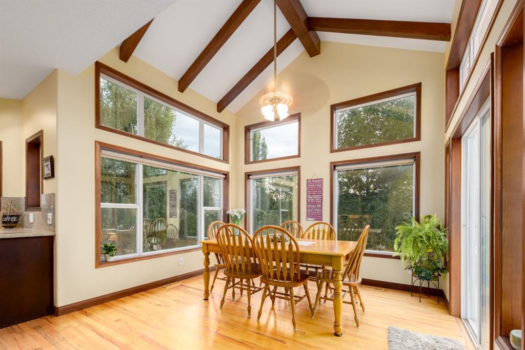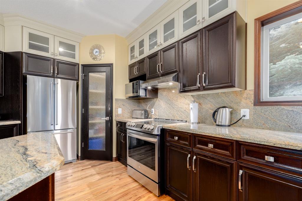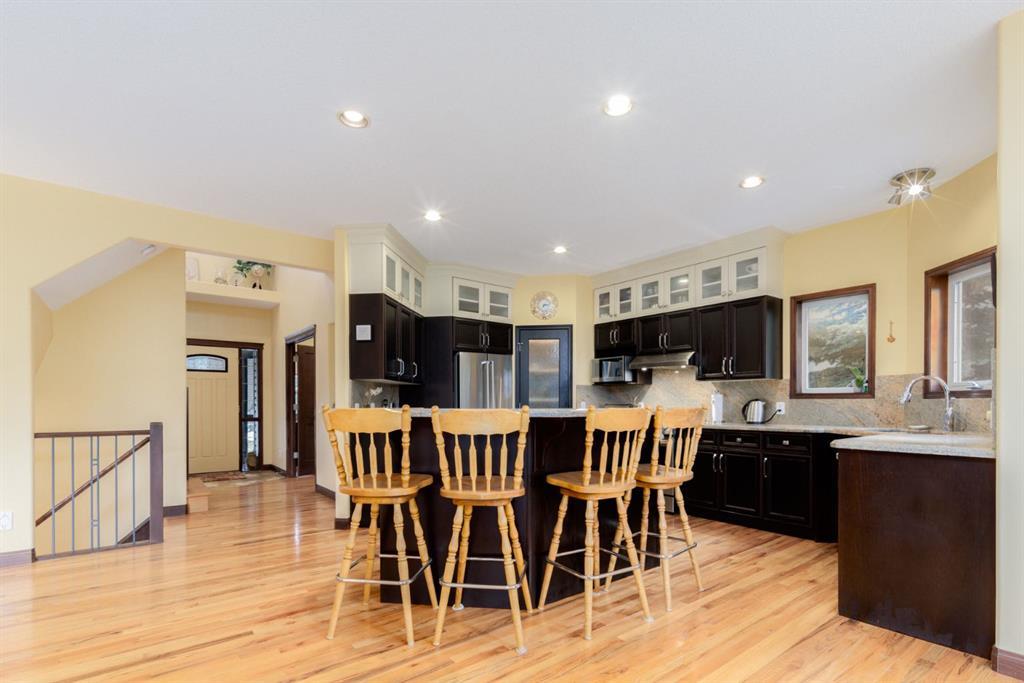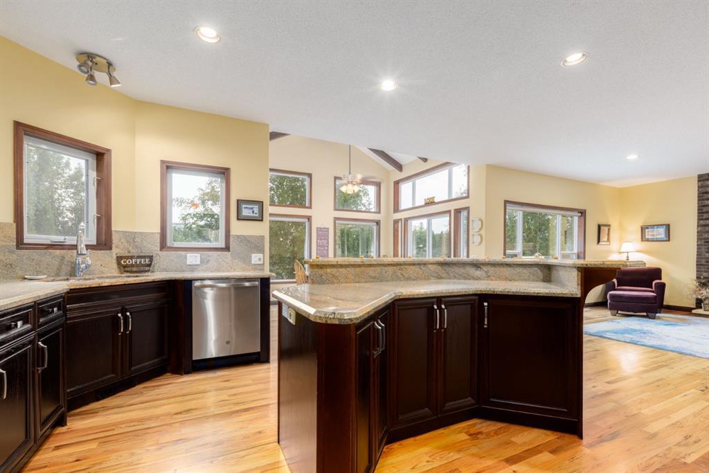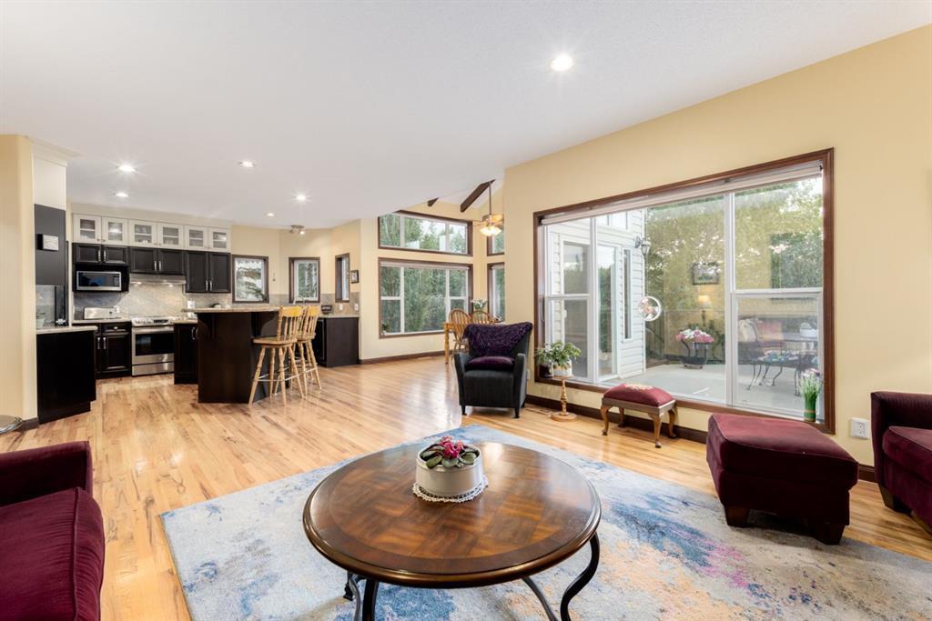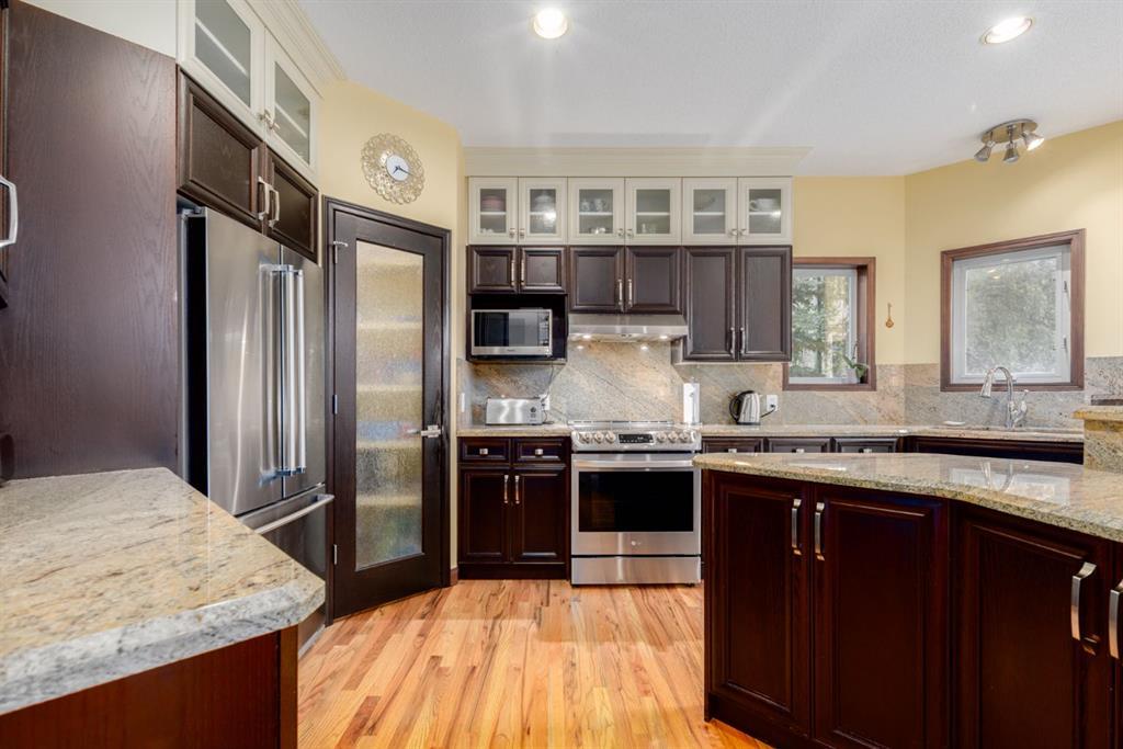 **OPEN HOUSE SATURDAY, JUNE 17 - 11 am - 2 pm** LOCATION, LOCATION, LOCATION! Huge PIE LOT backing onto the BOW RIVER & ENVIRONMENTAL RESERVE, 80 Bow Meadows Drive invites you to experience the privacy and serenity of all nature has to offer, right in your own back yard. Enjoy a multitude of wildlife that frequents the area, or stroll along the walking path adjacent to Jumping Pound Creek & the Bow River. Miles of nature's beauty await you! This lovingly cared for home won't disappoint either - step inside and you are welcomed by an open plan with cathedral ceiling, rich hardwood, and a warmth that says "HOME'. A large entry provides access to the main floor den, and leads to the open great room area, where a plethora of large windows bring in the natural light and enveloping nature views. The updated two tone island kitchen offers hi-end SS appliances, granite counters and backsplash, a handy pantry, and eat-up bar. A large eating nook with vaulted, beamed ceilings can accommodate a family sized table, and provides access to the outdoor deck. An inviting family room with floor-to-ceiling brick faced fireplace is the perfect place to unwind or entertain guests. Main floor laundry w/sink and a 2 pce bath are on this level as well. Upstairs, you will find a HUGE PRIMARY BEDRM with walk-in closet and 5 pce ensuite that features a corner jetted soaker tub, stand up shower and dbl sinks. 2 additional good sized bedrooms (each with their own walk-in closets) and a full 4 pce jack 'n' jill bath round out the upper level. The 3rd WALKOUT level is fully finished, and boasts a large rec rm with 2nd fireplace that offers two distinct areas, perfect for watching movies and hanging out, and a games area. Two large bedrooms (one is closet-free), a full 3 pce bath and storage area complete this level. A few extras that make life more comfortable include: Rinnai on-demand hot water, water softener, in-floor heat in basement, and a large rear deck/patio. Newer interior doors, carpe t and fixtures as well. A completely fenced private yard, dbl attached garage with extra storage, triple wide driveway, relaxing front porch and GRAND curb appeal make this the complete package. Bow Meadows is one of the most sought after neighbourhoods in town - mature and quiet, larger lots, parks and playgrounds, with no multi-family homes, yet close to all amenities. Don't delay - come and view your FOREVER home today! (id:22211)