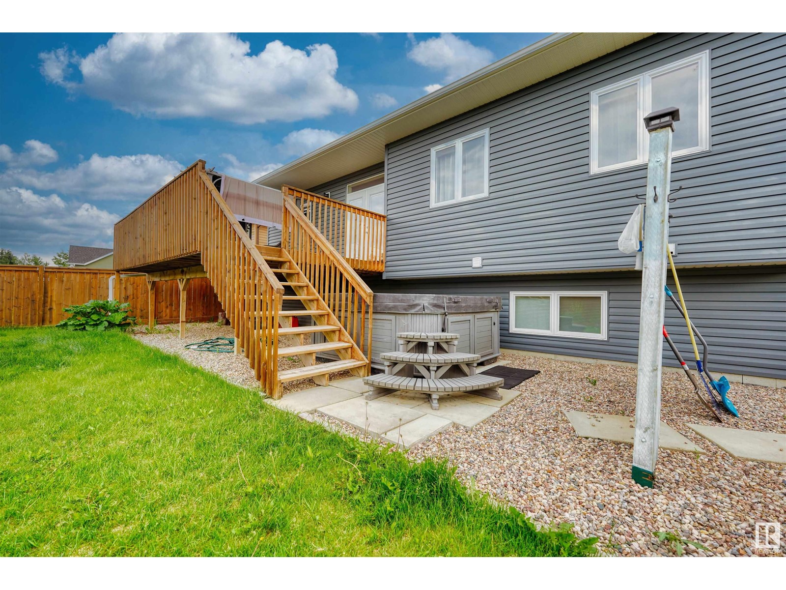 This is a Bayrock Home with careful attention to detail. It is in the desirable Aspen Ridge Estates in Cold Lake North, in a quiet traffic area. This home is totally finished & comes with 3 bedrooms upstairs, a full bath, a full bath ensuite, & a huge walk-in closet & a secondary closet in the master bedroom. All the windows are large & spacious, allowing for plenty of natural light. This home has an open concept kitchen, dinning, living room area, with a gas insert fireplace in the living room. The windows have wood shutters as well as vinyl windows with wind-out openings for air flow. The countertops are all quartz. The patio doors are insert blinds [no cleaning required!], & the patio doors lead onto the 14'x21' spacious deck with a line for a gas BBQ. The Hot Tub valued at over $10,000 comes with the home. There is a 6' privacy fence in the back. There is a 4th bedroom downstairs with another full bath, in-floor heat, & room for a 5th bedroom. The 22'x24' garage is heated. Cold Lake Real Estate. (id:22211)